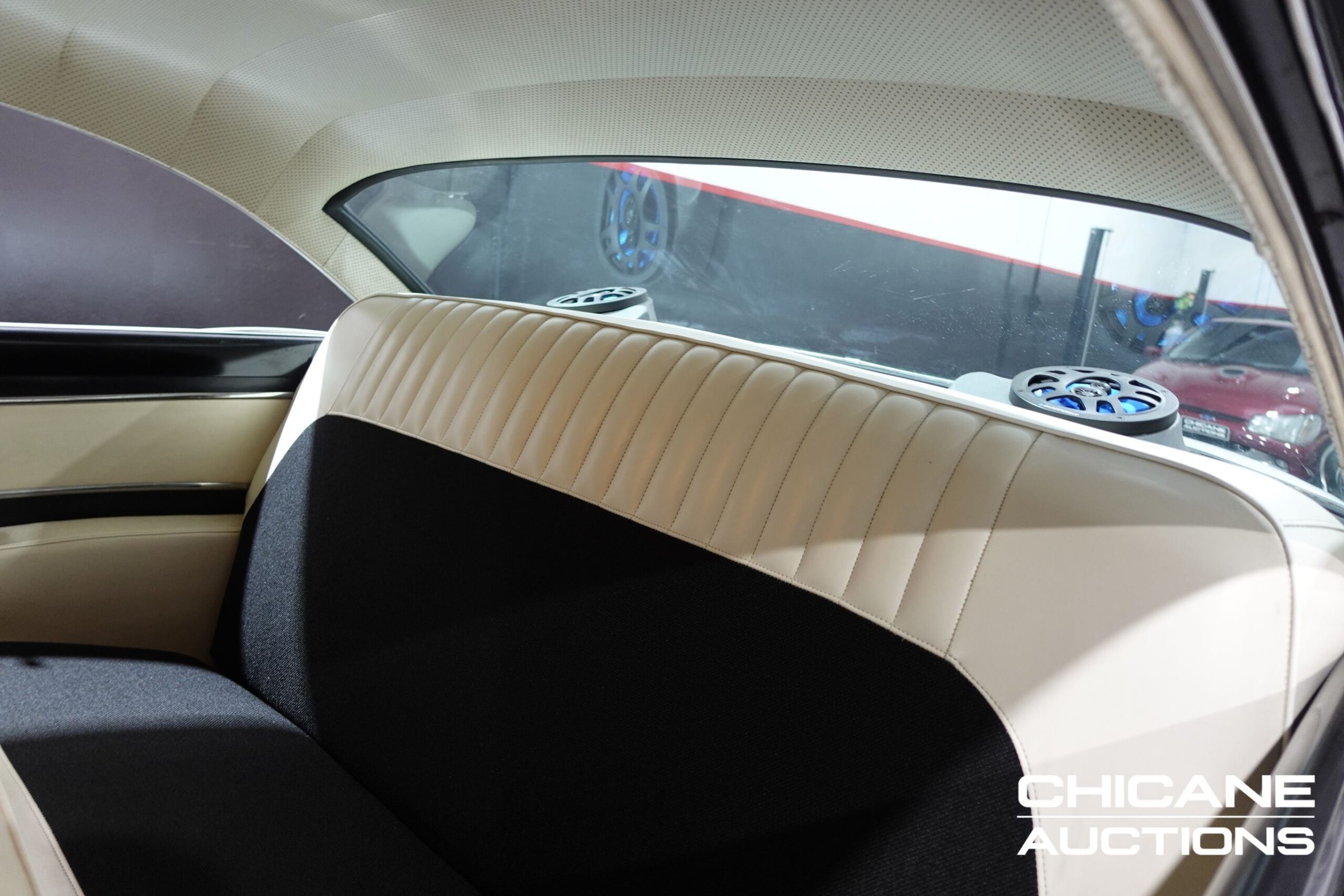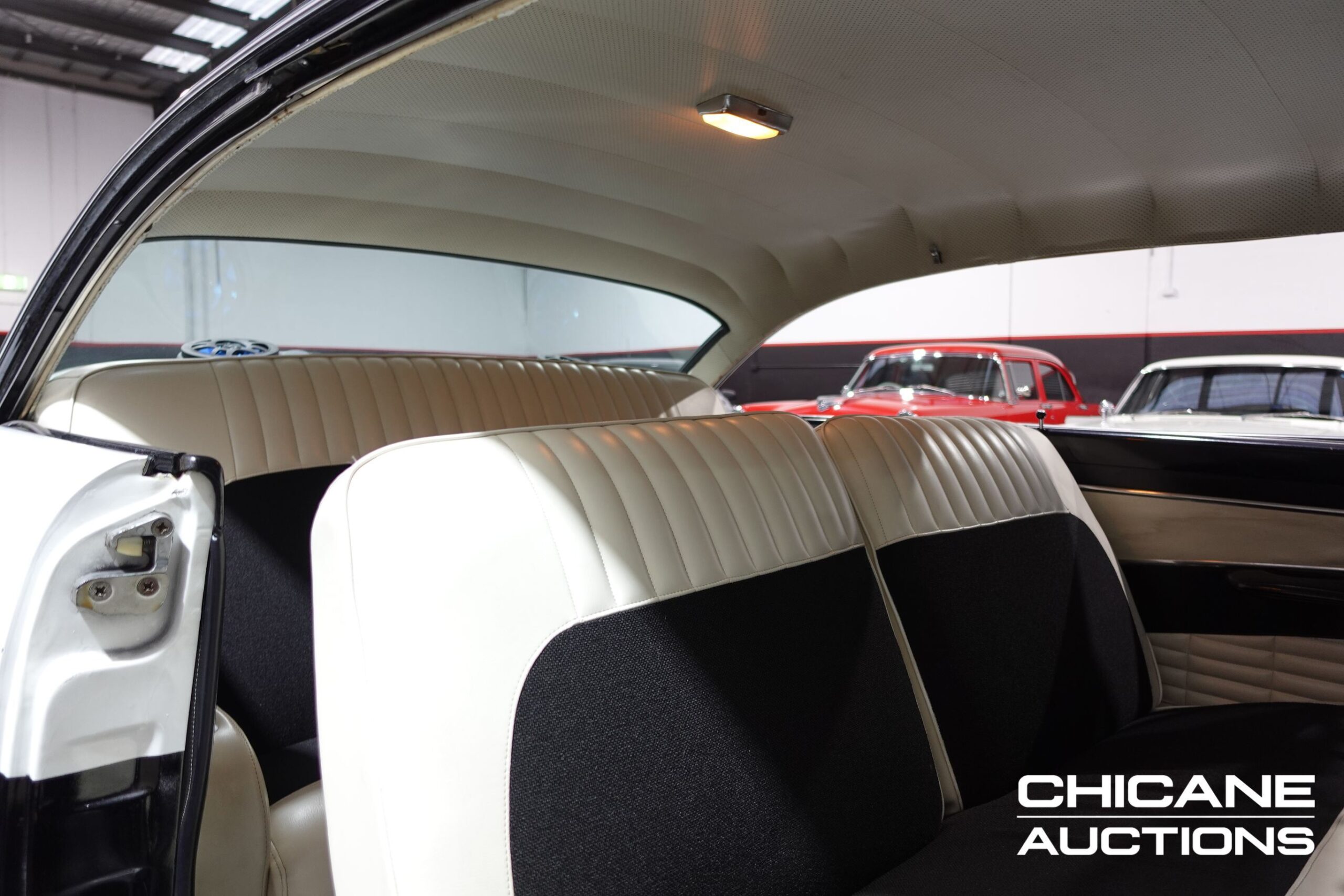 Finished in its correct factory combination of Raven Black with Colonial White, this Fairlane Victoria Coupe remains striking and authentic. The paintwork retains excellent depth and gloss with various imperfections and minor corrosion under closer inspection. The body presents with straight body panels and clean shut lines throughout. The chrome bumpers, grille, and stainless trim are bright and well-maintained, showing only minor age-appropriate patina on some trim parts.
