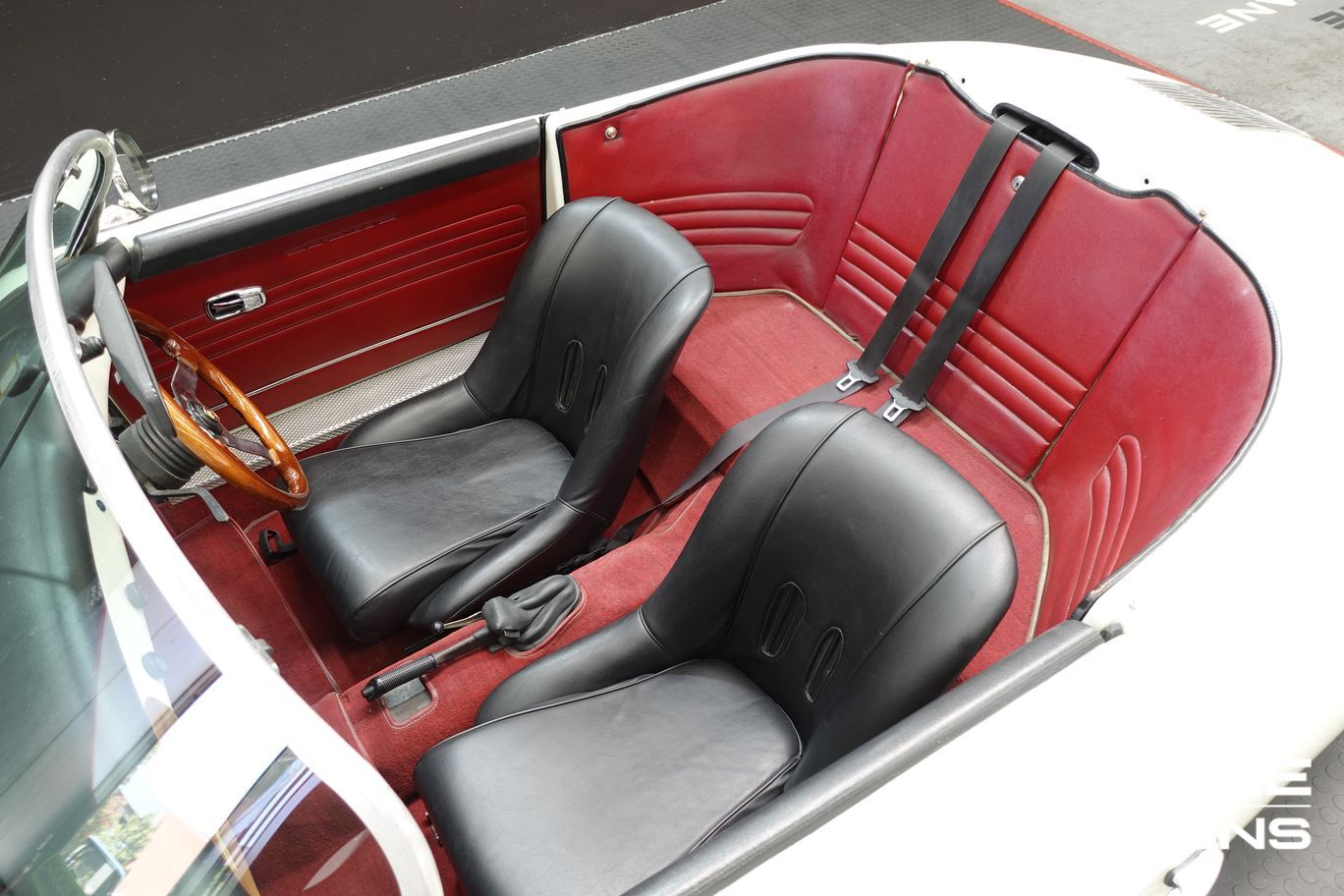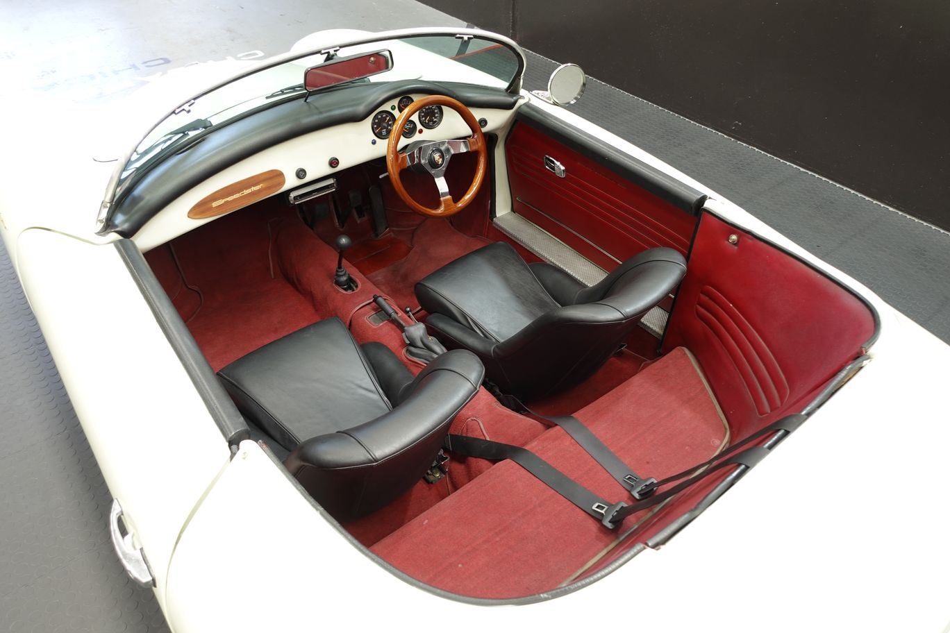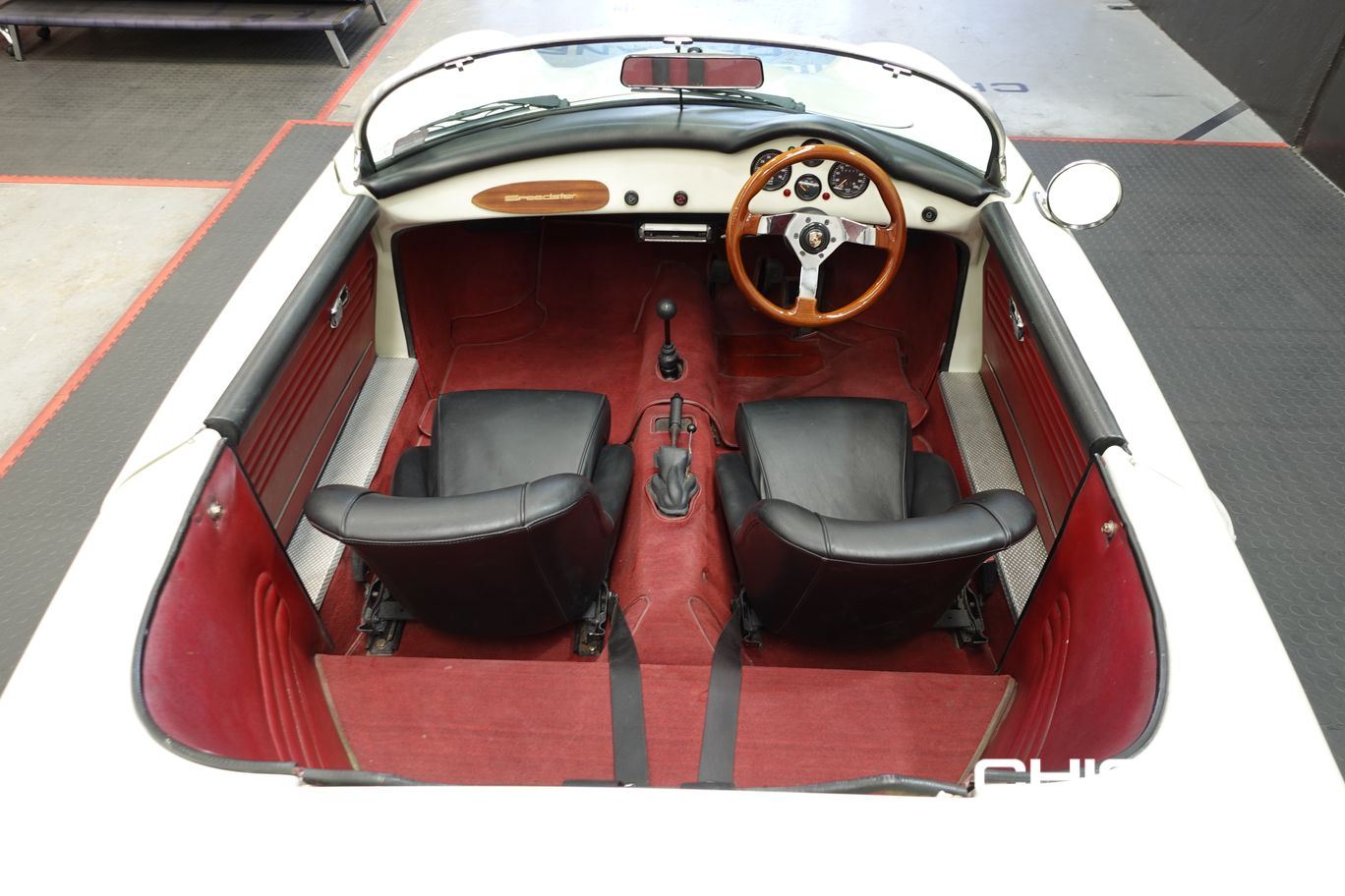 Inside, the car retains the purposeful simplicity of the original Porsche Speedster with original Speedster-style bucket seats, matching ‘Speedster’ inscribed door cards, and tailored carpets that deliver a clean and authentic cabin feel. The low dash line, minimal switchgear and open cockpit layout create a pure 1950s sports-car ambience. The seating position, steering wheel placement and visibility replicate the classic Speedster ergonomics that enthusiasts love. Everything inside feels tidy, and no more than functional apart from a modern stereo, providing an inviting cockpit for weekend drives and club events alike.