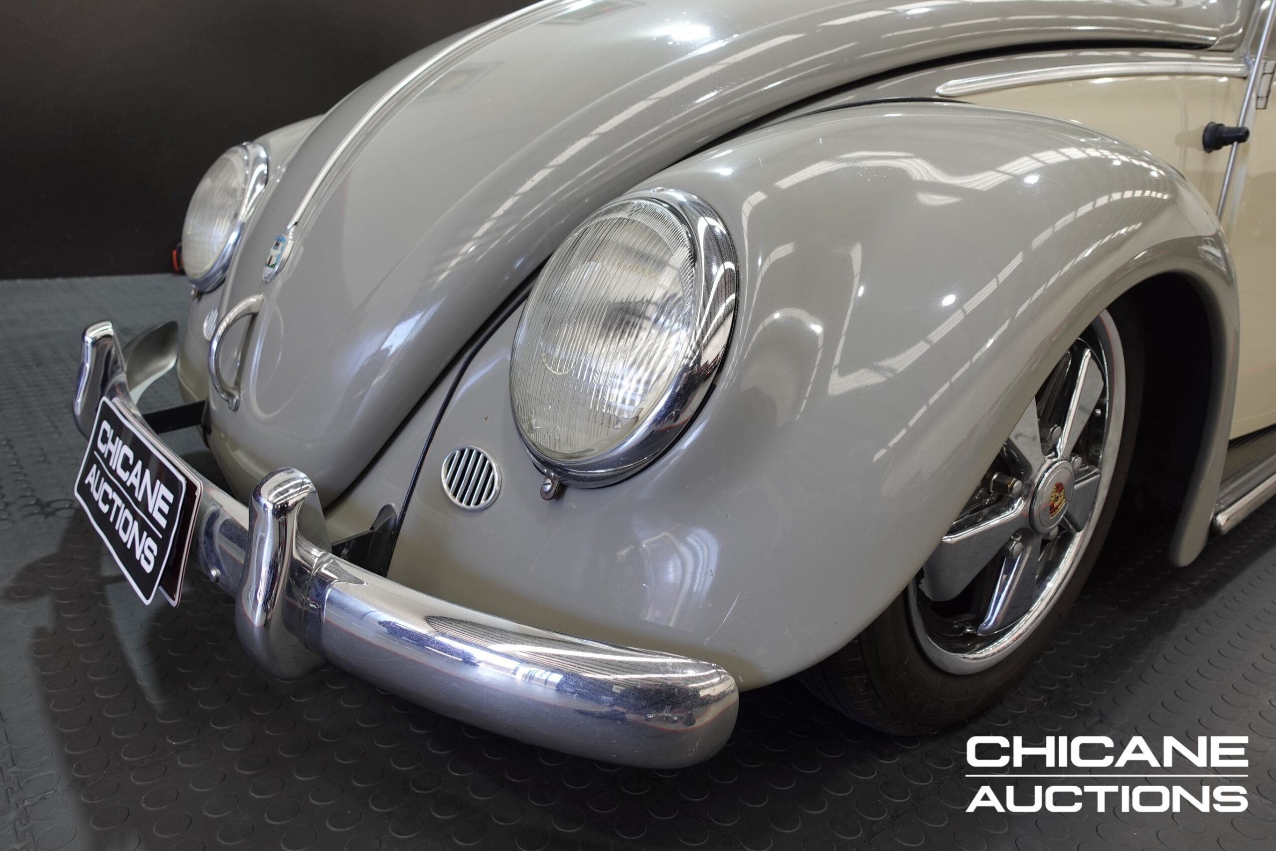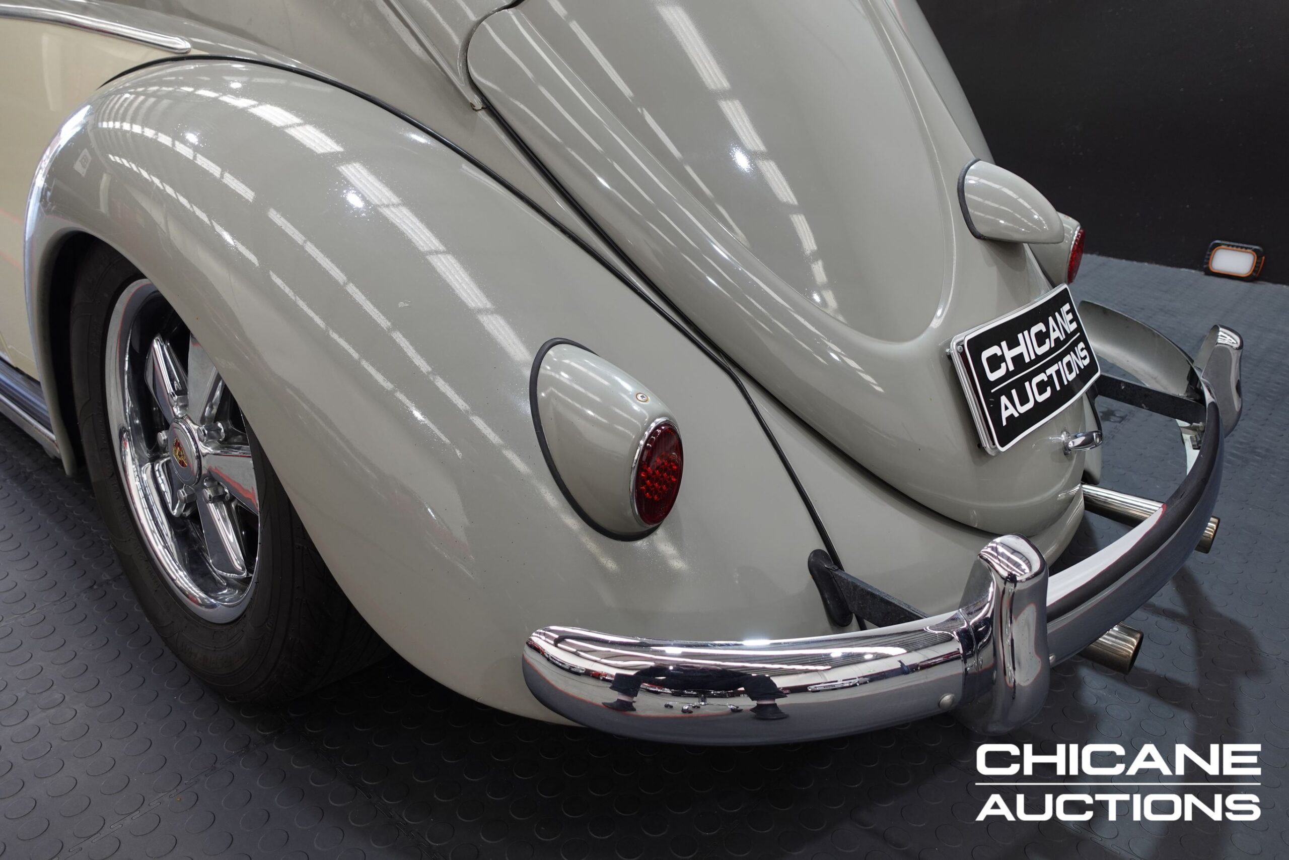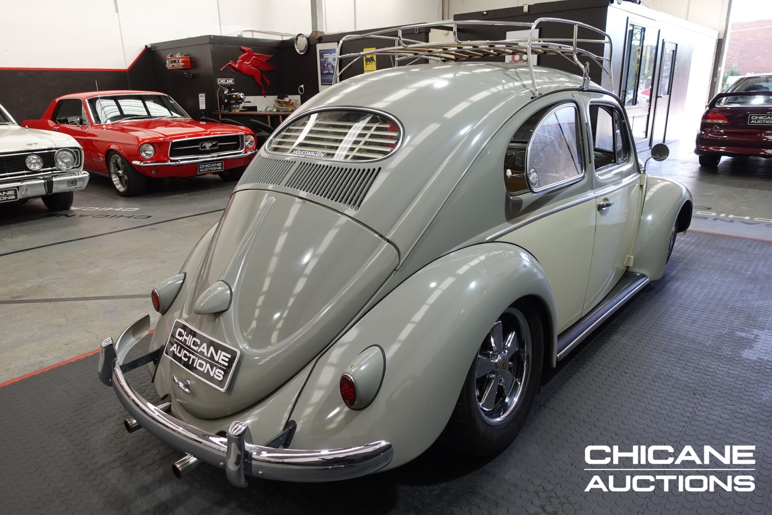 This Australian-delivered 1956 Beetle is presented in a nice two-tone combination of Beige Grey over Savannah Beige, with a lightly aged patina that reflects its classic appeal. While visually styled with various enhancements, the car has also undergone mechanical updates to ensure it performs reliably in modern traffic, including a more powerful twin-port engine, 12-volt electrics, and upgraded braking.