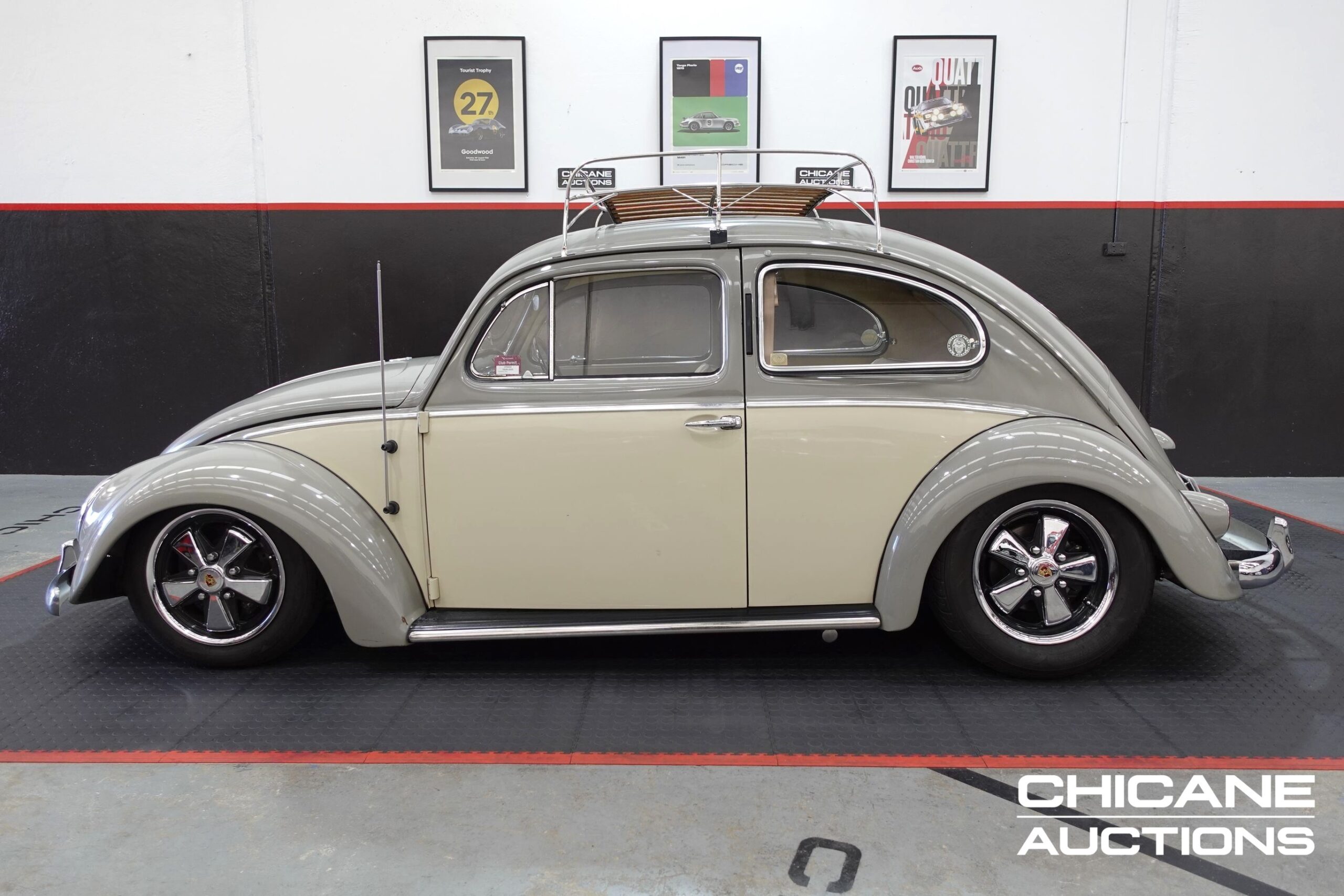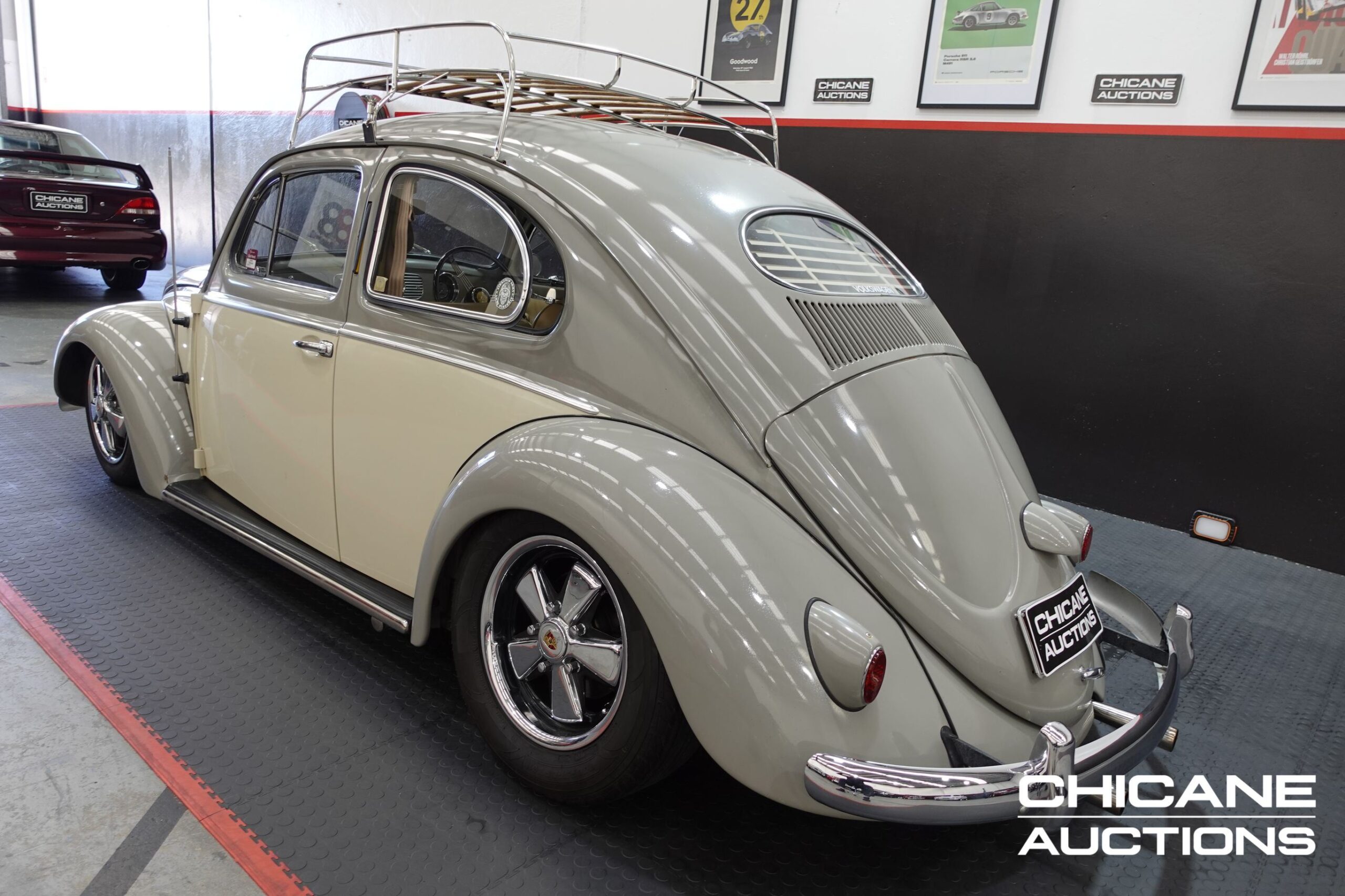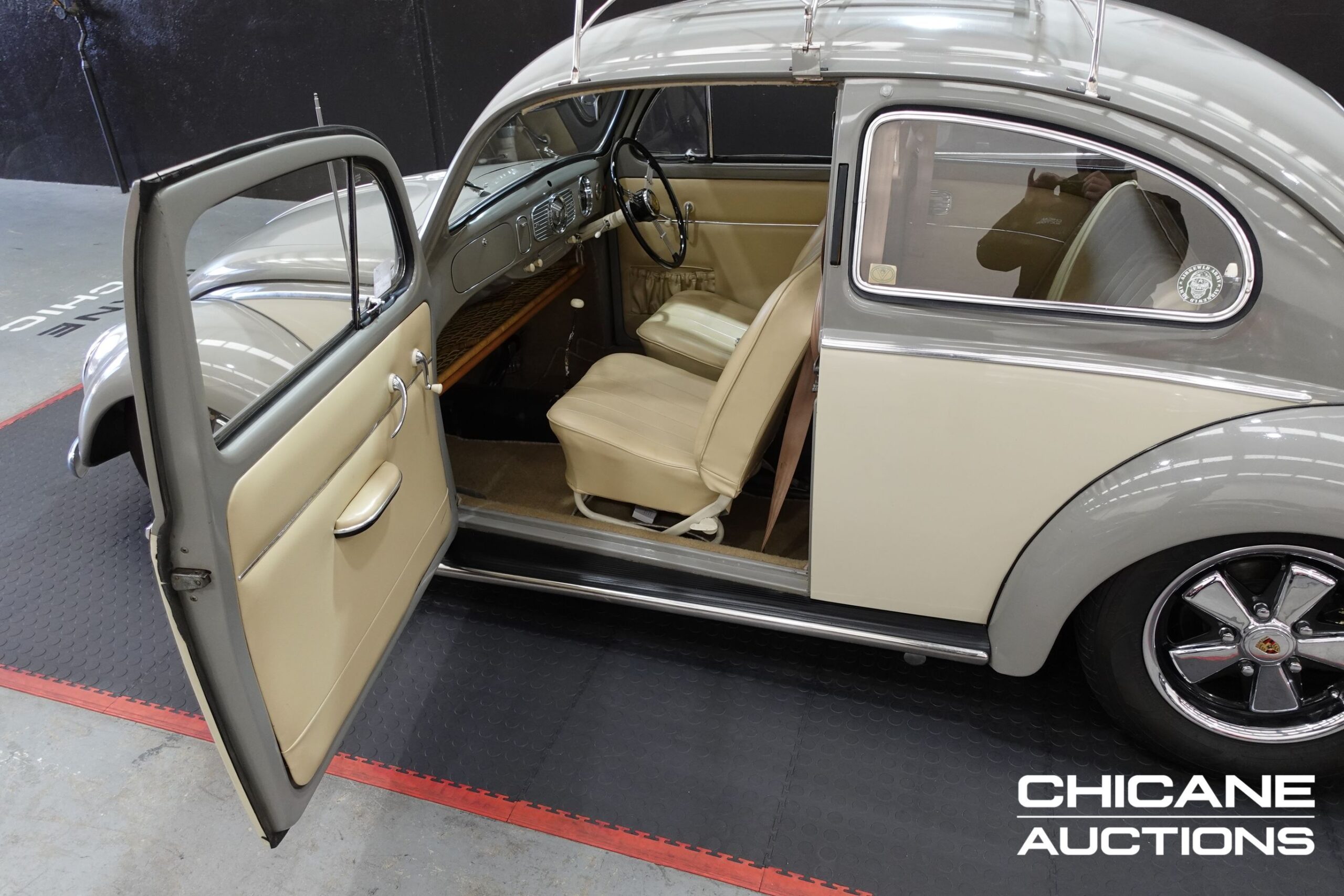 This Australian-delivered 1956 Beetle is presented in a nice two-tone combination of Beige Grey over Savannah Beige, with a lightly aged patina that reflects its classic appeal. While visually styled with various enhancements, the car has also undergone mechanical updates to ensure it performs reliably in modern traffic, including a more powerful twin-port engine, 12-volt electrics, and upgraded braking.