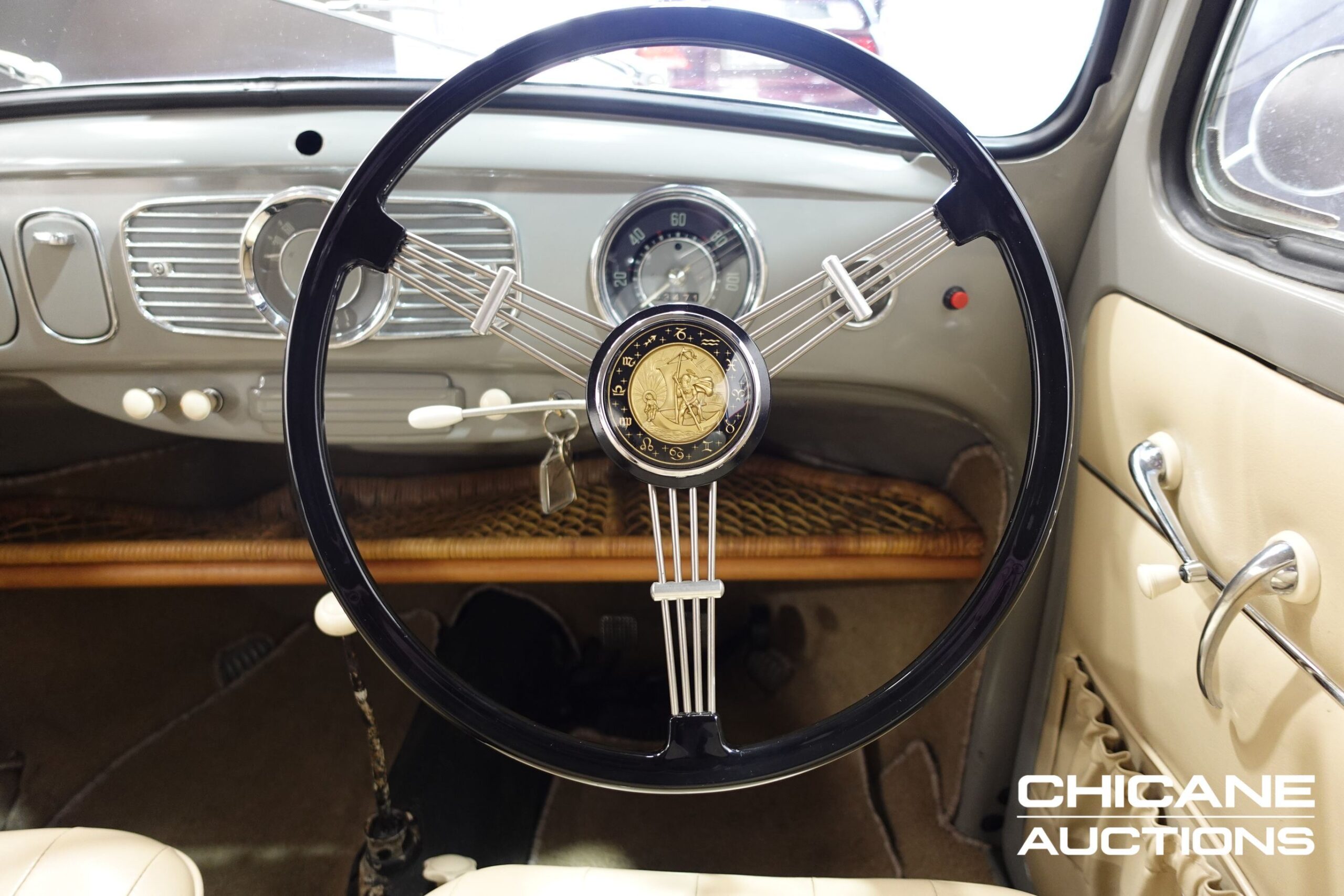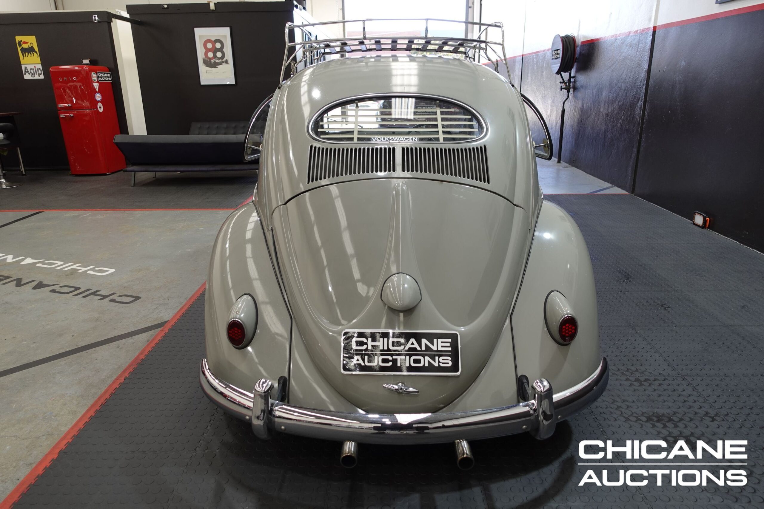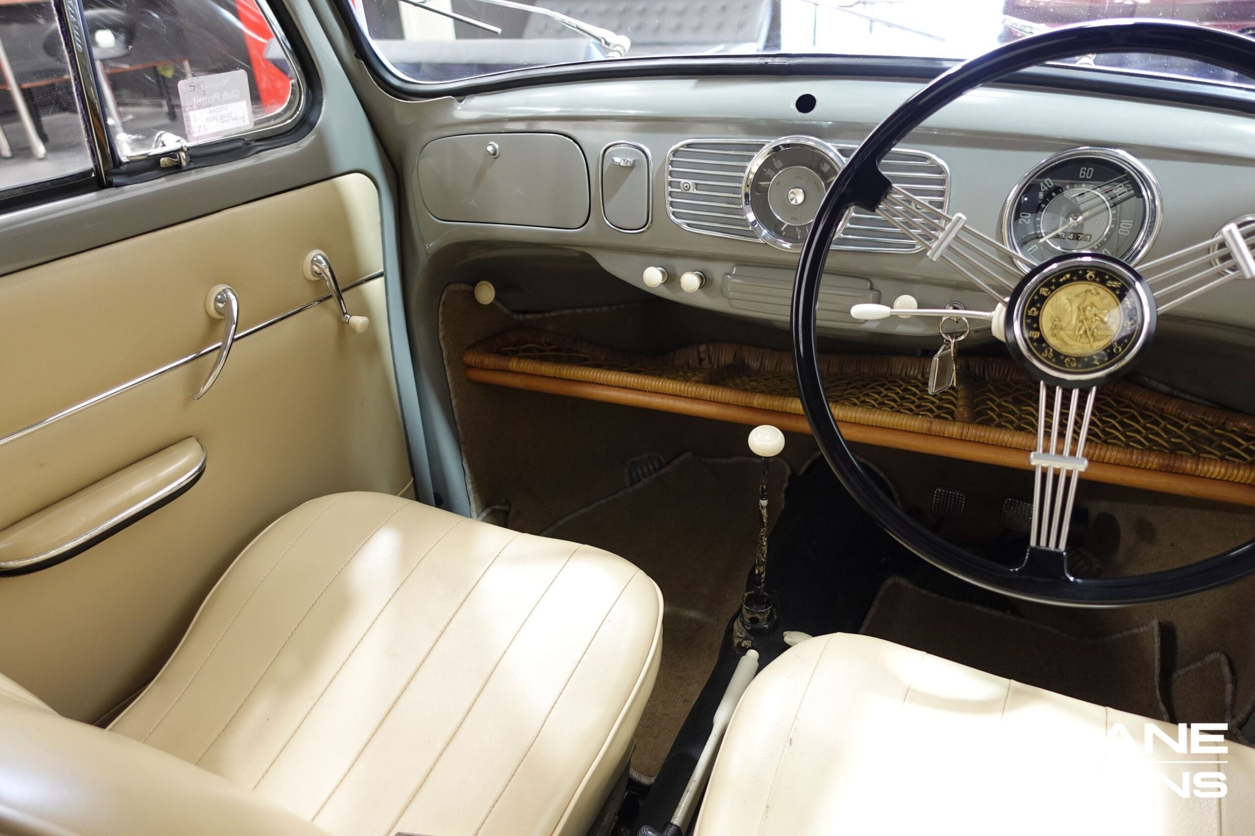 The 1956 Volkswagen Beetle is a cherished model year that retains the iconic oval rear window, a feature unique to Beetles built between 1953 and 1957. This model is also distinguished by its pop-out semaphore indicators—thin, illuminated mechanical arms that extend from the B-pillars when turning. Featuring a charmingly simple interior with ivory bakelite knobs, a two-spoke steering wheel, and minimal instrumentation. The 1956 Beetle combined mechanical simplicity with durable engineering and period styling that has since become deeply emblematic of the Volkswagen brand.