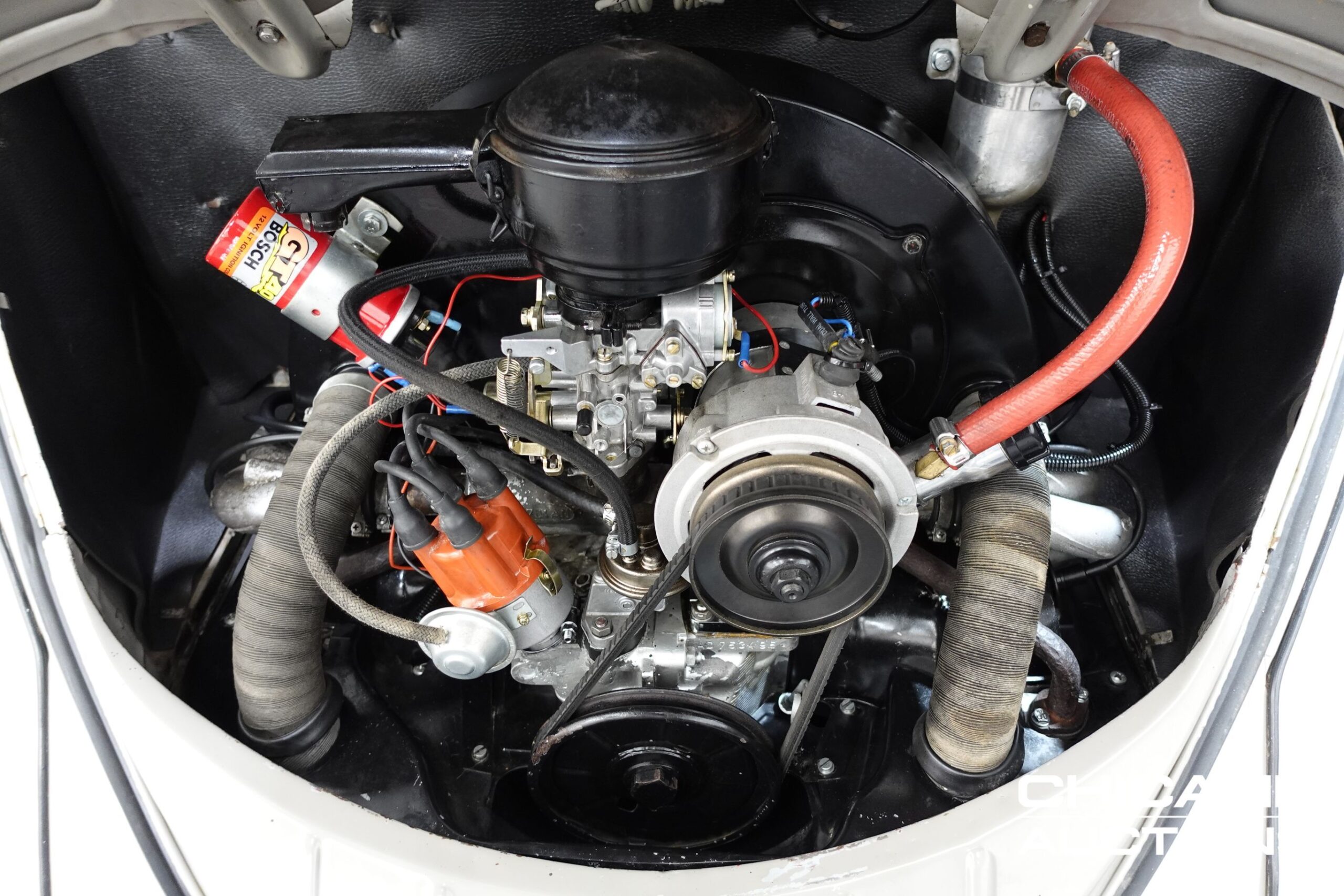 The car sits on its original numbered 1956 Chassis and is powered by a strong 1600cc AD-code twin-port engine, a common and well-regarded upgrade over the original 1200cc powerplant. The engine has just had a full service, including the installation of a new carburettor, and it runs cleanly with excellent throttle response. A 12-volt alternator conversion has been fitted, bringing improved electrical and starting reliability, and the car features an entirely new engine wiring harness, professionally installed for modern safety.