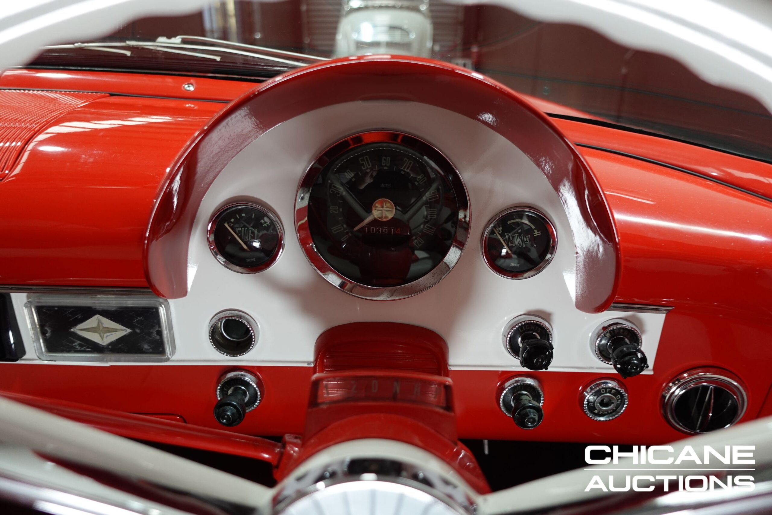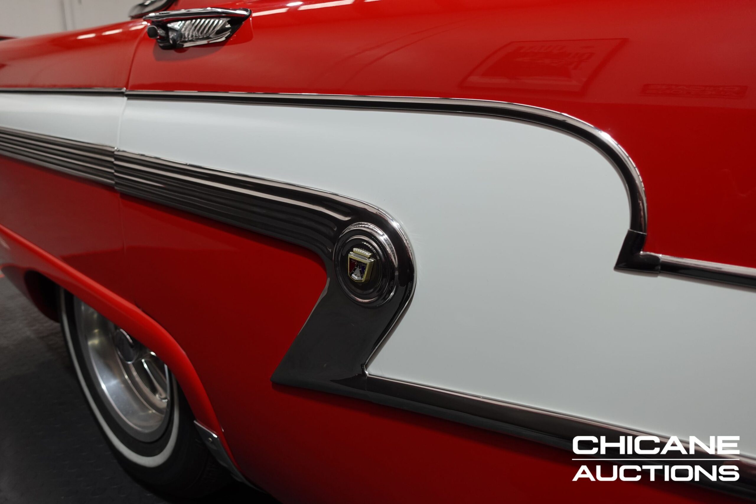 Finished in Monte Carlo Red over Snow White and presenting in solid show-level condition, it boasts a fully refurbished red and white vinyl interior, renewed chrome and trims.