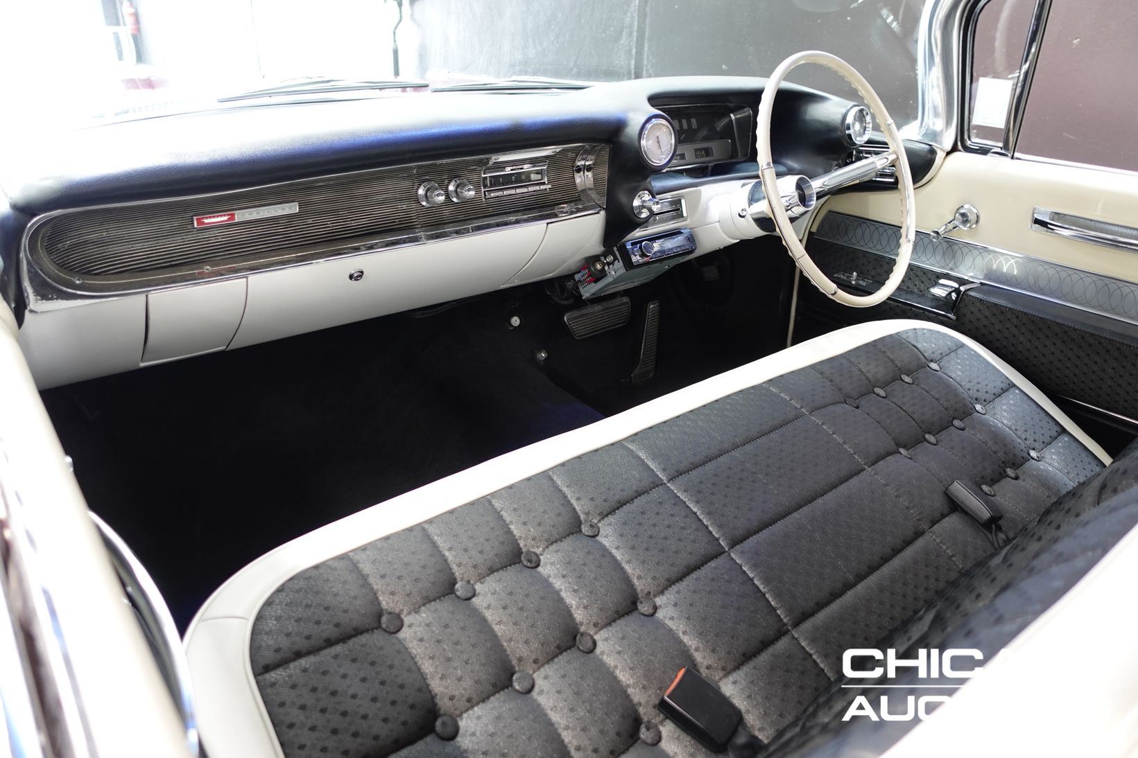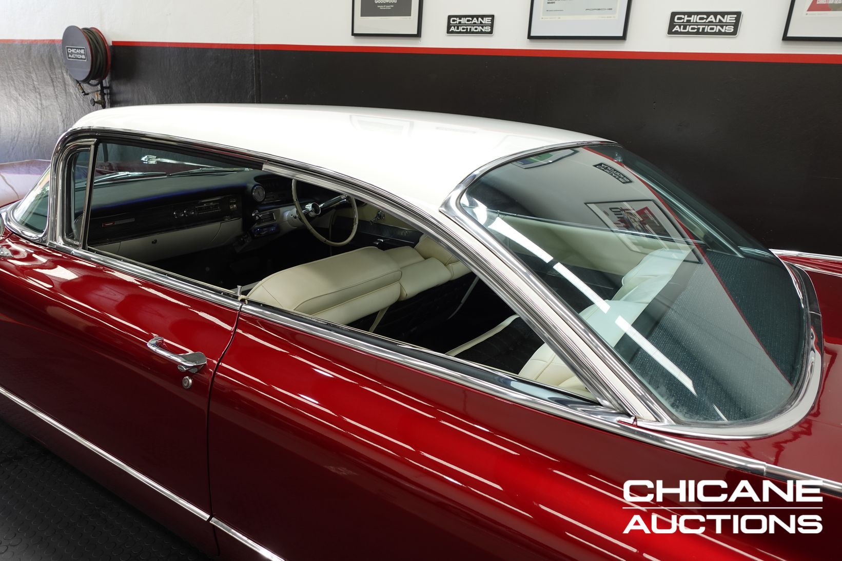 The 1960 Cadillac Coupe De Ville is a definitive icon of America’s Jet Age of design, representing the peak of late-1950s optimism, excess and aerospace-inspired styling. Its dramatic rear tailfins, tail lamps, wraparound windscreen and sweeping chrome detailing were directly influenced by jet aircraft and the emerging space race. Beneath the bold styling sits Cadillac’s smooth 6.4-litre V8 paired with a 4 speed automatic transmission, delivering effortless performance and a refined ride. Inside, the Coupe De Ville offers beautifully styled seating and richly appointed trim, reinforcing its status as one of the most recognizable and celebrated luxury coupes of the Big Fin era.