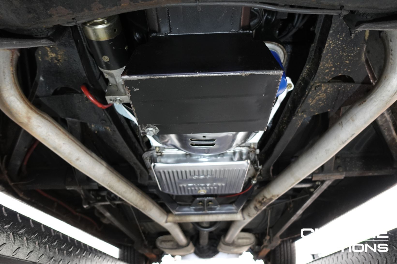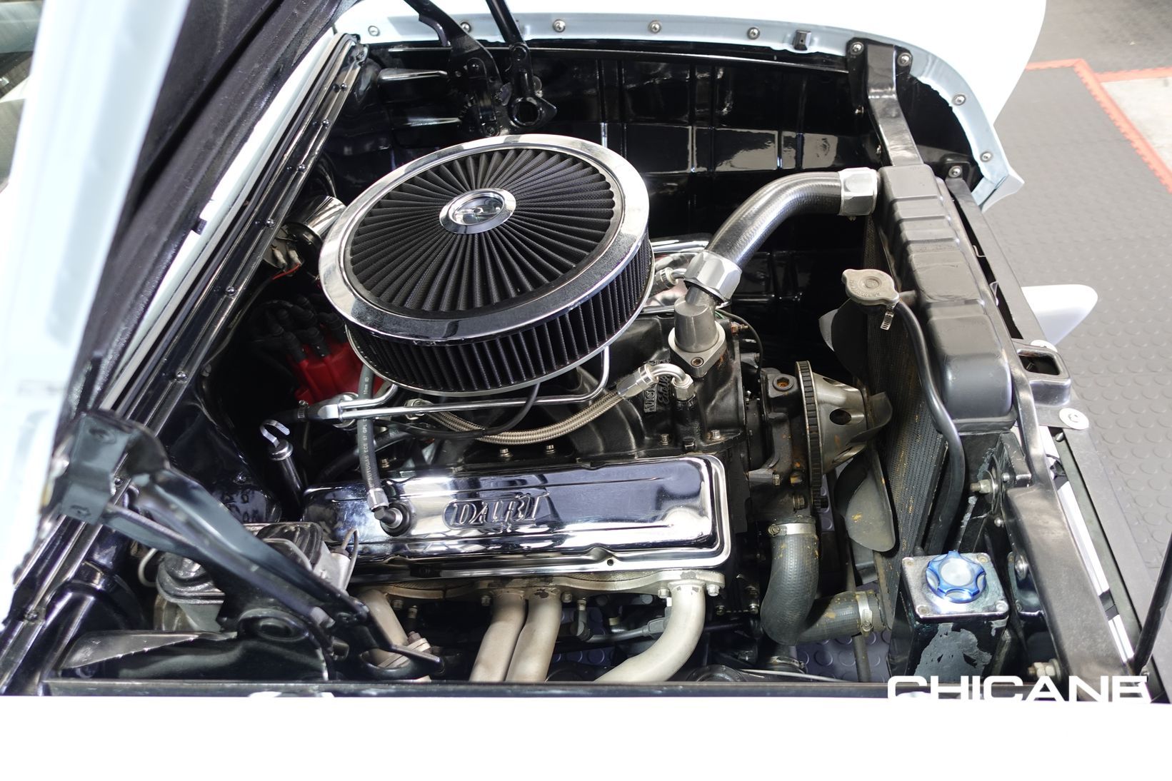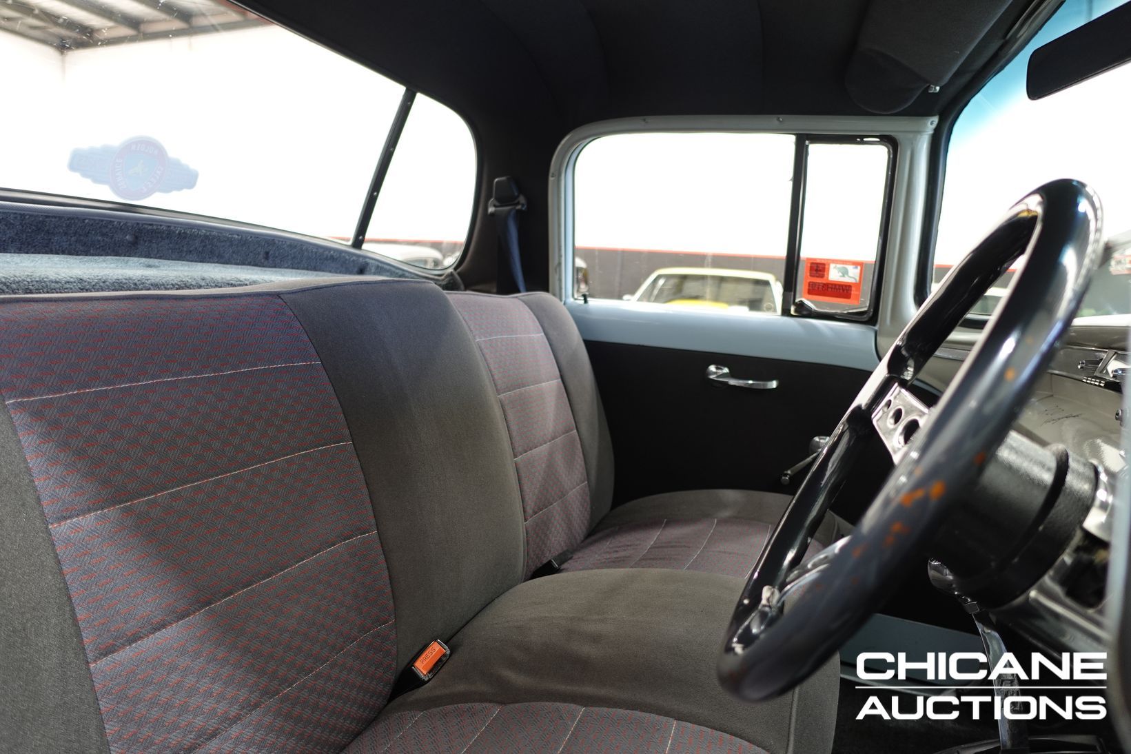 The cabin keeps its original front bench seat, professionally recovered, with occupant safety upgraded to inertia-reel outer seat belts and a centre lap belt. The Dashboard is as factory with the addition of two hidden oil and Temp gauges and a more modern radio system. The door cards are custom upholstered. The automatic floor shifter is a Quiksilver unit.