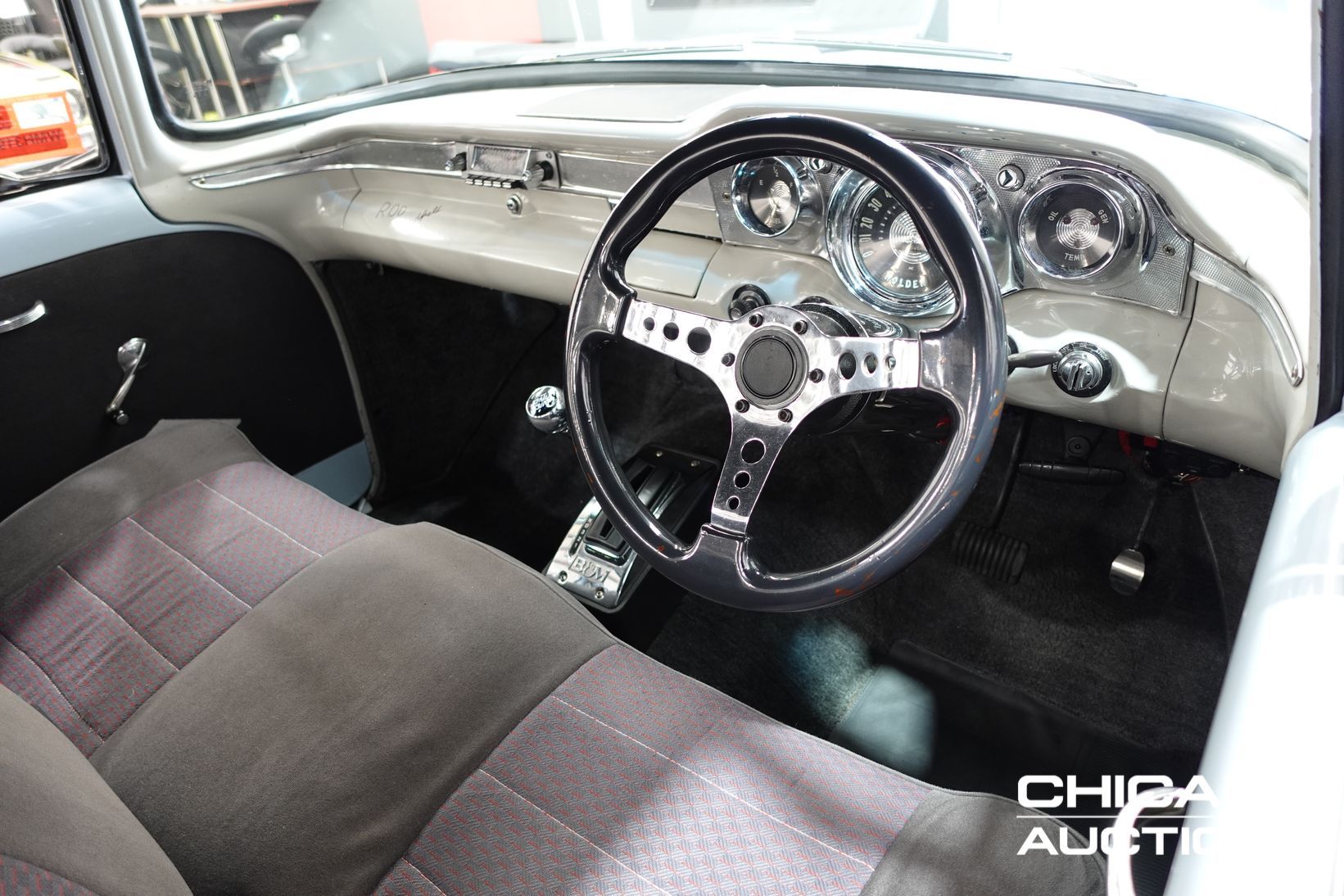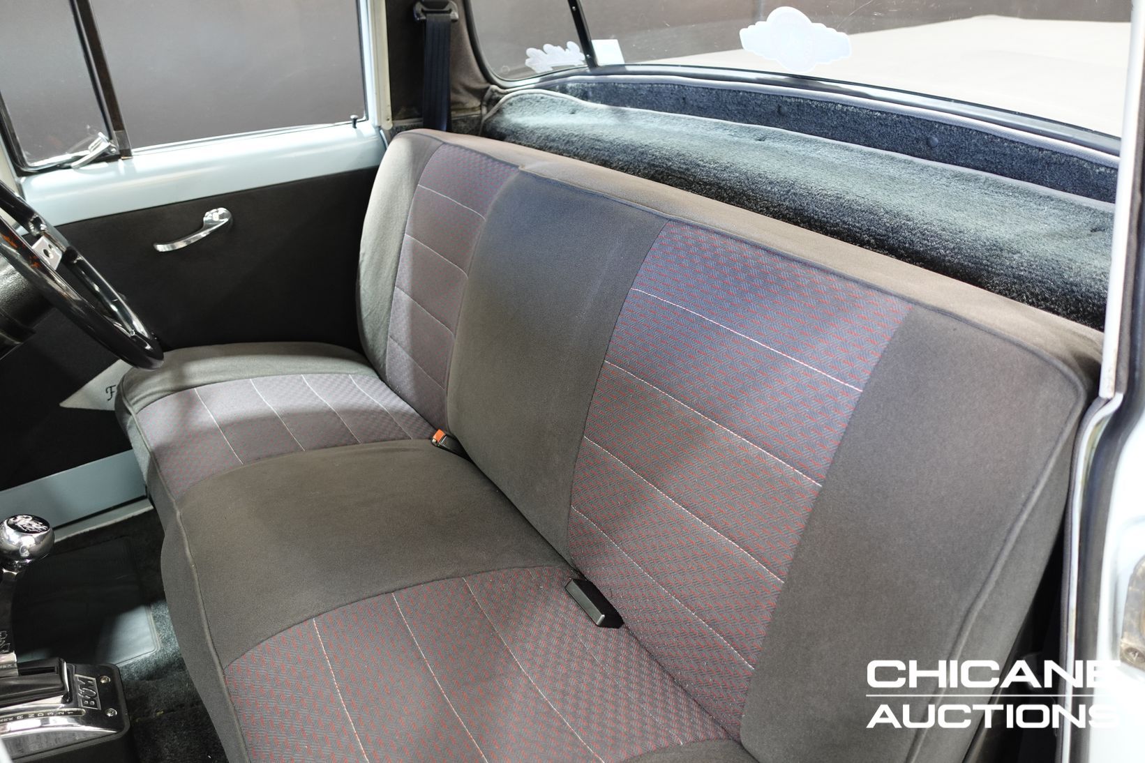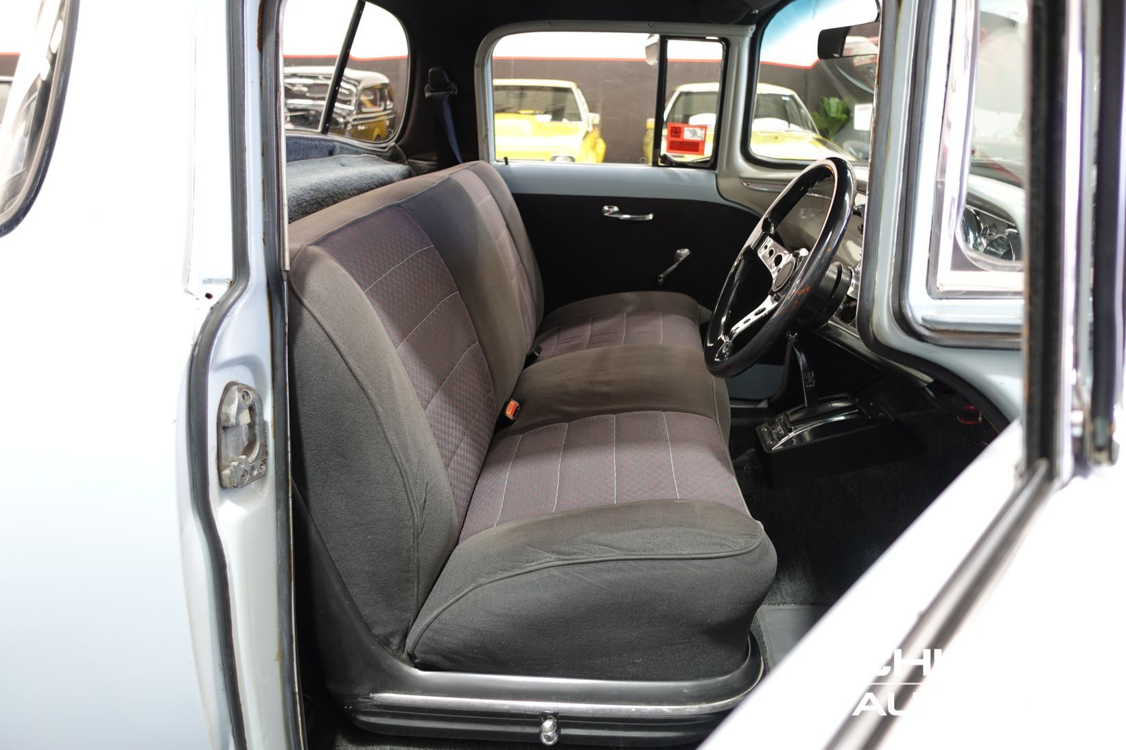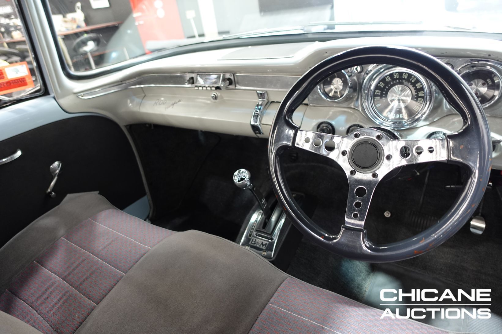 The cabin keeps its original front bench seat, professionally recovered, with occupant safety upgraded to inertia-reel outer seat belts and a centre lap belt. The Dashboard is as factory with the addition of two hidden oil and Temp gauges and a more modern radio system. The door cards are custom upholstered. The automatic floor shifter is a Quiksilver unit.