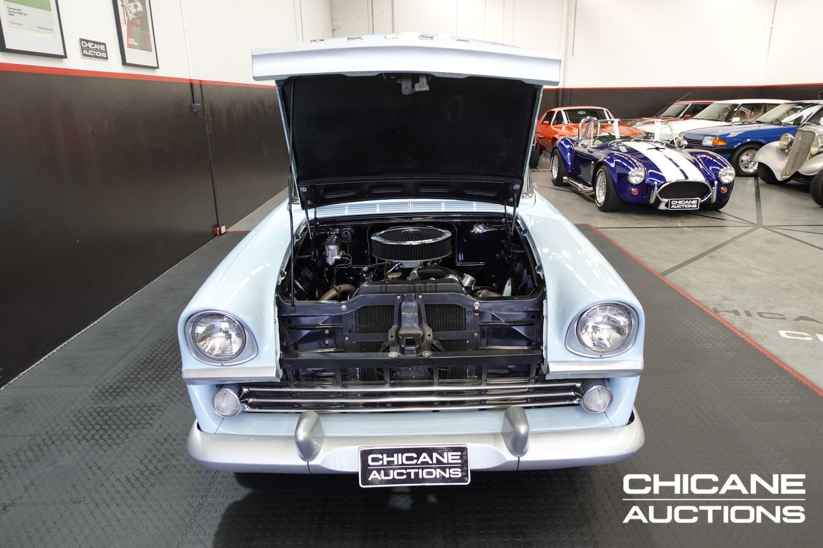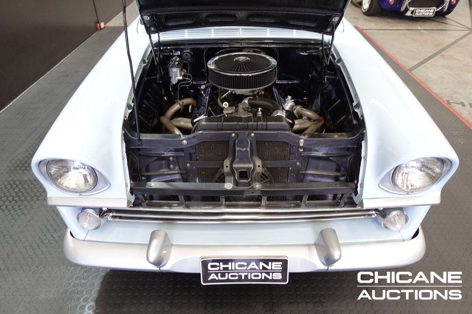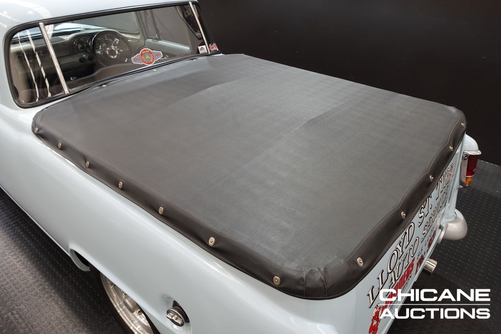 This 1960 Holden FB Utility is a fully engineered, modified production vehicle that merges classic Aussie ute styling with serious V8 muscle. It has been upgraded from its original 138ci six-cylinder to a Chevrolet 327ci V8 delivering an estimated 400+ horsepower. The conversion features a strengthened chassis with a Rod Hadfield chassis kit, a modified HR Holden crossmember, HR model front suspension, and a Ford 9-inch differential and axle assembly. Braking has been upgraded to a Holden HQ disc/drum system, while Torana rack and pinion steering has been fitted, with suspension, and drivetrain have all been extensively re-engineered. Every element of the build has been carried out with quality components and professional workmanship to deliver performance without losing the FB’s original charm.