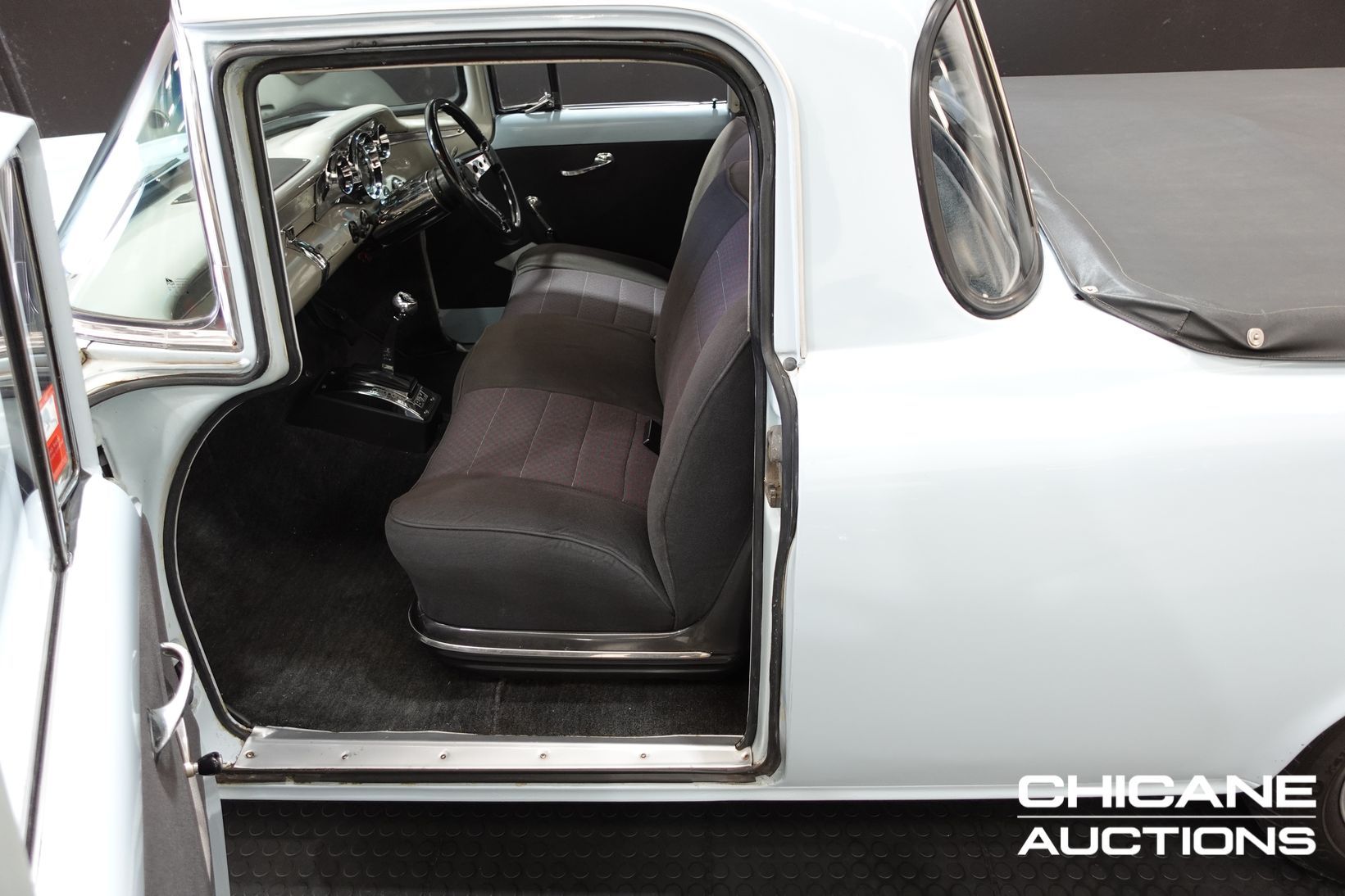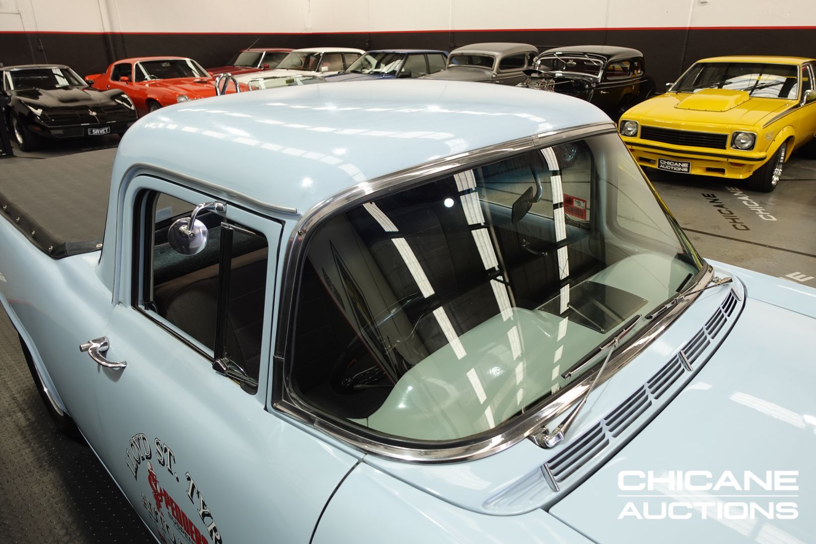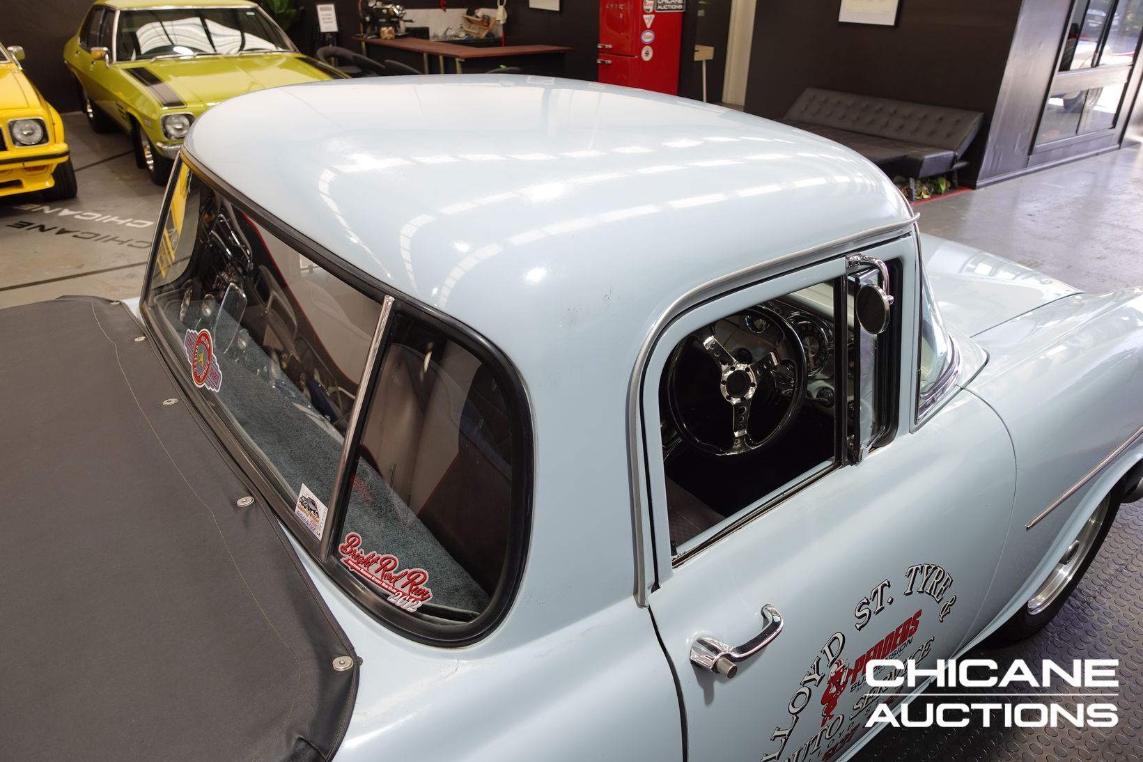 This 1960 Holden FB Utility is a fully engineered, modified production vehicle that merges classic Aussie ute styling with serious V8 muscle. It has been upgraded from its original 138ci six-cylinder to a Chevrolet 327ci V8 delivering an estimated 400+ horsepower. The conversion features a strengthened chassis with a Rod Hadfield chassis kit, a modified HR Holden crossmember, HR model front suspension, and a Ford 9-inch differential and axle assembly. Braking has been upgraded to a Holden HQ disc/drum system, while Torana rack and pinion steering has been fitted, with suspension, and drivetrain have all been extensively re-engineered. Every element of the build has been carried out with quality components and professional workmanship to deliver performance without losing the FB’s original charm.