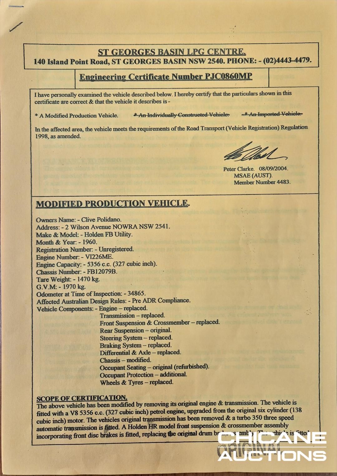 1960 HOLDEN FB UTILITY - SOLD $72,350 inc BP