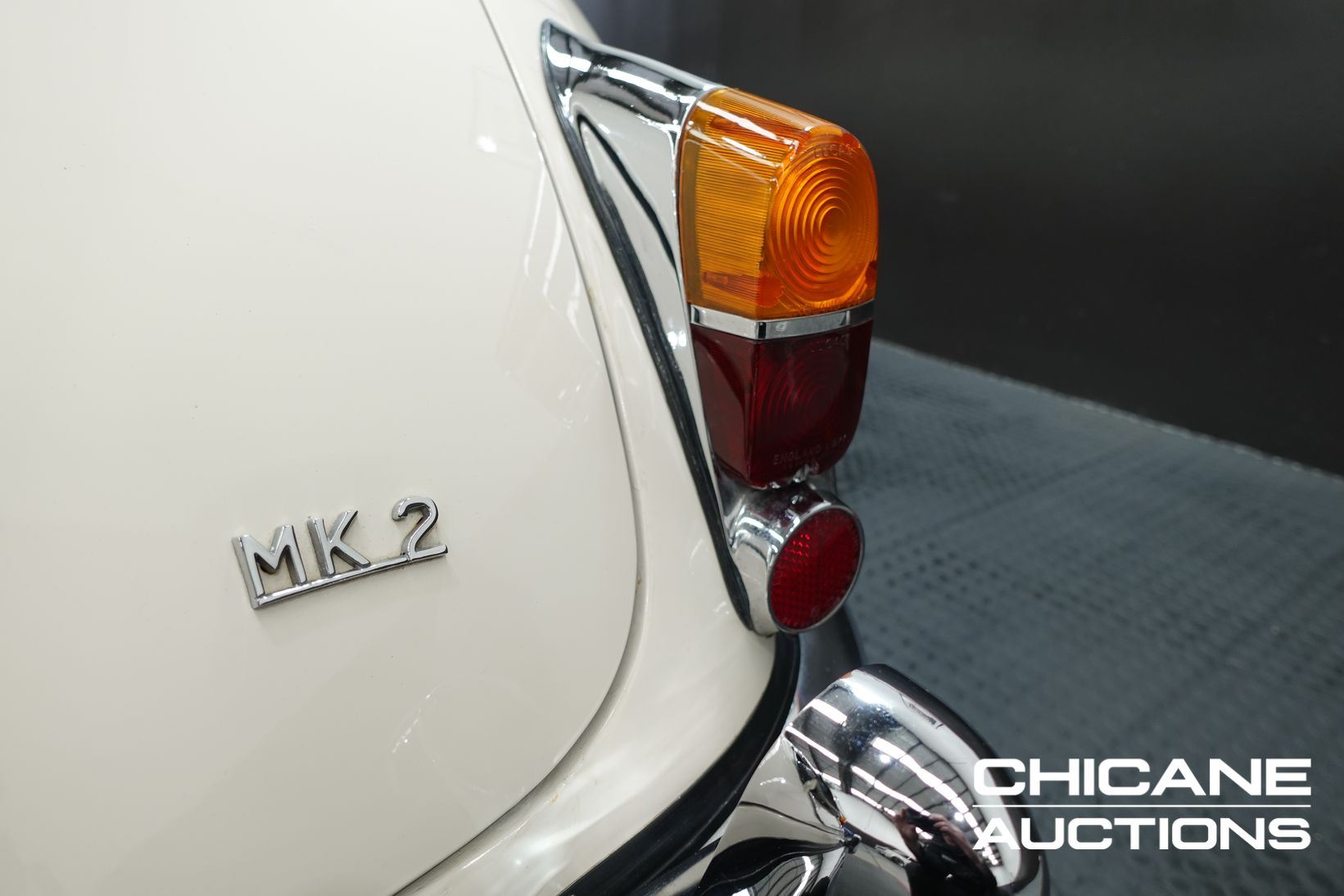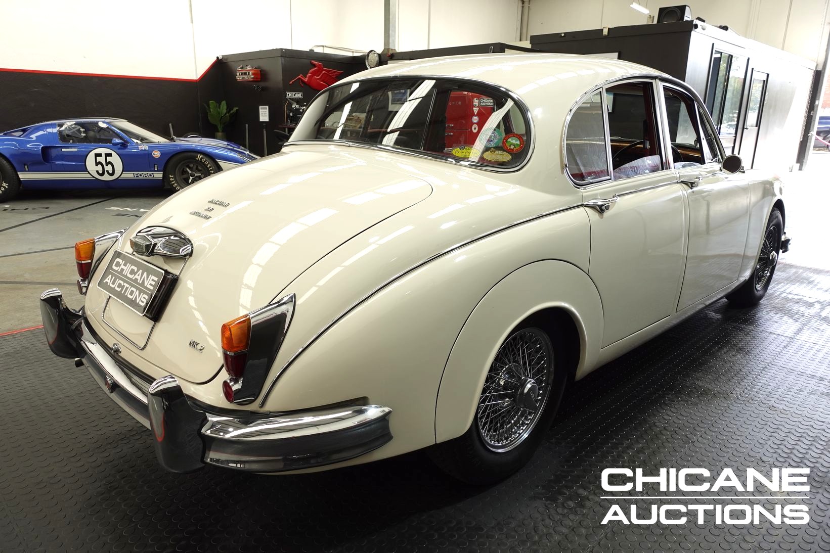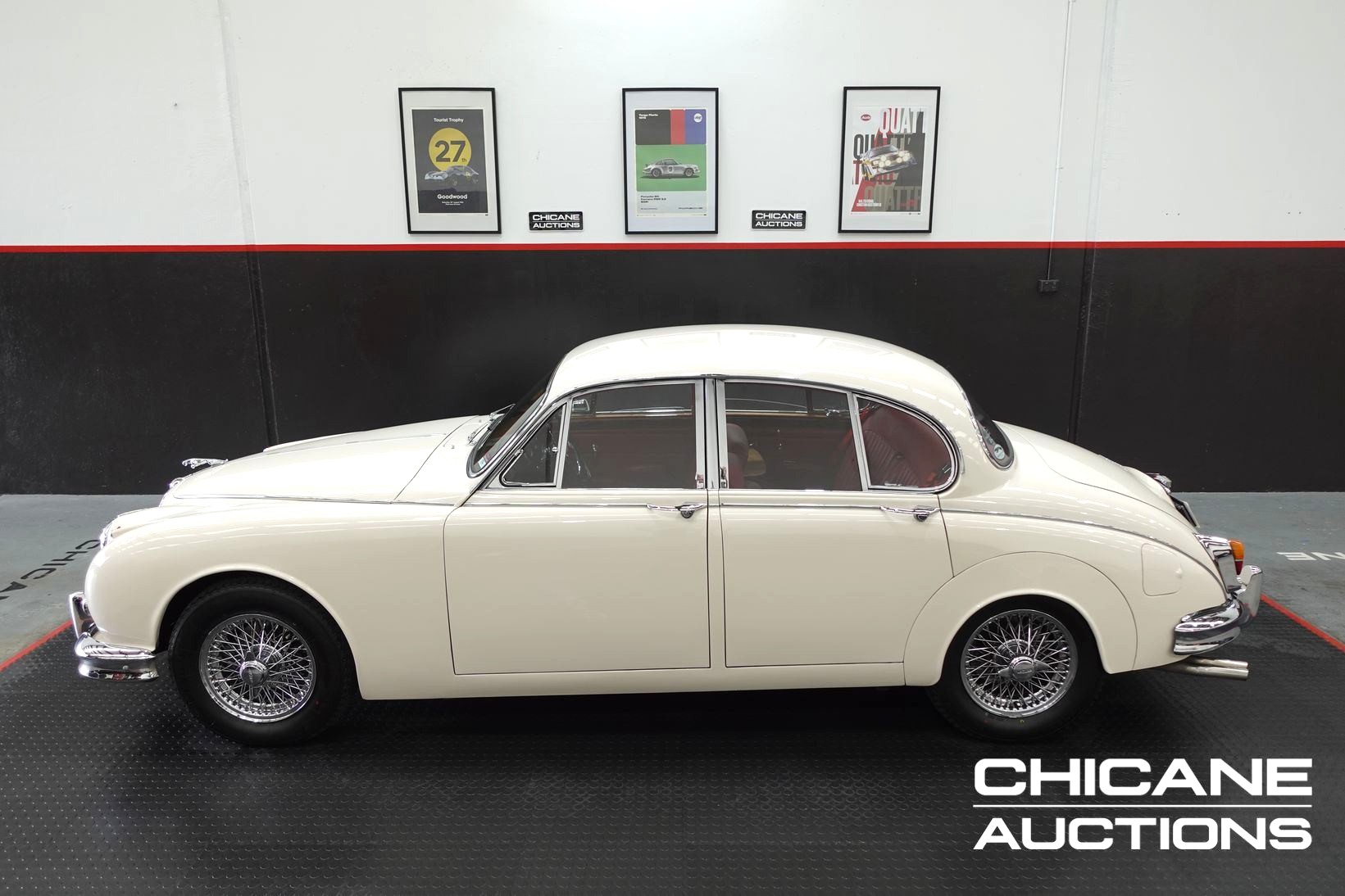 The 1962 Jaguar Mk II 3.8 Automatic offered here is a superbly restored example of one of Jaguar’s most iconic saloons. With its powerful 3.8-litre engine, elegant Old English White coachwork, and richly appointed red leather interior, it embodies both luxury and performance. With a known ownership of Jaguar Car Club Members, this 'Jag' is ready to be driven and enjoyed as intended.