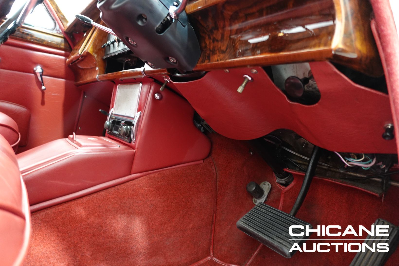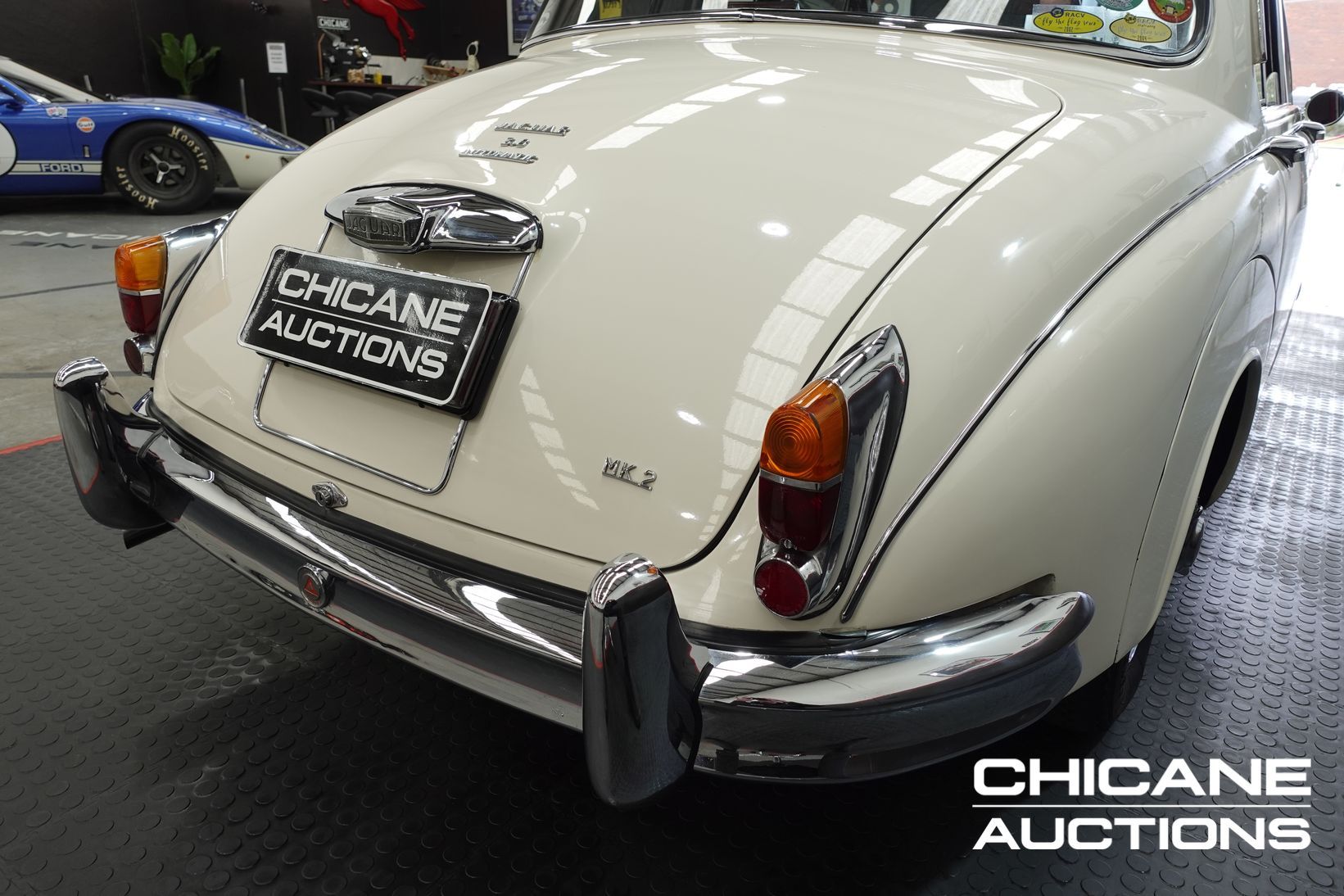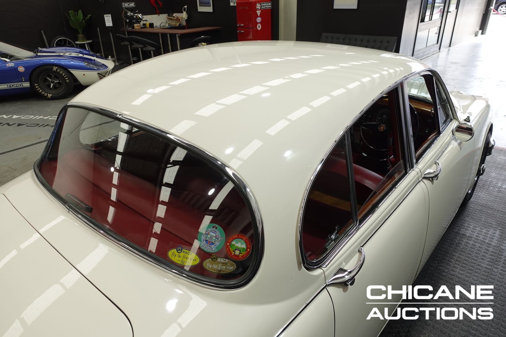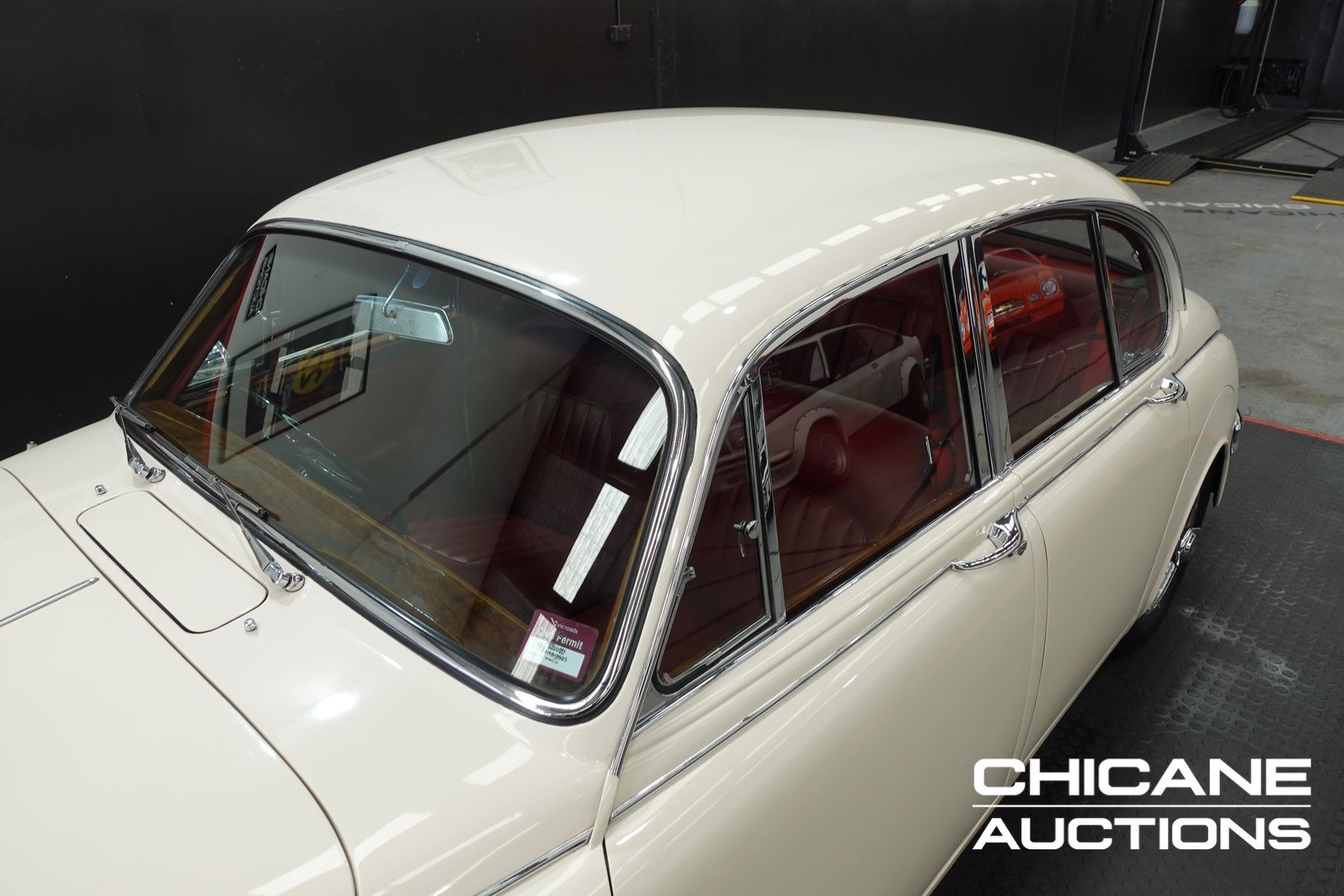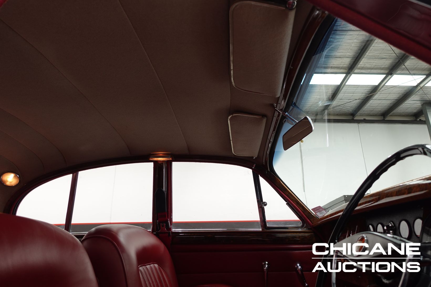 Beneath the sculpted bonnet lies Jaguar’s legendary 3.8-litre inline-six engine, producing smooth, effortless power. Paired with the automatic transmission, it delivers refined drivability perfectly suited to both city cruising and long-distance touring. The mechanicals have been restored and maintained with attention to originality, with recent works ensuring reliability. Power-assisted four-wheel disc brakes—innovative for the era—provide confident stopping power, while the suspension offers the ideal blend of comfort and sportiness that made the Mk II a favourite of both enthusiasts and racers.