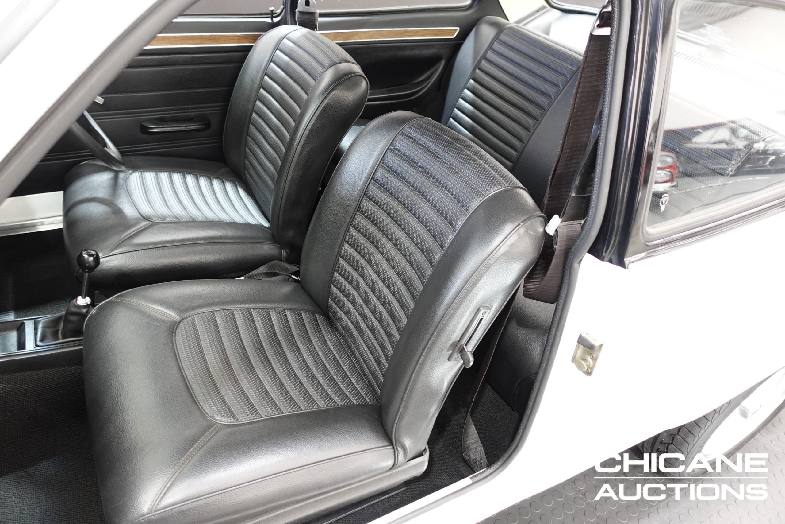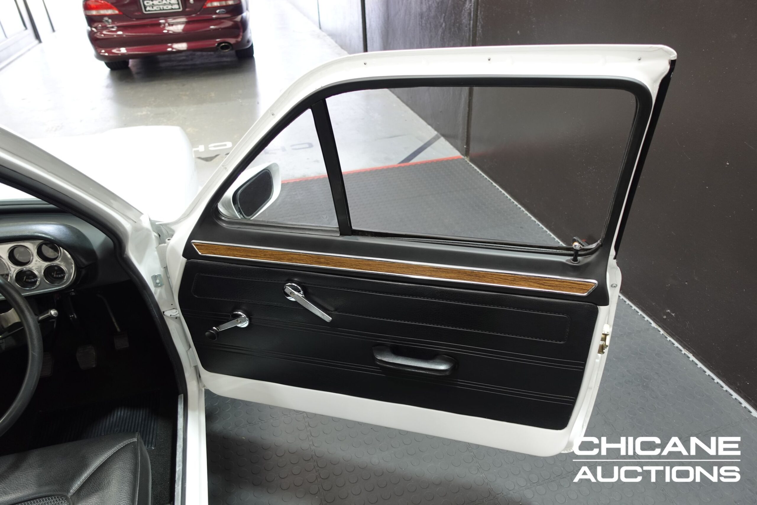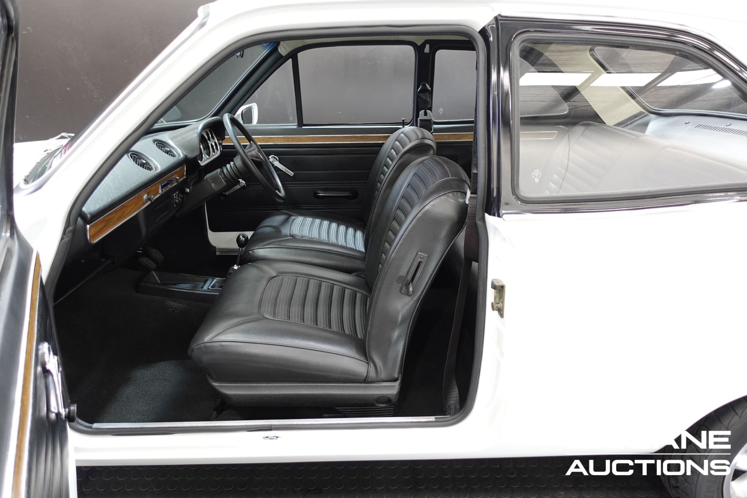 Originally delivered in Bronze Wine, this Twin Cam was professionally repainted in Ultra White, a common CK49 Escort color chosen as the Owners favored choice. The panel fit and finish are of a high standard, and the restoration included the replacement of all rubbers, seals, and external trims. The paintwork shows a deep gloss, and the obvious high level of preparation is evident in the quality of the panel alignment and fitment. During the restoration, the grille was converted to the UK style round headlight, as the Owners preferred style. The original Aust. Spec. square headlight grille and panel are included in the sale. Importantly, this car retains its original genuine CK49 competition bodyshell, which features numerous key factory enhancements.