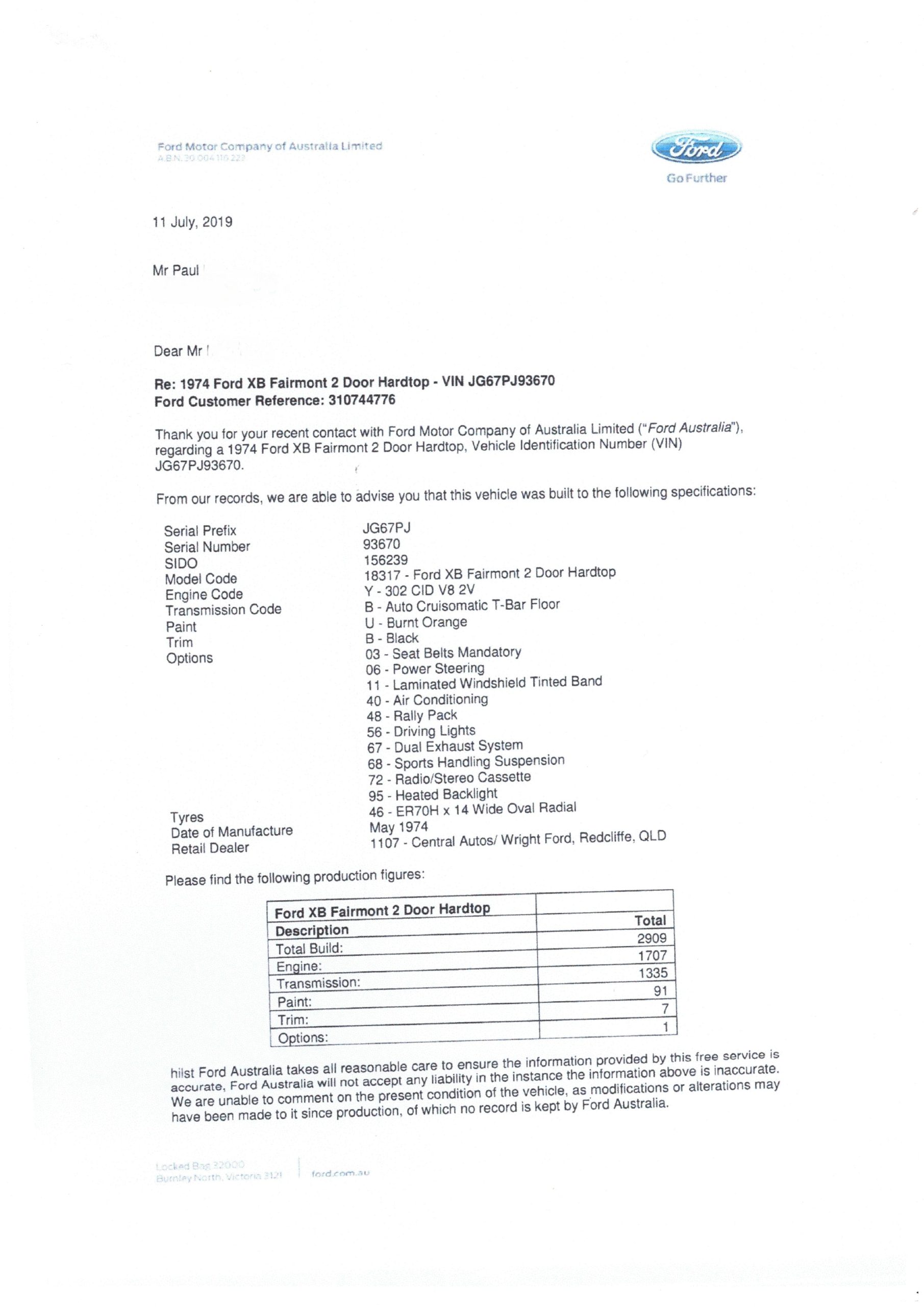 A beautifully restored 1974 Ford XB Fairmont GS Hardtop, finished in Burnt Orange with Black trim and delivered new through Central Autos/Wright Ford in Redcliffe, QLD. With provenance verified by Ford Australia documentation and enhanced with subtle upgrades during its meticulous rebuild, it presents as a near-showroom example.