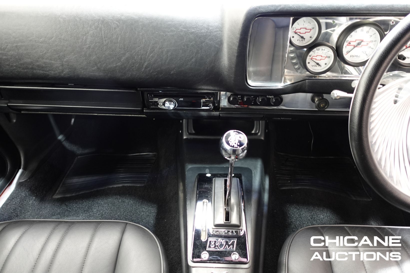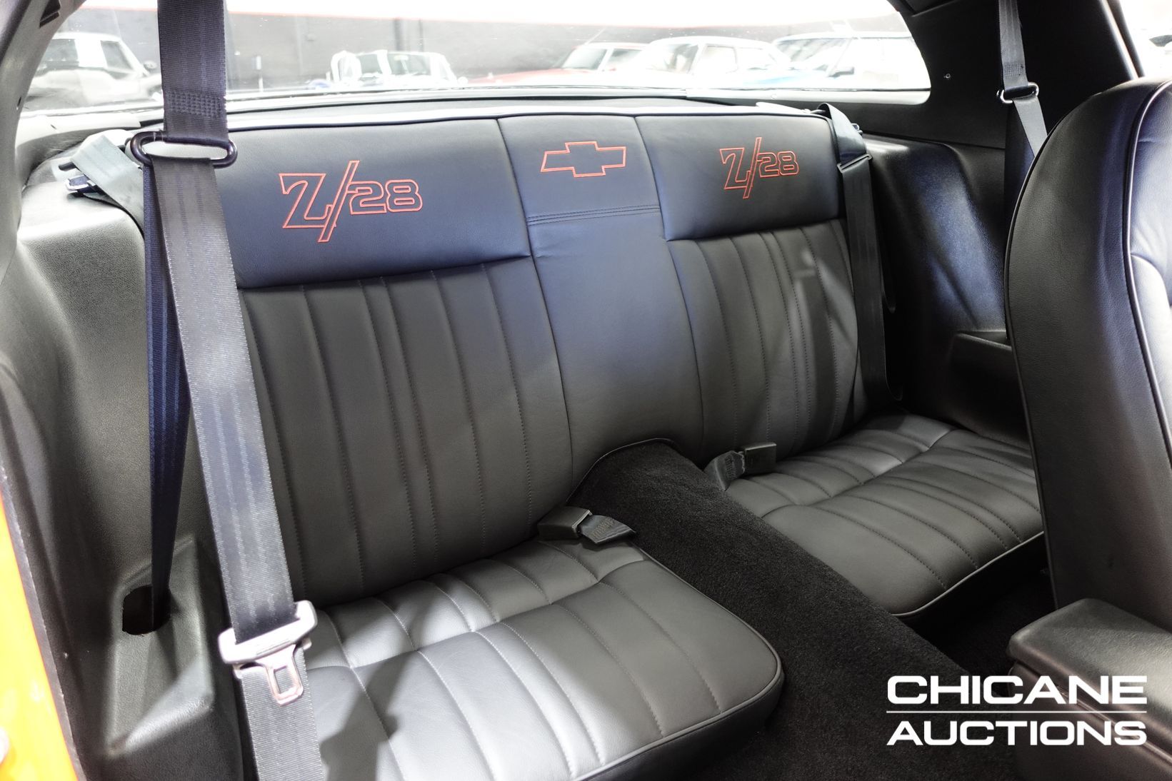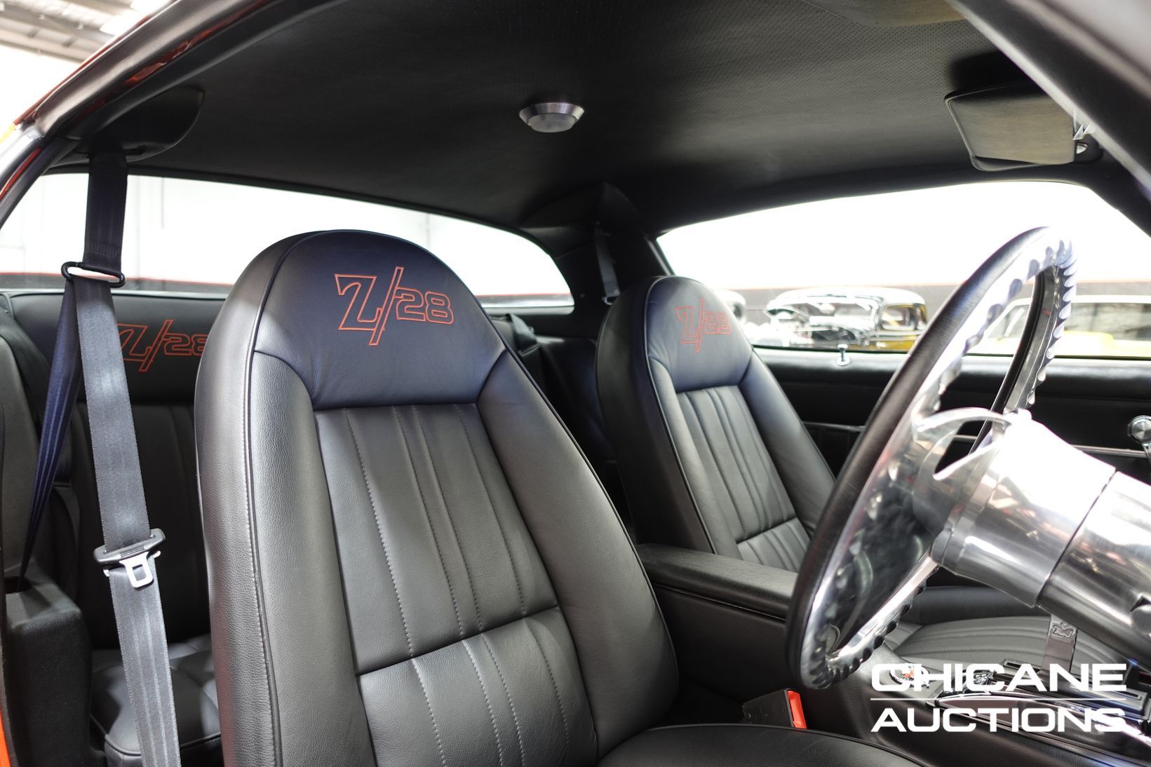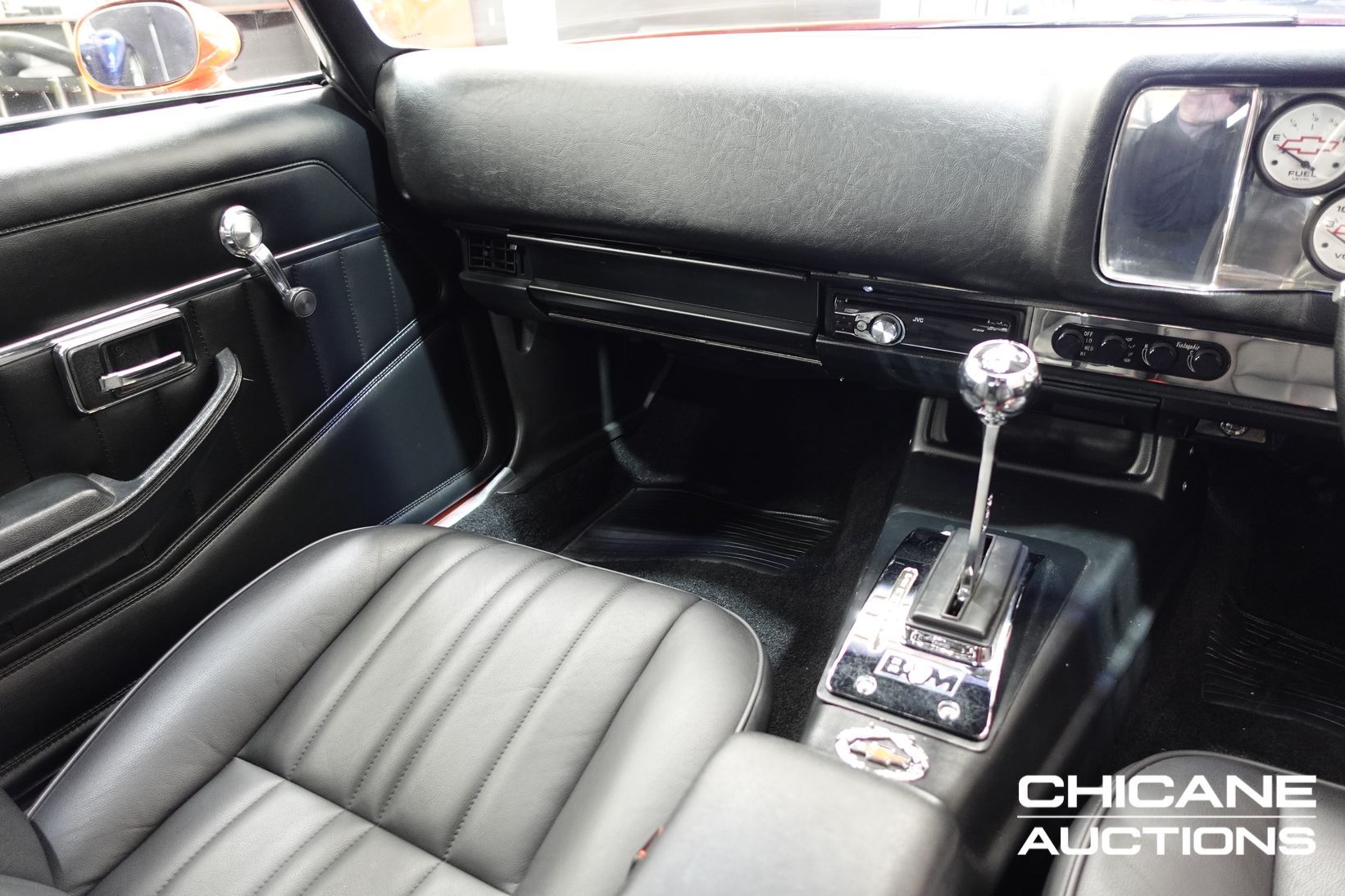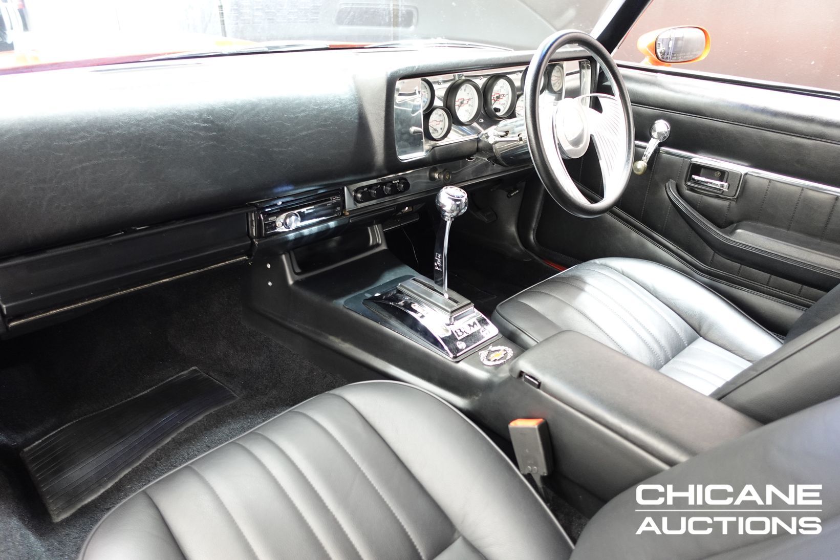 Inside, the car has been fully retrimmed in custom Z28-embossed leather seats front and rear, complemented by new door cards, carpet, and roof lining for a clean, tailored finish. A custom Chevrolet Bowtie gauge cluster, billet Chevrolet steering wheel, and JVC audio system with push-button start add modern functionality, while Vintage Air conditioning ensures comfort. A Quicksilver shifter controls the transmission, and all new rubbers, seals, and glass were fitted during the rebuild. The presentation is immaculate, free of blemishes, and ready for show judging.