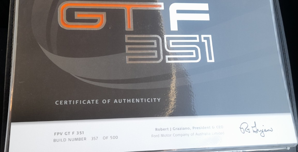 On offer is Build No. 357 of the 2014 Ford Performance Vehicles GT F built, finished in striking Octane metallic with the desirable 6-speed manual transmission. Showing just 5,992 kilometres from new, this example has been carefully pampered, garaged, and preserved in near-showroom condition. Delivered new with all books, certificates, documentation, original delivery items, and a fitted car cover. This 1 Owner car also comes with its Victorian registration plates “GTF357” — making it as collectible as it is rare. Representing the final chapter of the Falcon GT bloodline, this GT F is a true blue, muscle car investment.