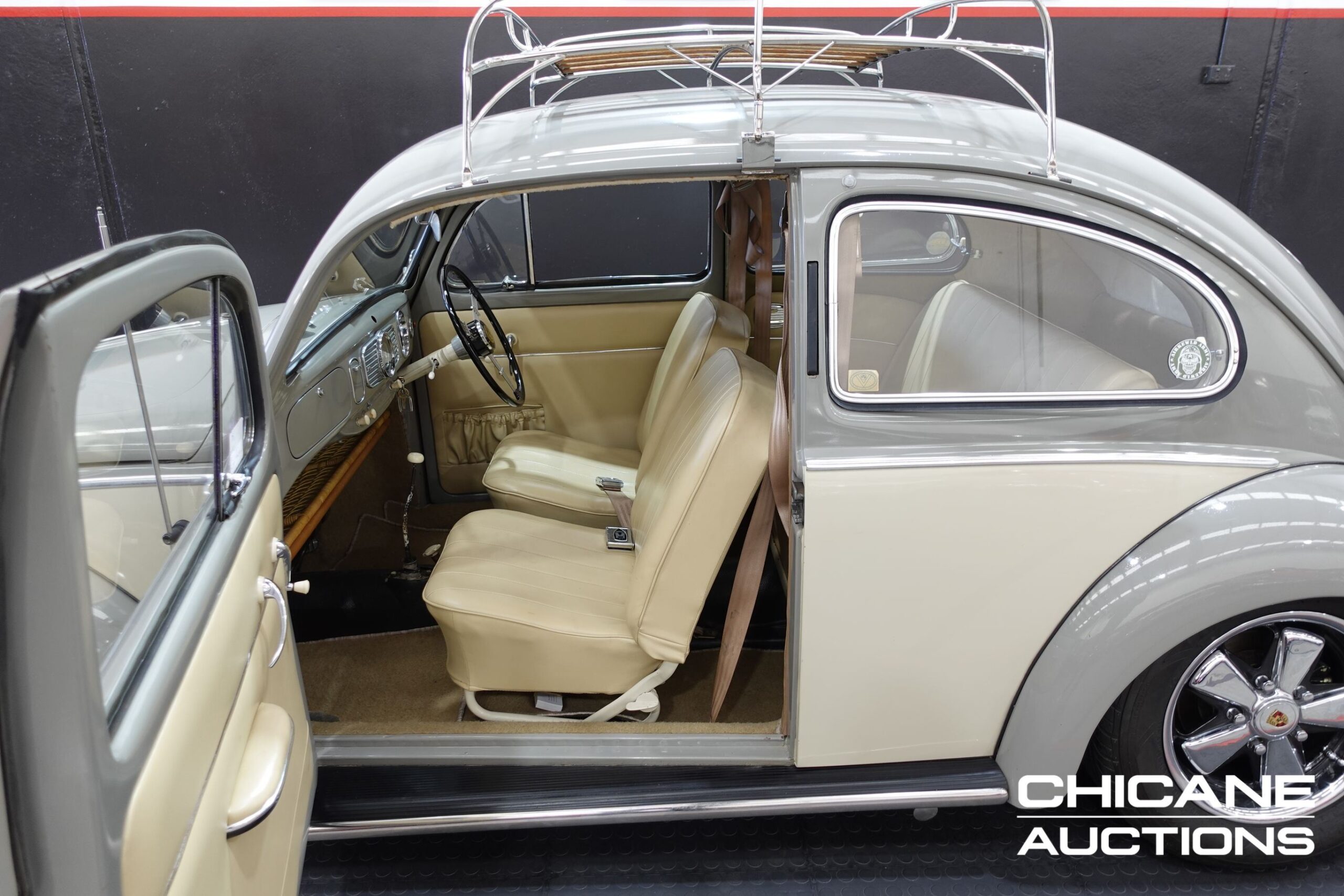The car rides on 15-inch Porsche-style Fuchs wheels, offering a subtle performance flair that complements its stance and visual presence. The roof is fitted with a rare and high quality stainless steel and timber slat roof rack, adding a classic surf-era look and enhancing practicality for weekend getaways. Factory style rear pop-out quarter windows are fitted and are functional, providing extra ventilation and a desirable period detail. This Beetle retains its original semaphore indicators, which extend from the B-pillars and illuminate — a signature factory feature of early Beetles, in full working condition.