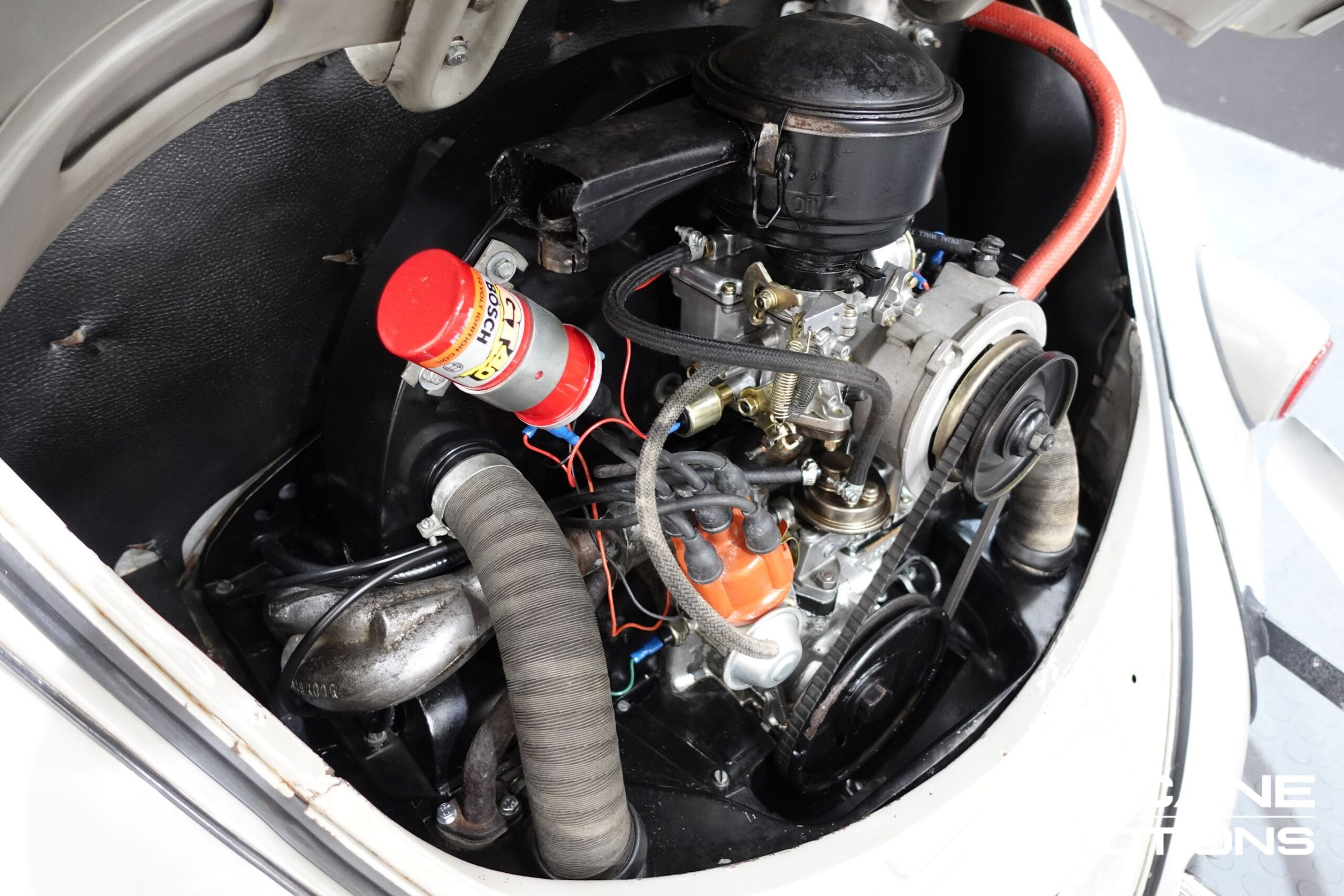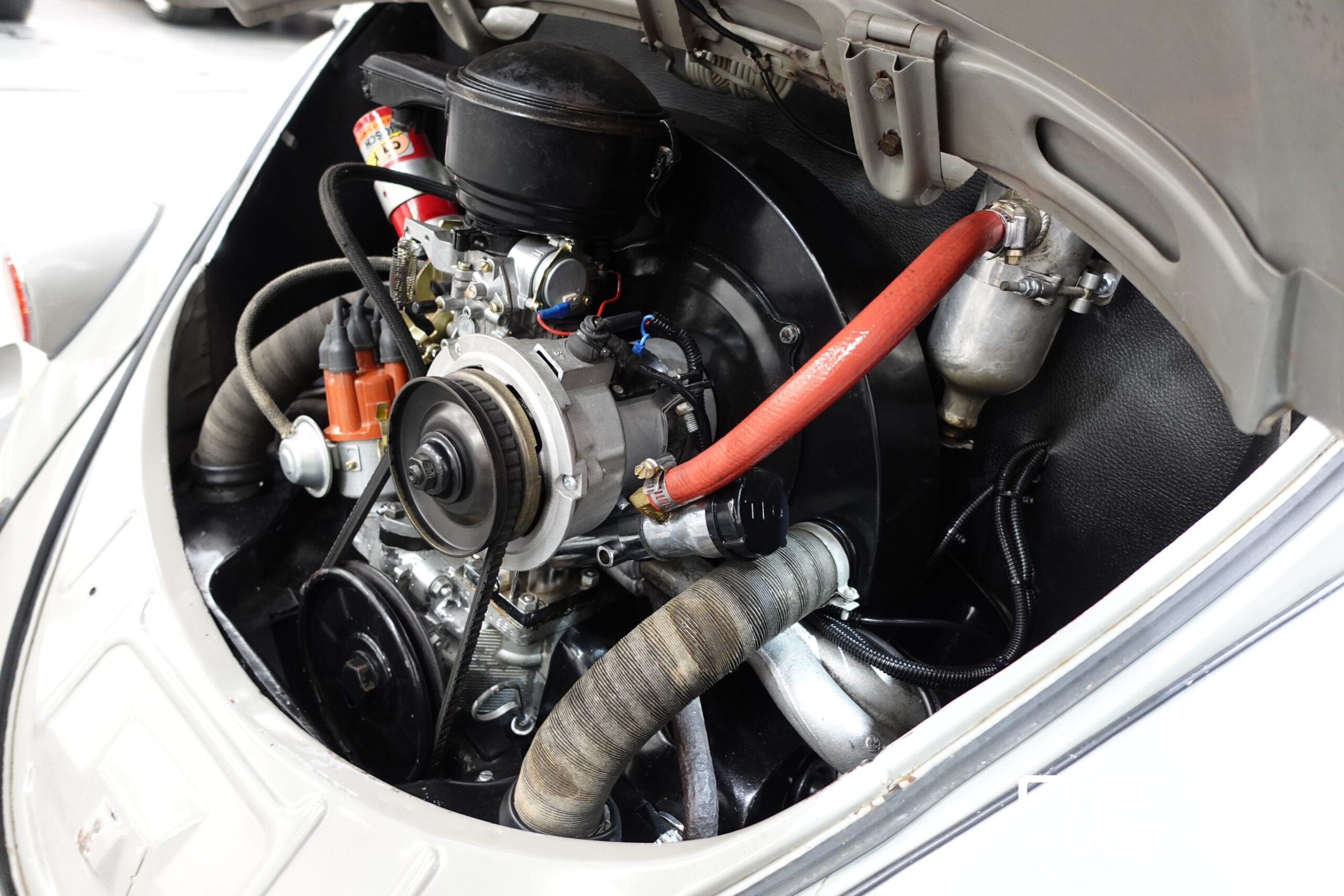The car sits on its original numbered 1956 Chassis and is powered by a strong 1600cc AD-code twin-port engine, a common and well-regarded upgrade over the original 1200cc powerplant. The engine has just had a full service, including the installation of a new carburettor, and it runs cleanly with excellent throttle response. A 12-volt alternator conversion has been fitted, bringing improved electrical and starting reliability, and the car features an entirely new engine wiring harness, professionally installed for modern safety.