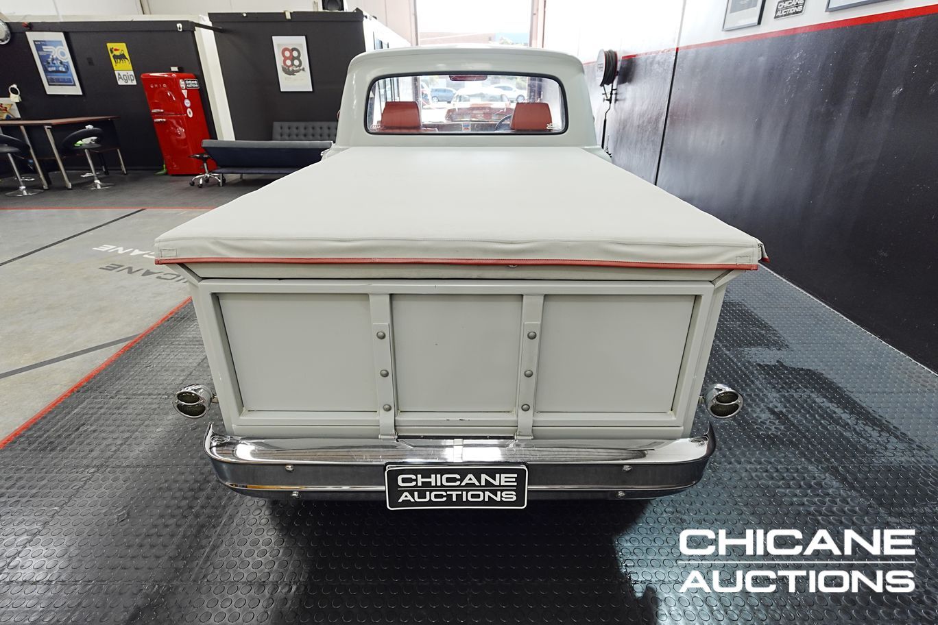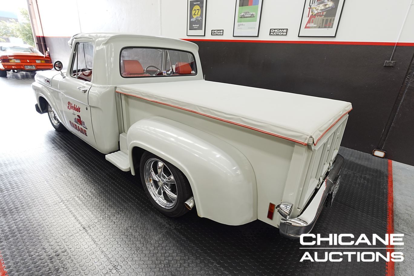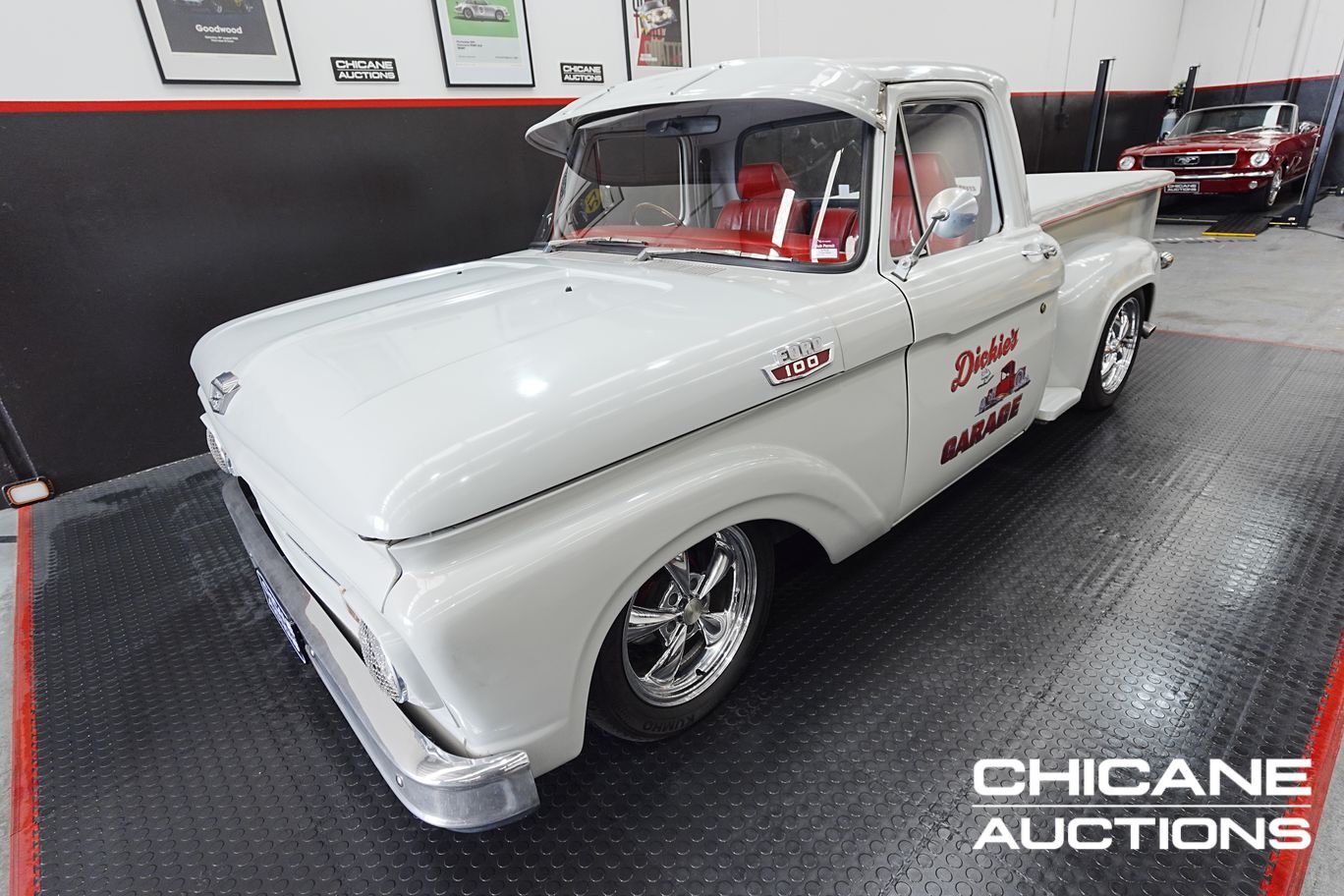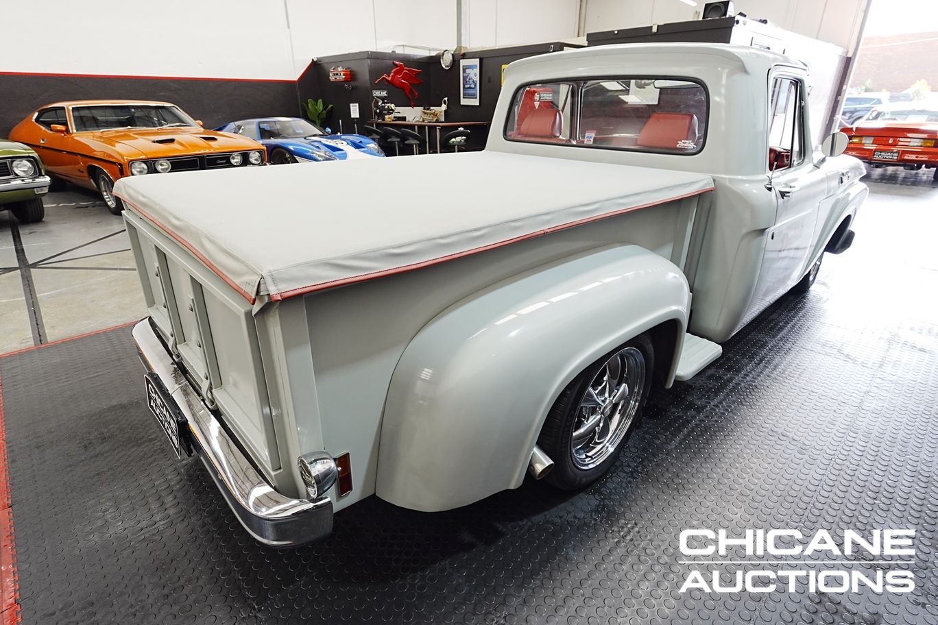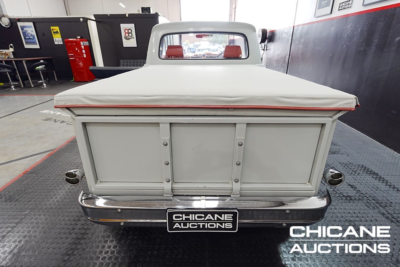 Offered is this fantastic old-school custom 61 F100 Custom that blends a more modern Holden HZ 1-Tonner chassis with the iconic Ford F100 cab and side-step tub, all professionally engineered and certified as a Modified Production Vehicle. Under the bonnet, the Holden 308ci V8 is paired with a Turbo 350 automatic and 10 bolt diff. Inside, the bright red custom trim features bucket seats, full instrumentation and a JVC sound system, while the exterior adds practicality with a lockable hard lid and drop-down tailgate.