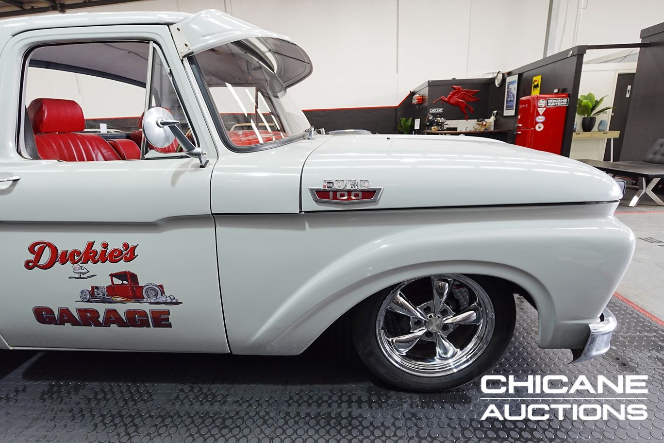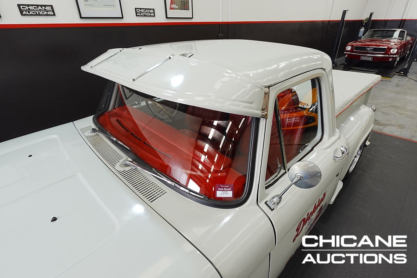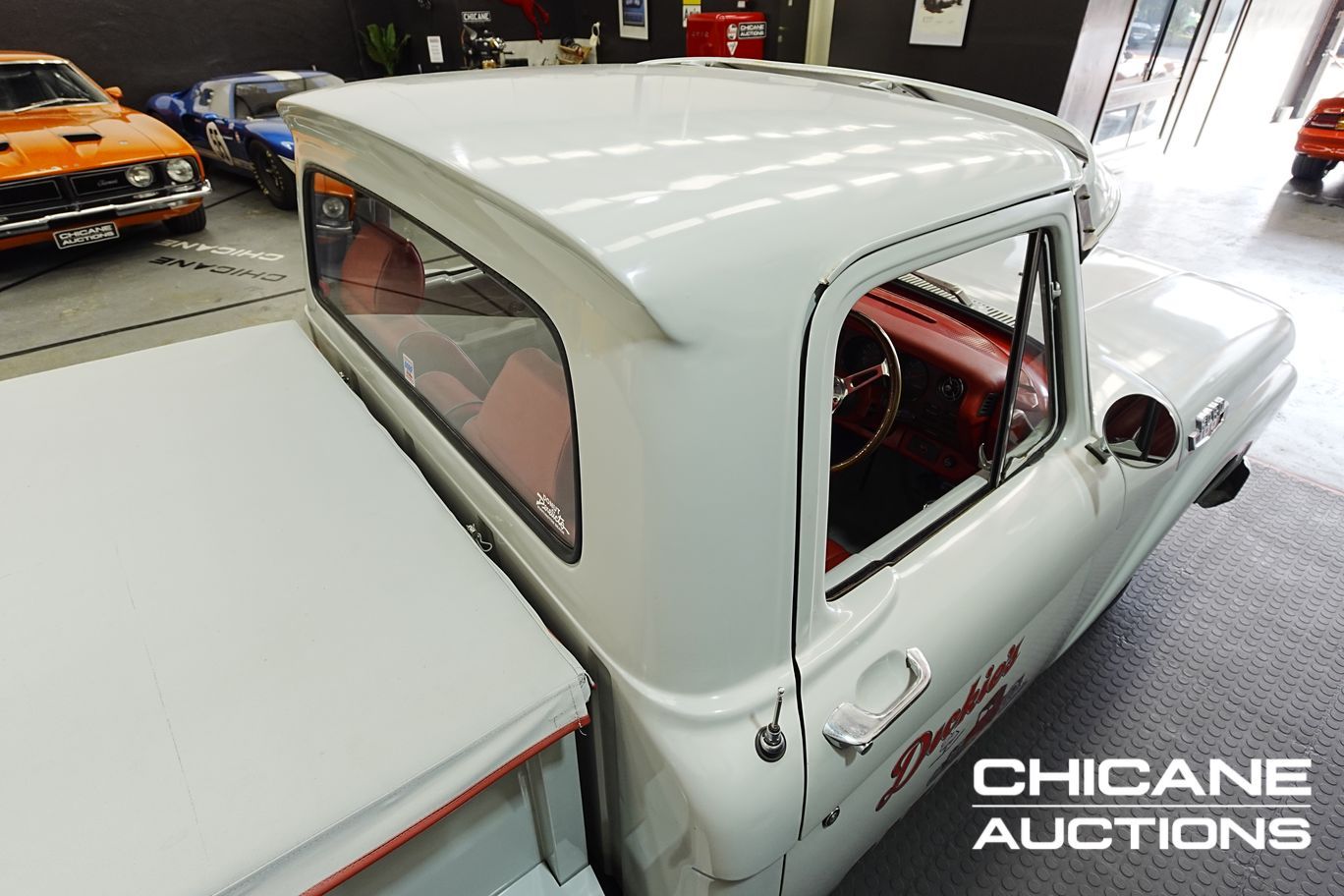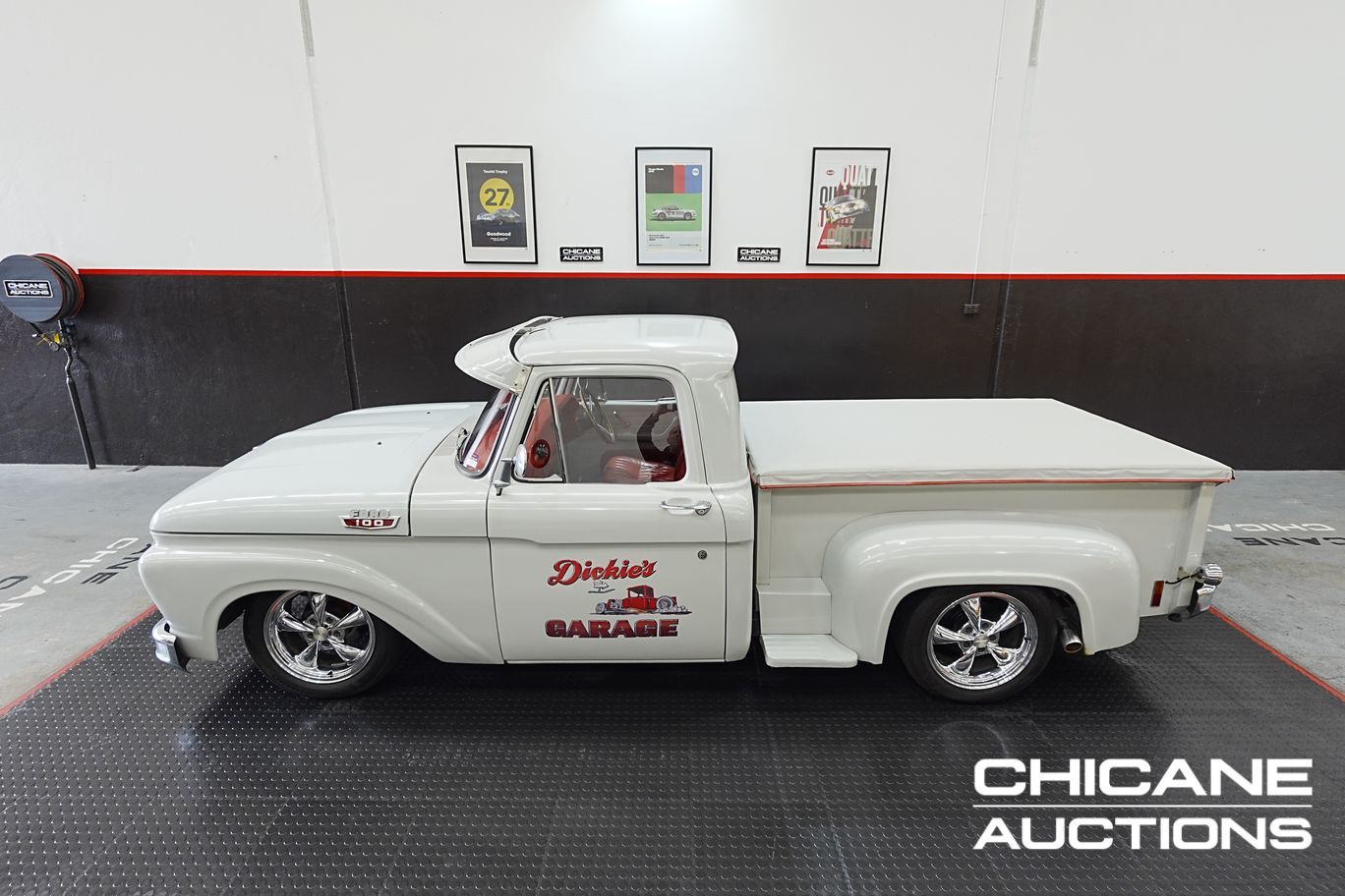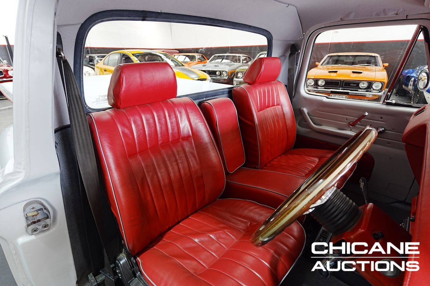Offered is this fantastic old-school custom 61 F100 Custom that blends a more modern Holden HZ 1-Tonner chassis with the iconic Ford F100 cab and side-step tub, all professionally engineered and certified as a Modified Production Vehicle. Under the bonnet, the Holden 308ci V8 is paired with a Turbo 350 automatic and 10 bolt diff. Inside, the bright red custom trim features bucket seats, full instrumentation and a JVC sound system, while the exterior adds practicality with a lockable hard lid and drop-down tailgate.