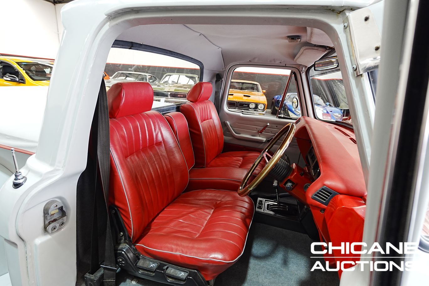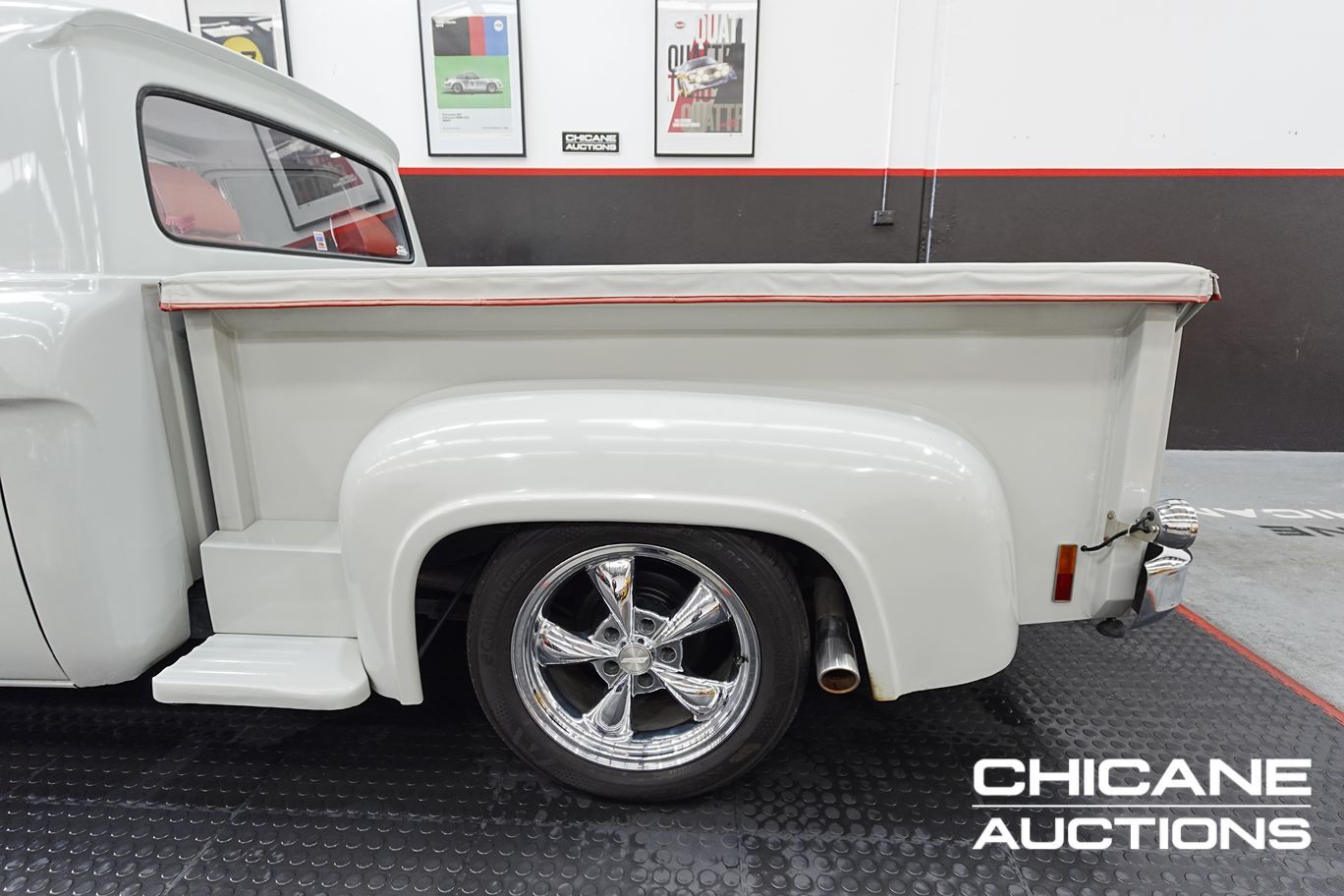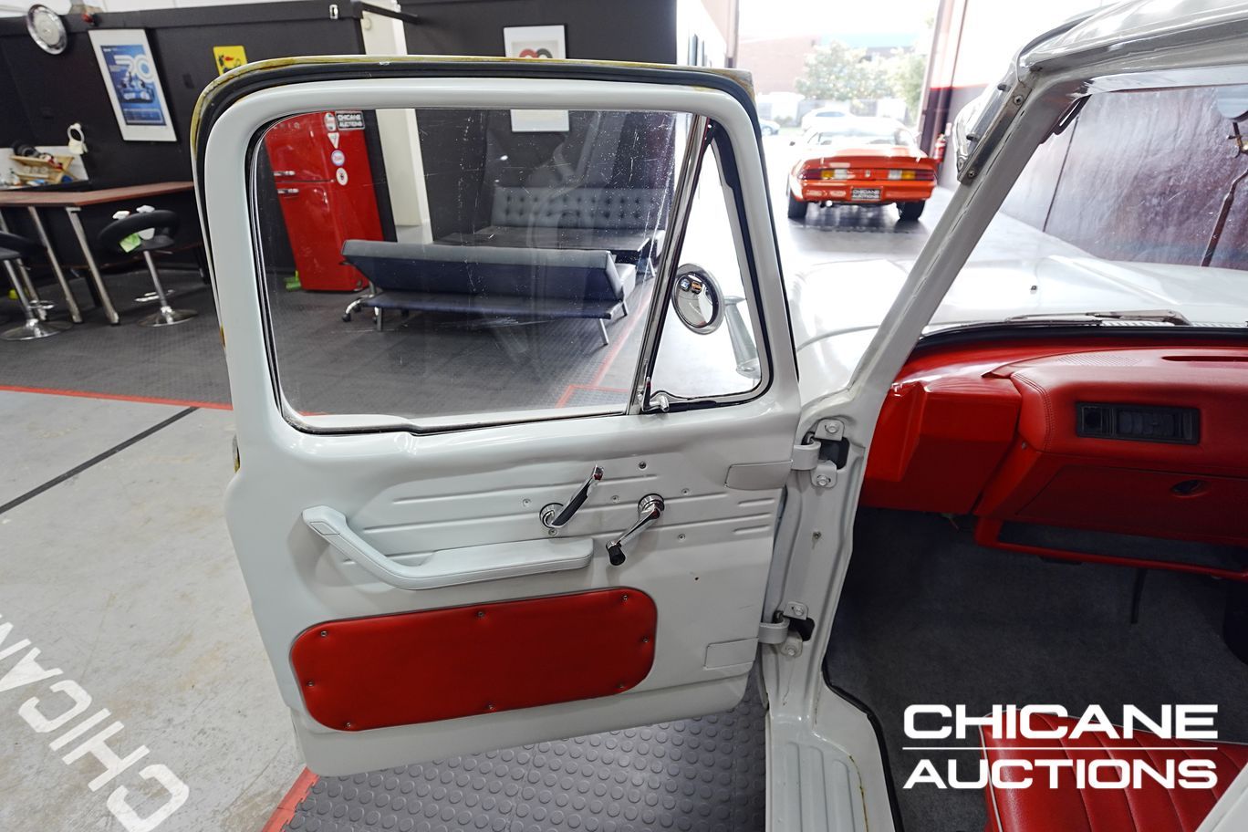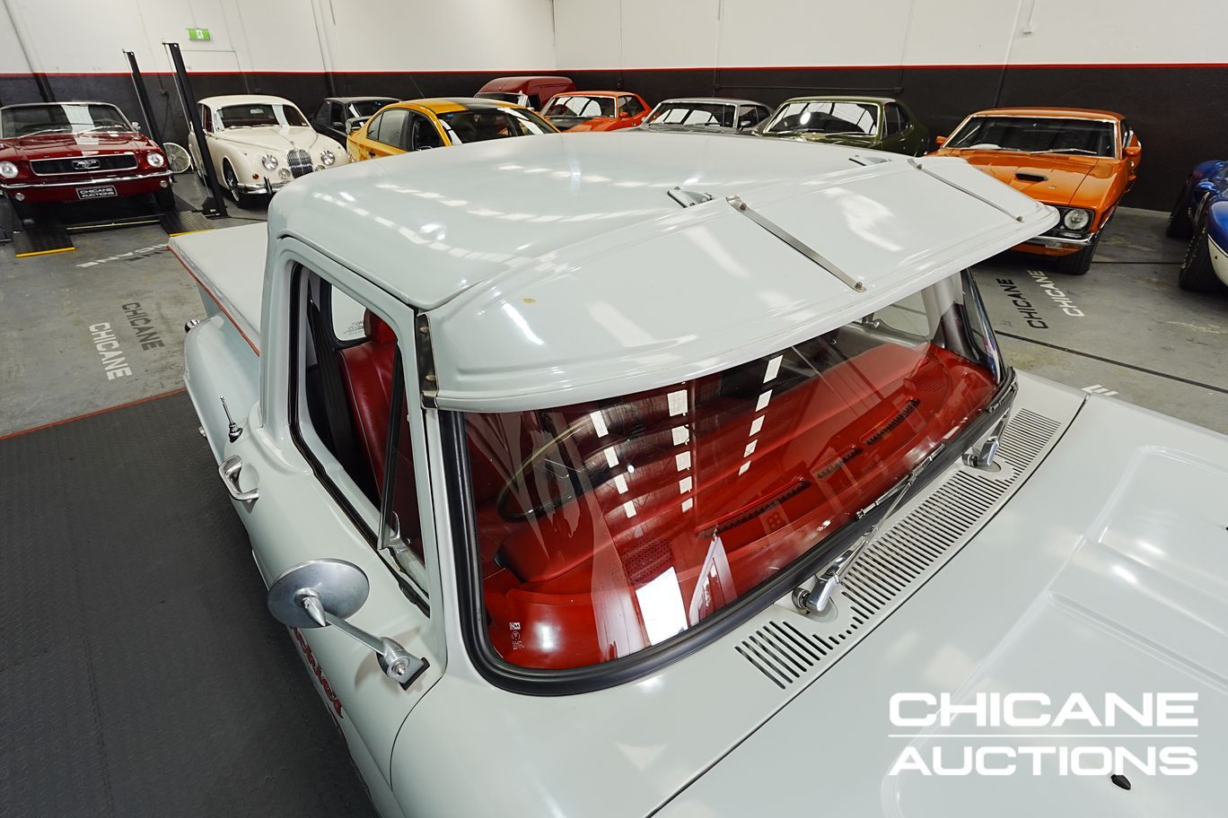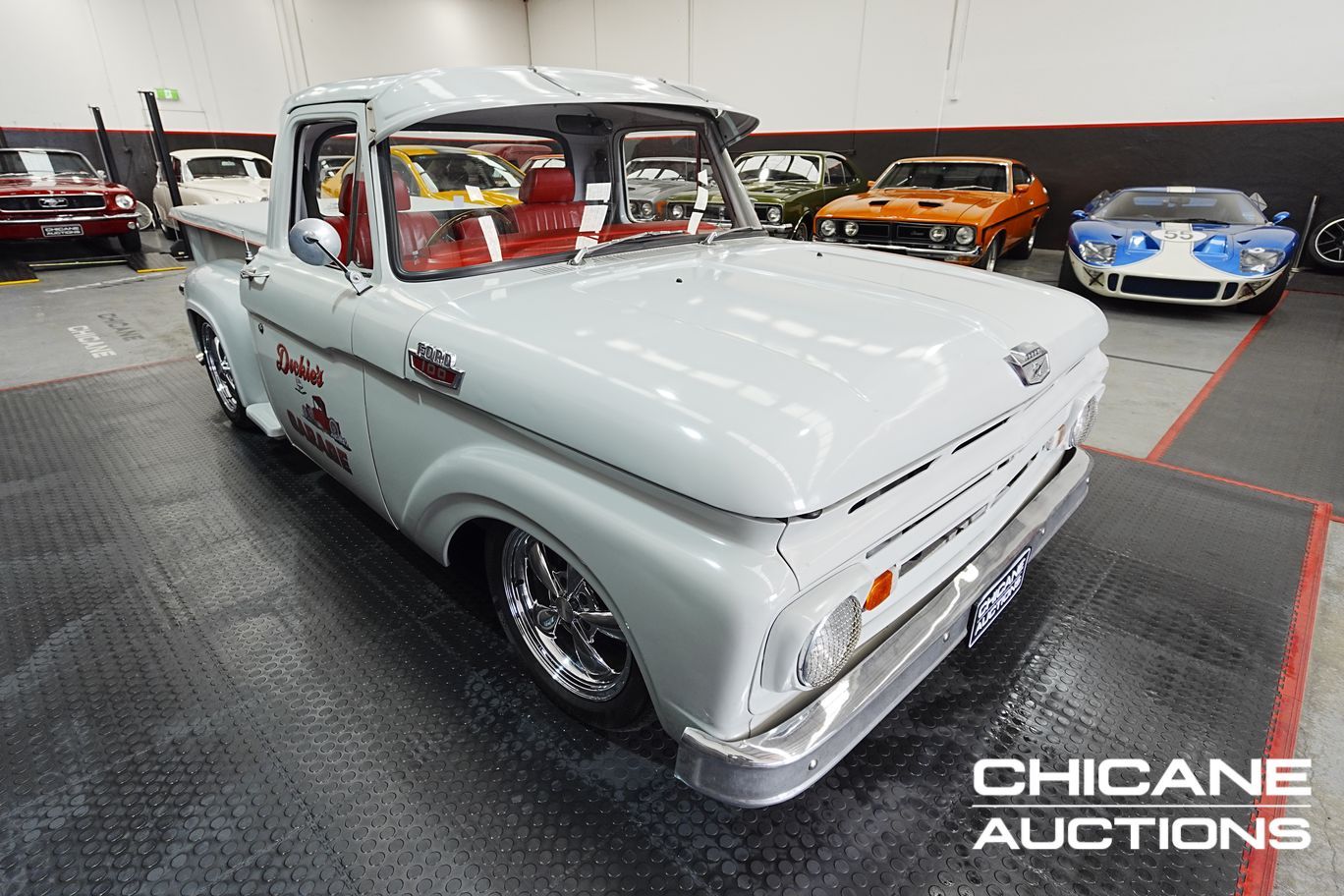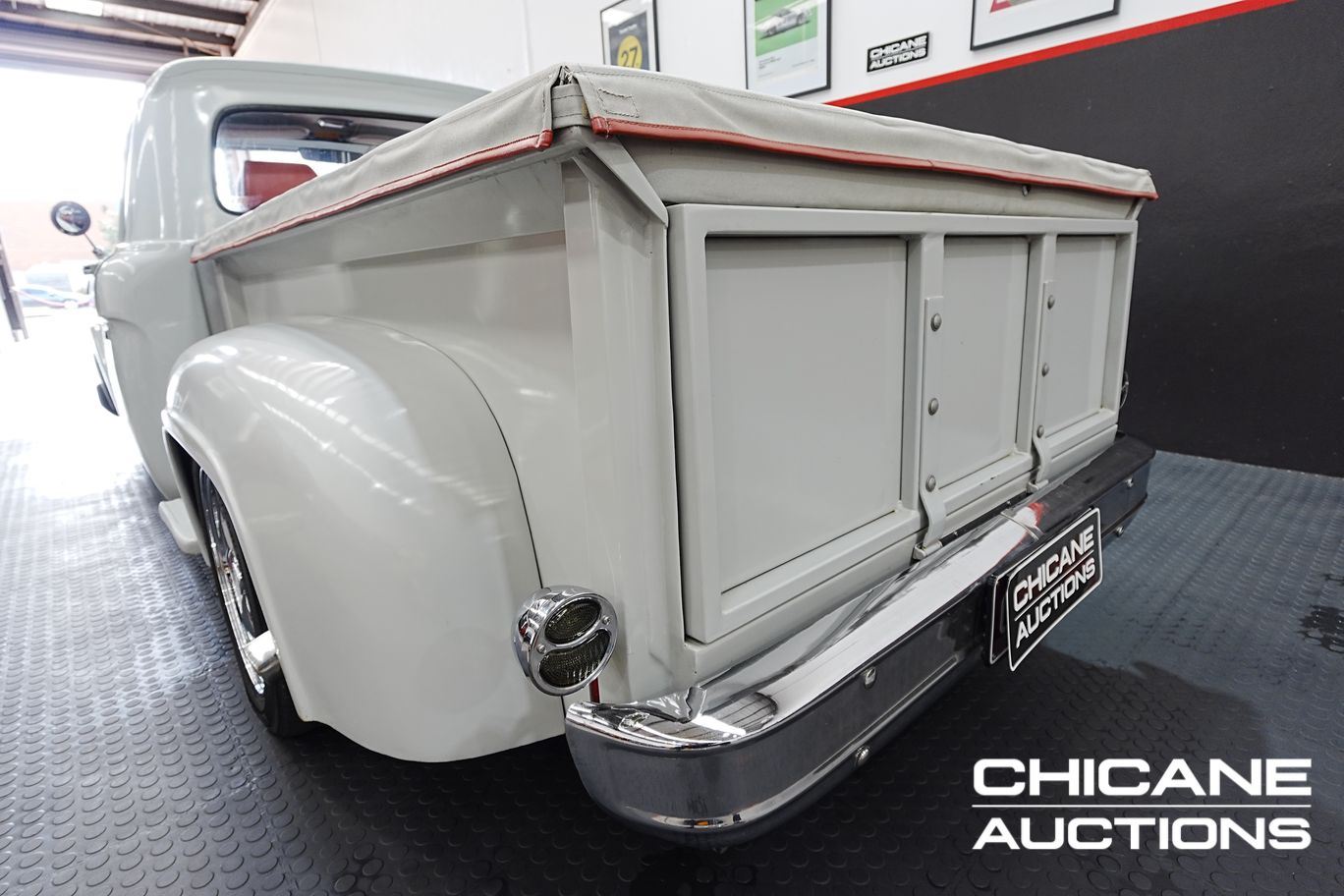 Offered is this fantastic old-school custom 61 F100 Custom that blends a more modern Holden HZ 1-Tonner chassis with the iconic Ford F100 cab and side-step tub, all professionally engineered and certified as a Modified Production Vehicle. Under the bonnet, the Holden 308ci V8 is paired with a Turbo 350 automatic and 10 bolt diff. Inside, the bright red custom trim features bucket seats, full instrumentation and a JVC sound system, while the exterior adds practicality with a lockable hard lid and drop-down tailgate.
