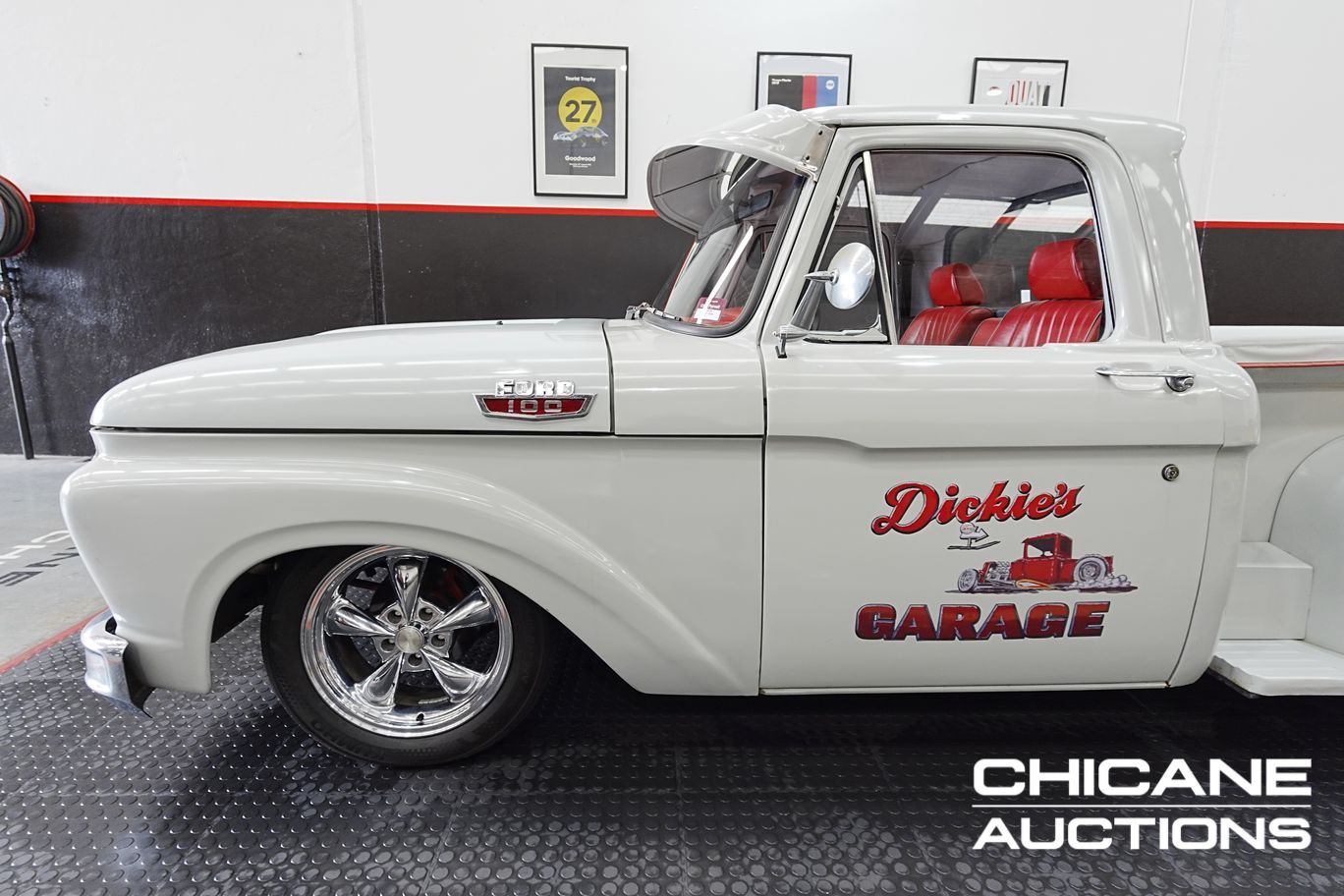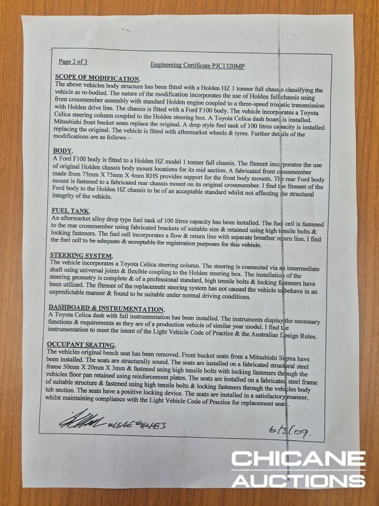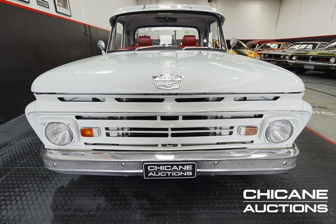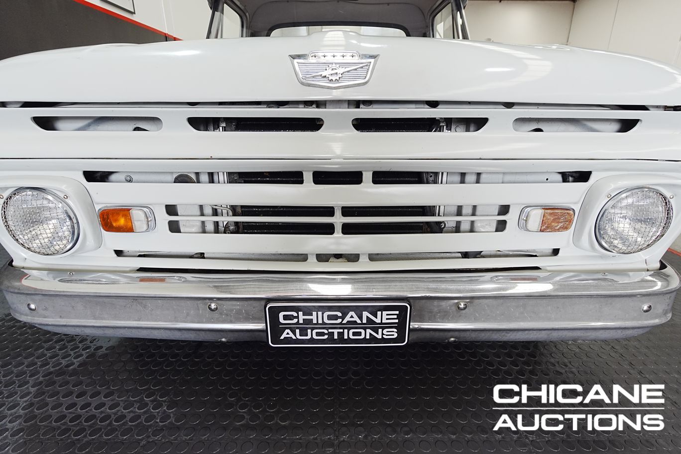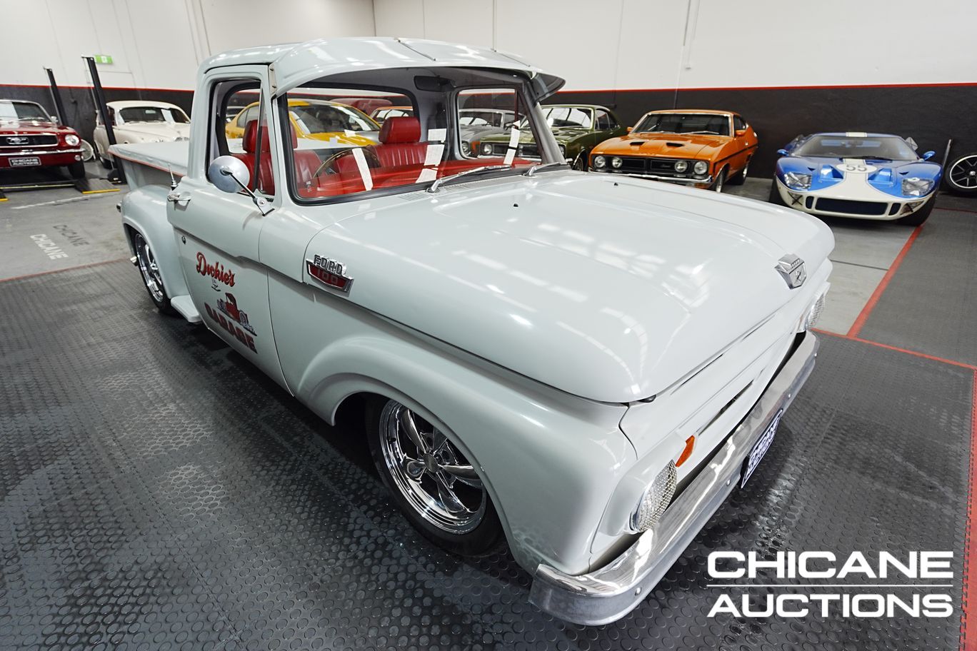 Offered is this fantastic old-school custom 61 F100 Custom that blends a more modern Holden HZ 1-Tonner chassis with the iconic Ford F100 cab and side-step tub, all professionally engineered and certified as a Modified Production Vehicle. Under the bonnet, the Holden 308ci V8 is paired with a Turbo 350 automatic and 10 bolt diff. Inside, the bright red custom trim features bucket seats, full instrumentation and a JVC sound system, while the exterior adds practicality with a lockable hard lid and drop-down tailgate.