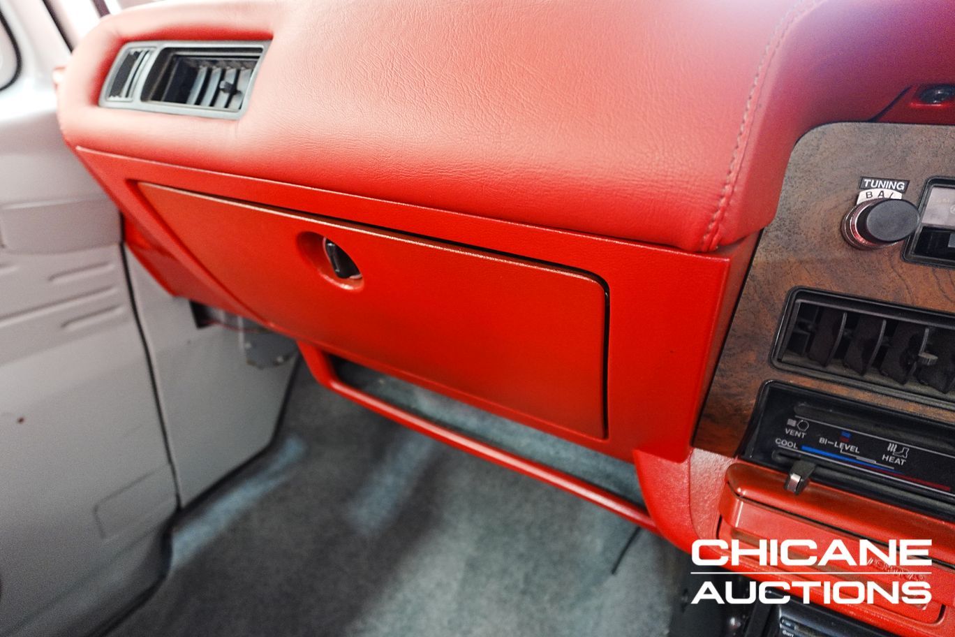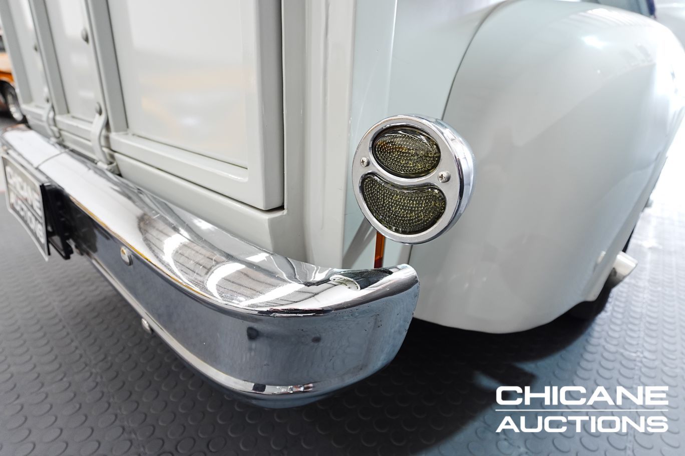 Inside, the cabin is a real eye opener, featuring a full dash trimmed in red leather and fitted with the full array of instrumentation including tachometer, oil, temperature, fuel and volt gauges. The red seats and door trims together with the dash, create a striking contrast against the exterior, giving the interior a true hot rod feel. Adding to the experience, a quality JVC sound system is neatly integrated along with Air-conditioning, blending classic custom style with modern usability.