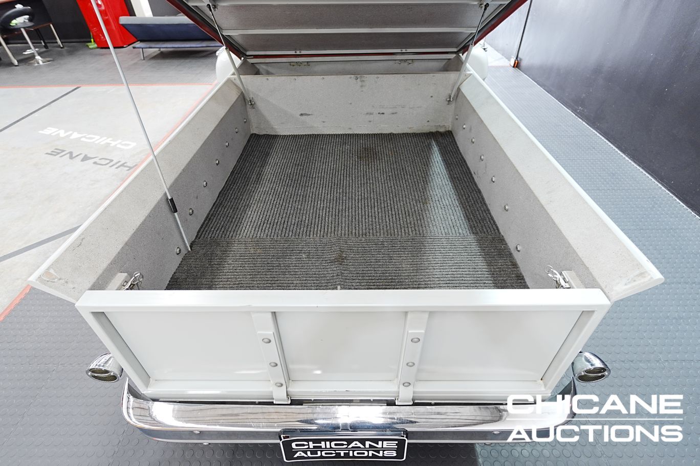 The bodywork combines the classic Ford F100 cab with a custom side-step tub. The result is a seamless integration that looks as good as it drives. Sitting low over 17-inch Speedy mag wheels, the F100 body cuts a tough stance, the wide guards and lowered ride height giving it real presence. A lockable hard lid and drop-down tailgate add everyday practicality, while the overall look blends custom style in a way that turns heads wherever it’s driven or parked.