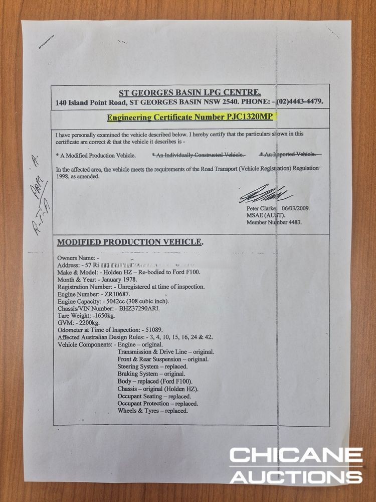 Beneath the bonnet is a 308 cubic-inch V8, paired with a Turbo 350 three-speed automatic transmission and driving through a Salisbury 10-bolt V8 differential. Breathing through extractors and a twin chrome side-exit exhaust, it delivers strong performance with a great V8 soundtrack. The engine is currently set up to run on straight LPG, but is also supplied with its 100-litre alloy drop tank and all fitment brackets supplied, with the original fuel lines remaining intact, to make conversion back to petrol very simple. Supporting the drivetrain is the original Holden HZ suspension, steering, and braking system. Air-conditioning is also fitted for extra comfort.
