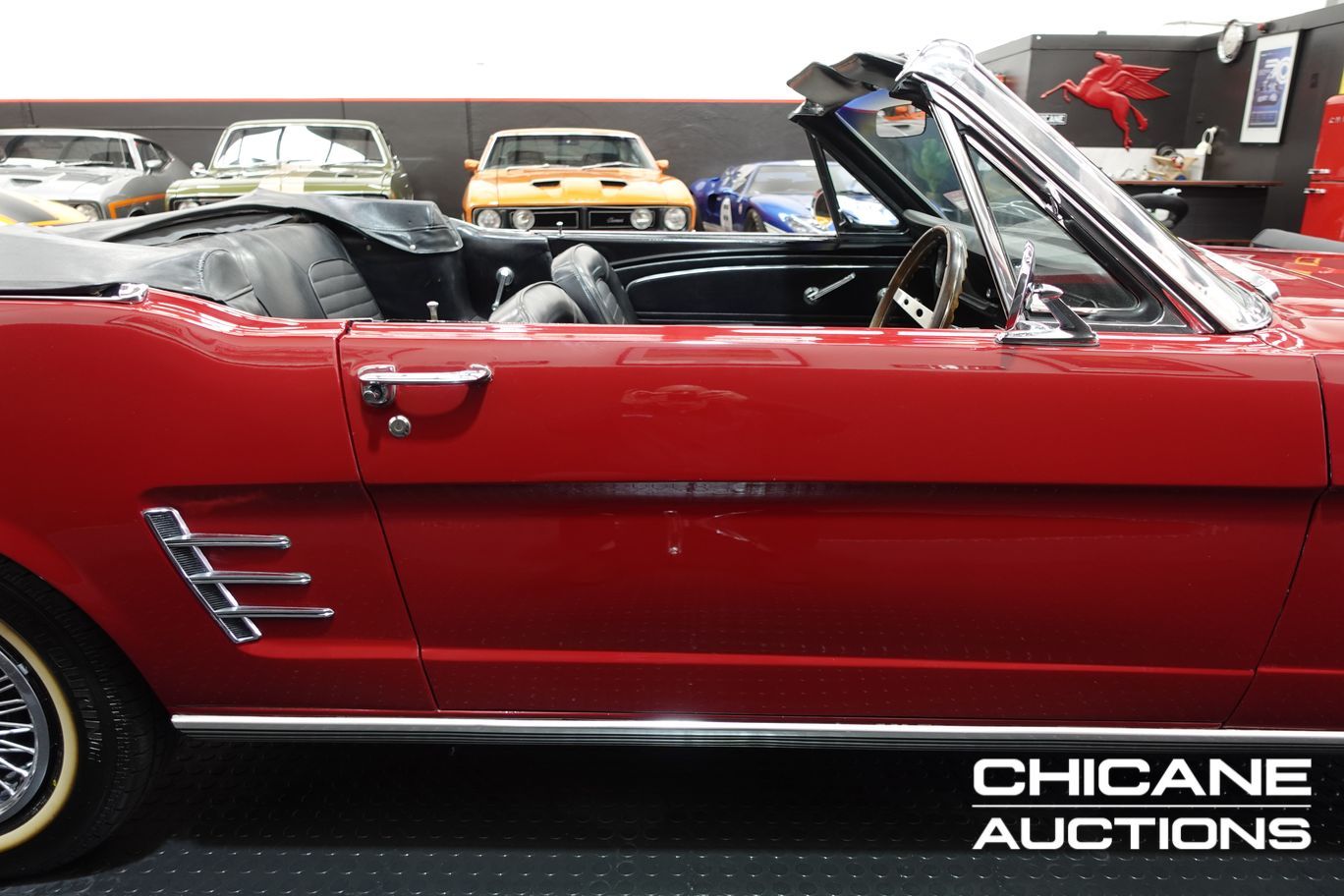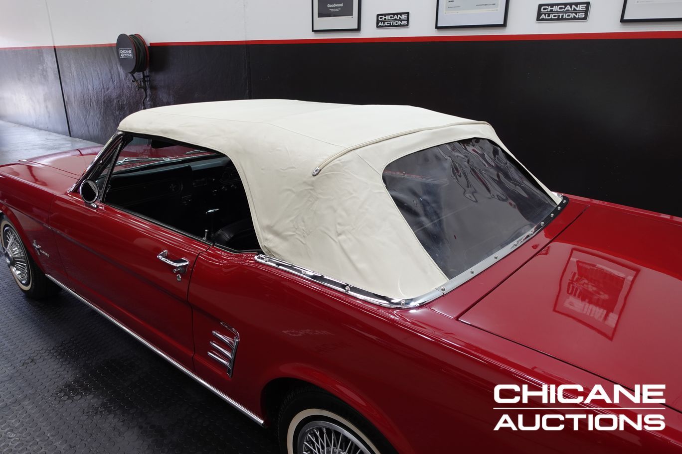 This 1966 Ford Mustang Convertible represents an excellent opportunity to secure an iconic classic, ready to enjoy. A genuine C-Code V8 example, right-hand-drive converted and equipped with power steering, disc brakes, and power roof, it has all the right ingredients for relaxed top-down motoring. Freshly serviced and presented in an eye-catching colour combination of dark red paint, black vinyl interior and cream roof, this Mustang is a turn-key collectible that blends timeless appeal with practical usability.