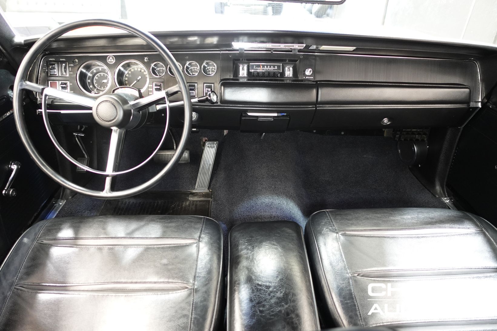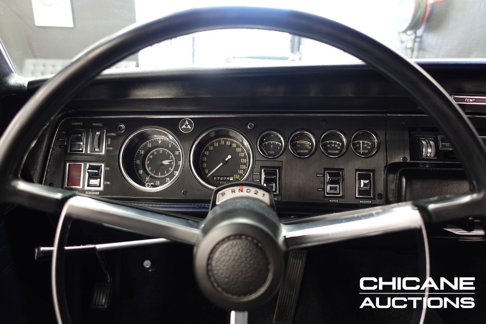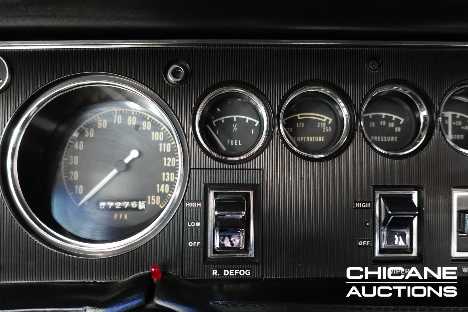 Inside, the Charger retains its fully original interior trim, materials, and finishes, presenting in remarkable condition for its age. The dashboard, gauges, and instruments remain crisp and clear, reflecting exceptional preservation and careful ownership. The seating remains untouched by restoration or modification and presents in some of the best original condition we have seen, offering an invaluable reference point for collectors and marque enthusiasts who value authenticity over replacement.