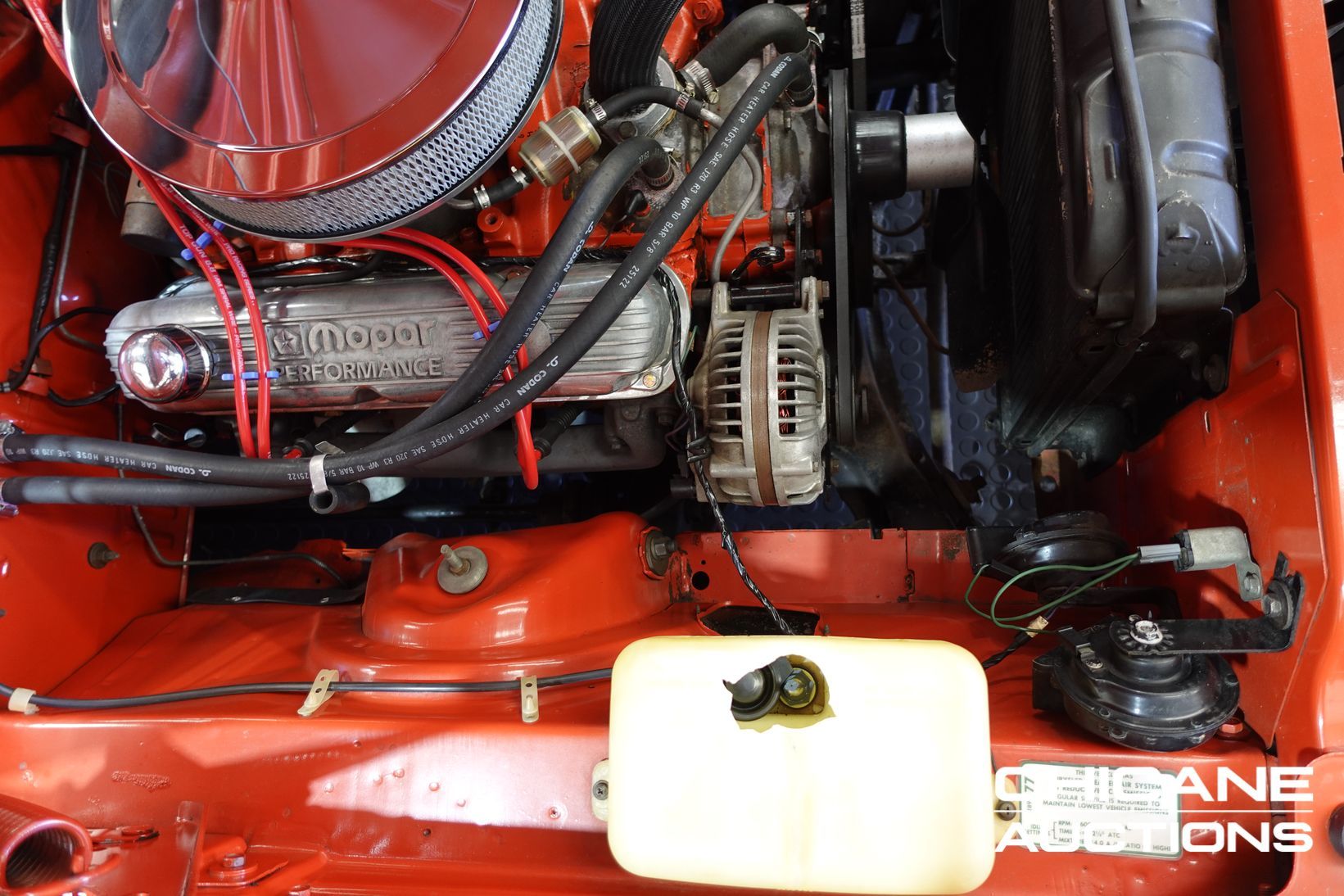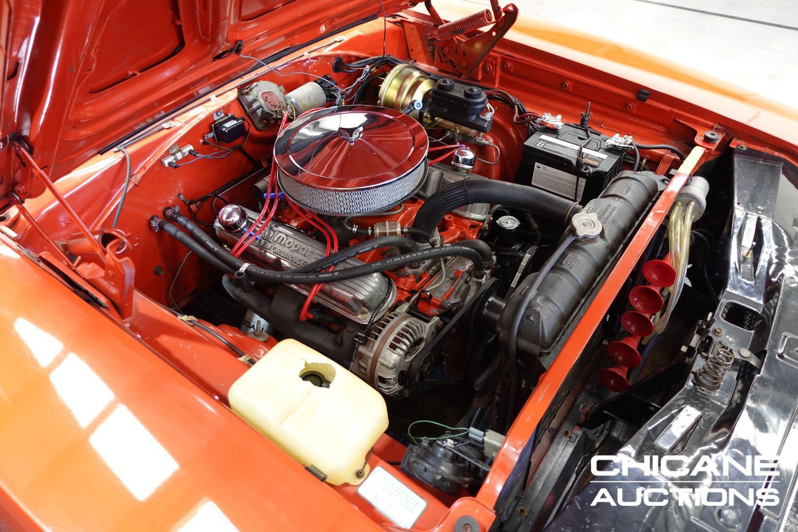 Power is supplied by the factory small-block 318 cubic inch V8, paired with the original TorqueFlite automatic transmission and original differential, along with factory power steering. For improved drivability and safety, the car has been fitted with upgraded front disc brakes and a power brake booster. Importantly, all original removed components are supplied with the sale, allowing the vehicle to be returned to full factory specification if desired.