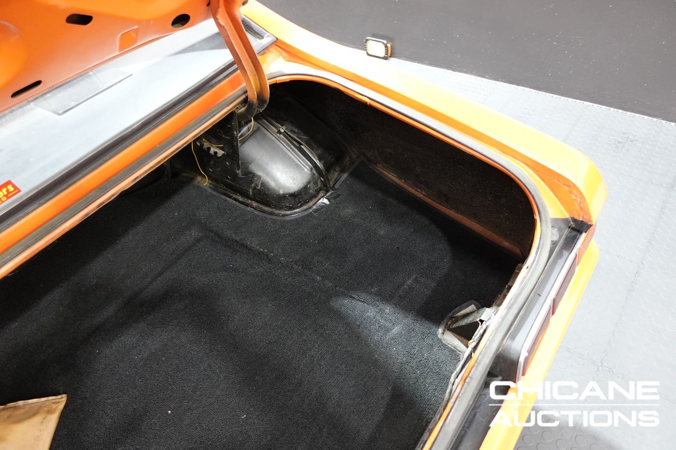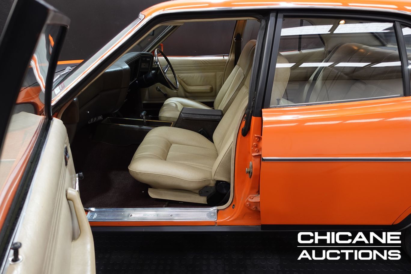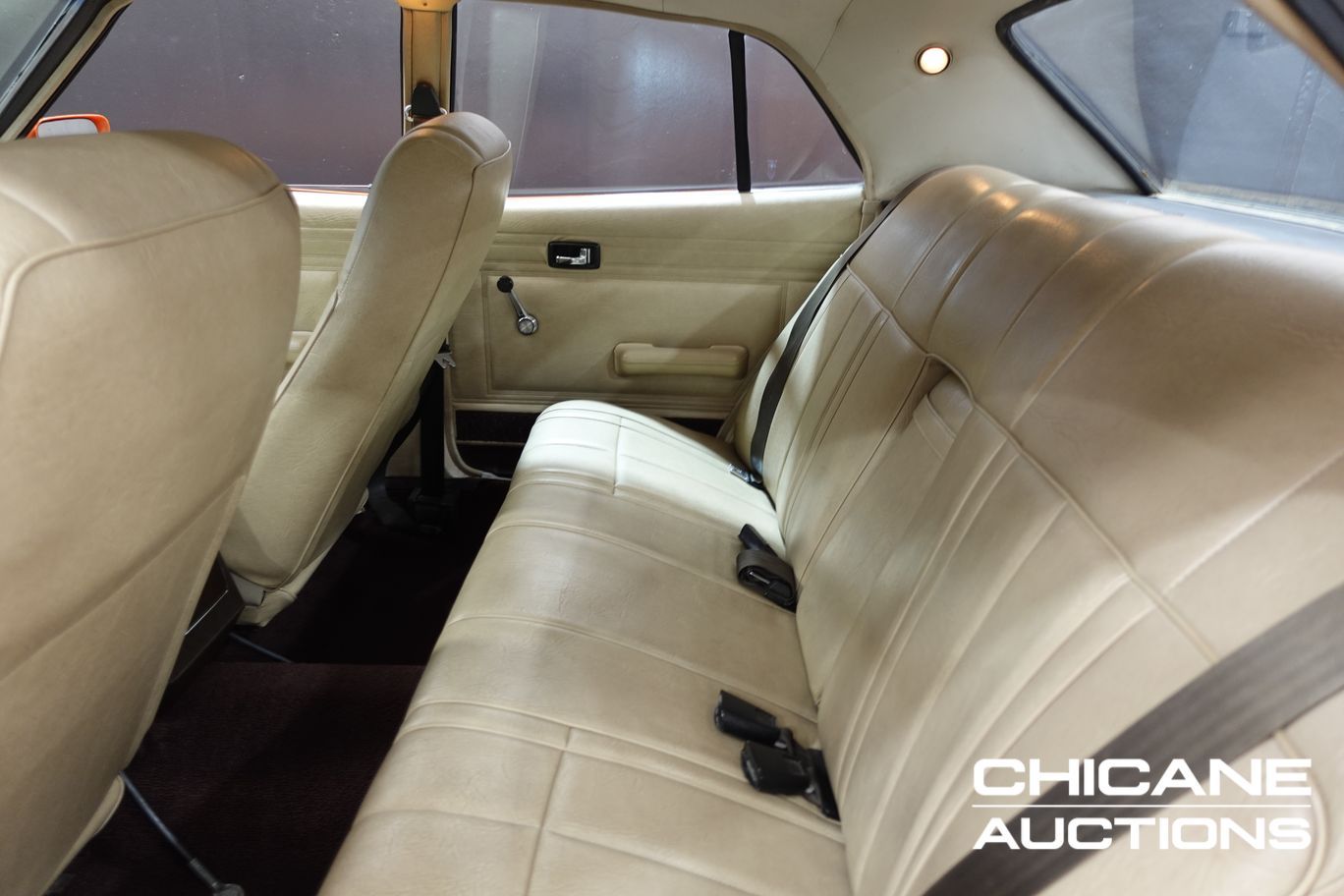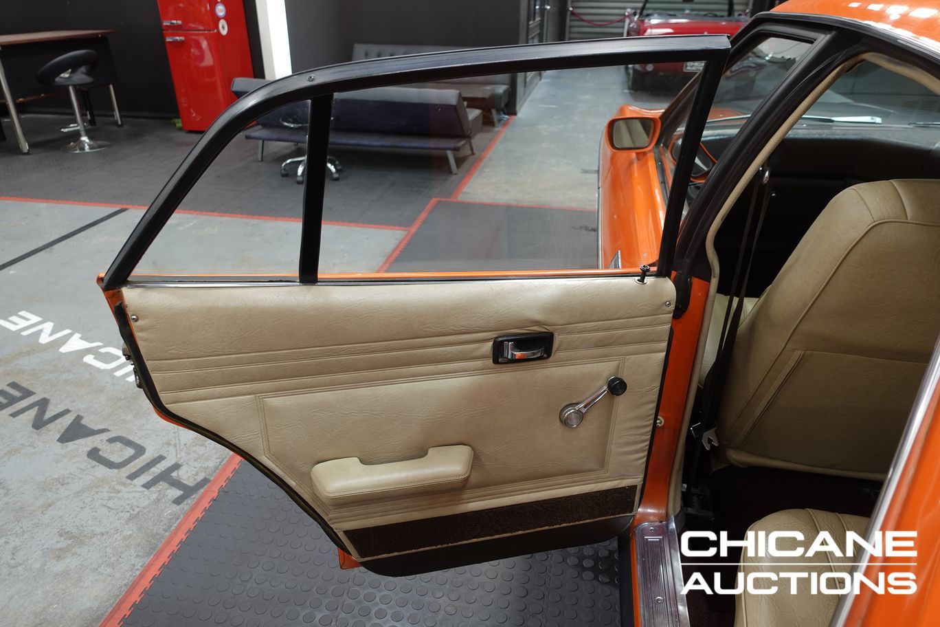 Presented in its original and striking ‘Tango’ paintwork, this sedan wears its age with pride and distinction. The body was rust-proofed when new and remains highly original, showing honest patina across its panels that speaks to decades of careful ownership rather than restoration. Exterior details include the signature GT blackouts, dual driving lights, twin bonnet scoops, dual remote mirrors, and period 14-inch Globe style wheels. Most significantly, this GT is equipped with the rare factory Golde steel wind-back sunroof — a desirable option that sets it apart from the majority of its peers. A very straight, well cared for, solid body.