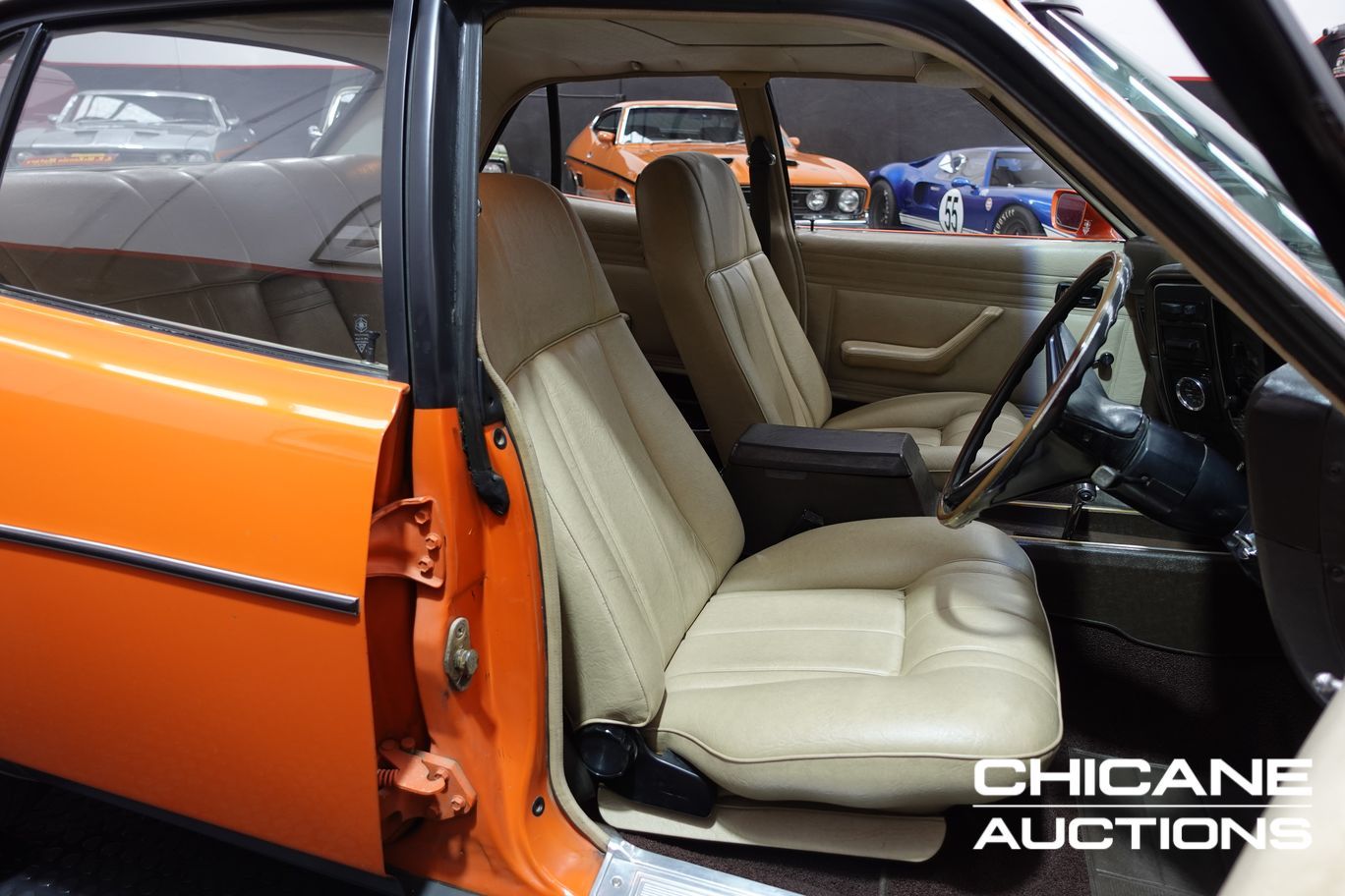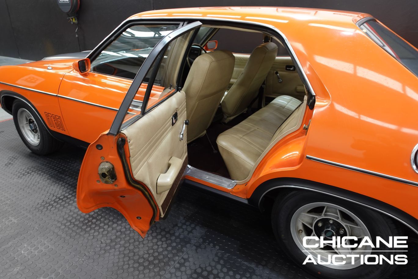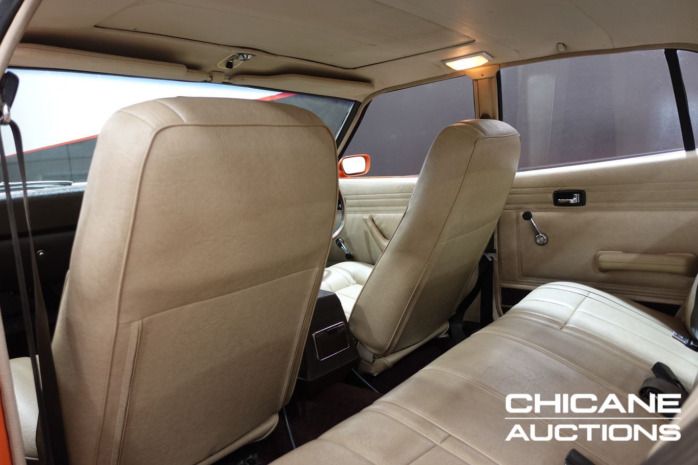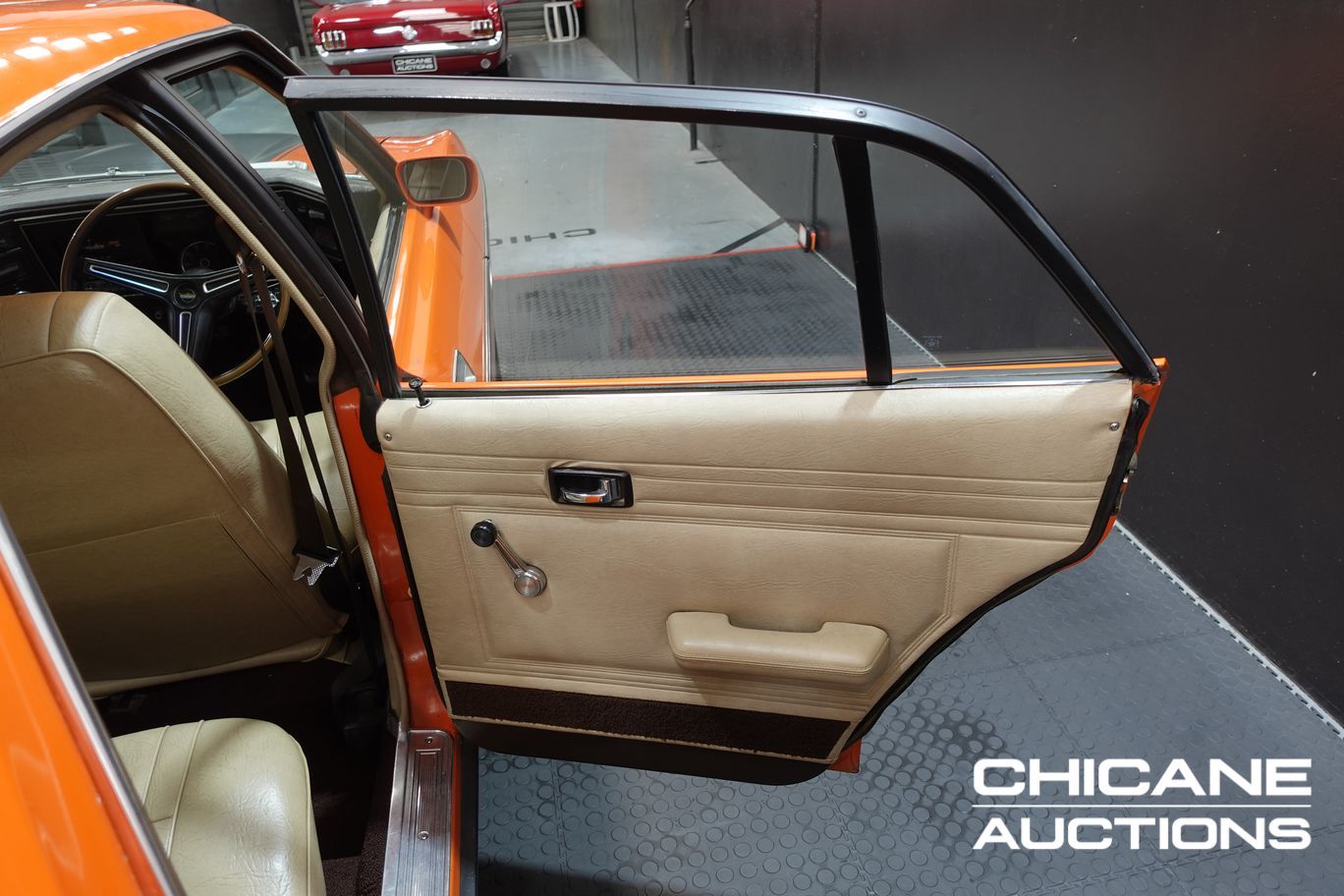 Presented in its original and striking ‘Tango’ paintwork, this sedan wears its age with pride and distinction. The body was rust-proofed when new and remains highly original, showing honest patina across its panels that speaks to decades of careful ownership rather than restoration. Exterior details include the signature GT blackouts, dual driving lights, twin bonnet scoops, dual remote mirrors, and period 14-inch Globe style wheels. Most significantly, this GT is equipped with the rare factory Golde steel wind-back sunroof — a desirable option that sets it apart from the majority of its peers. A very straight, well cared for, solid body.