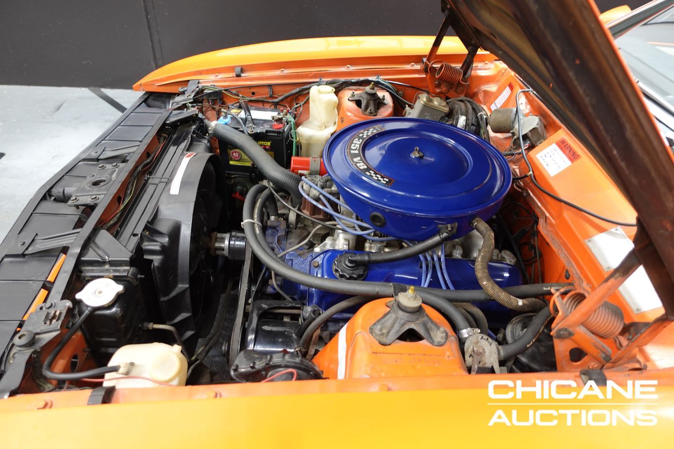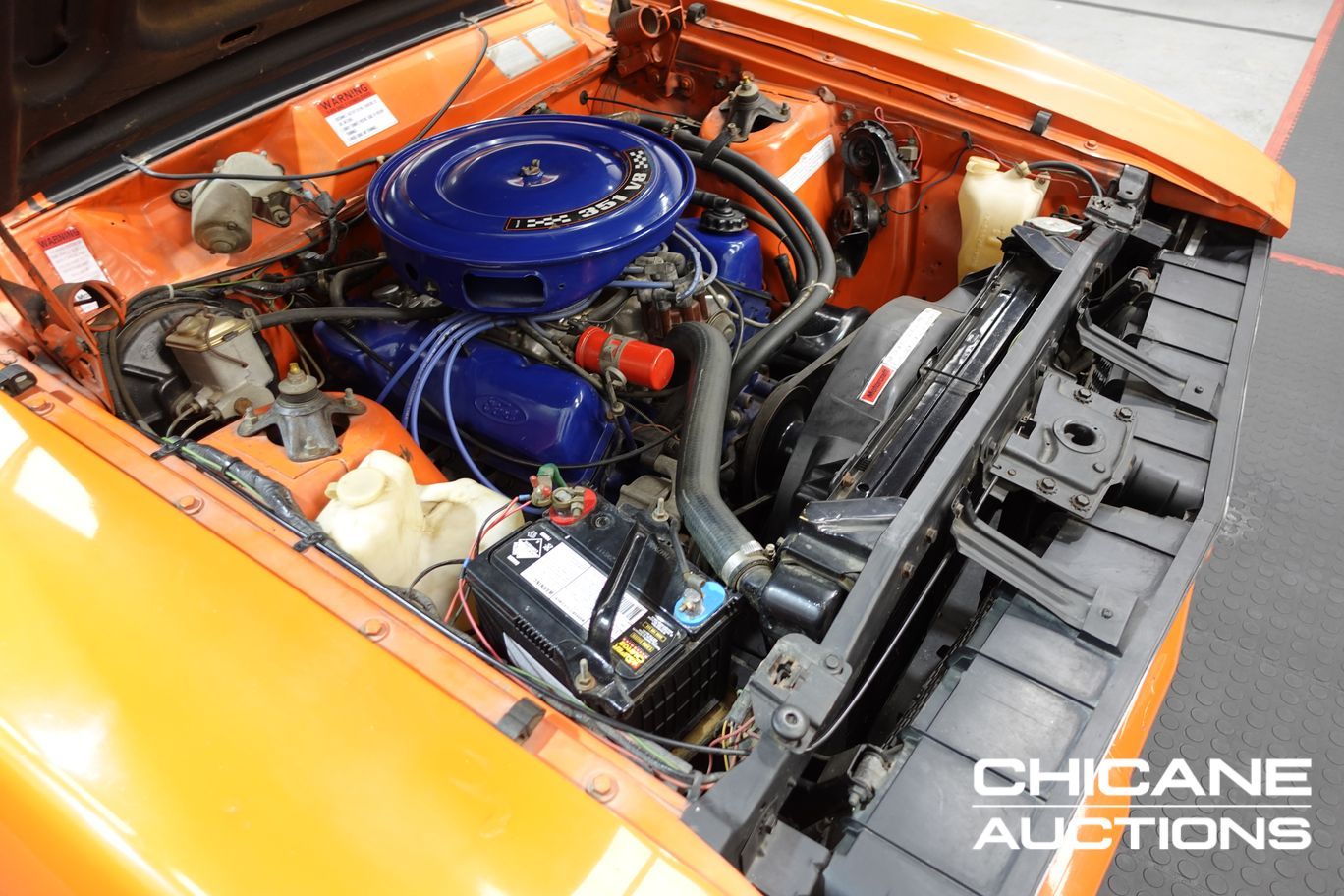 Factory-fitted and retaining its matching-numbers 351ci Cleveland V8 rated at 300hp, this GT also keeps its original 3-speed floor-shift automatic transmission and nine-inch limited-slip differential. Complementing the drivetrain is Ford’s heavy-duty GT suspension package, power-assisted steering, dual exhaust system, and servo-assisted four-wheel disc brakes — a feature unique to GT specification cars in the XB range. The engine was professionally rebuilt just over a decade ago and has travelled fewer than 5,000 kilometres since, ensuring strong and reliable performance while retaining originality. Driven to the Chicane Melbourne showroom by its owner from Kyabram, Victoria, where it has lived nearly its whole life since 1980.
