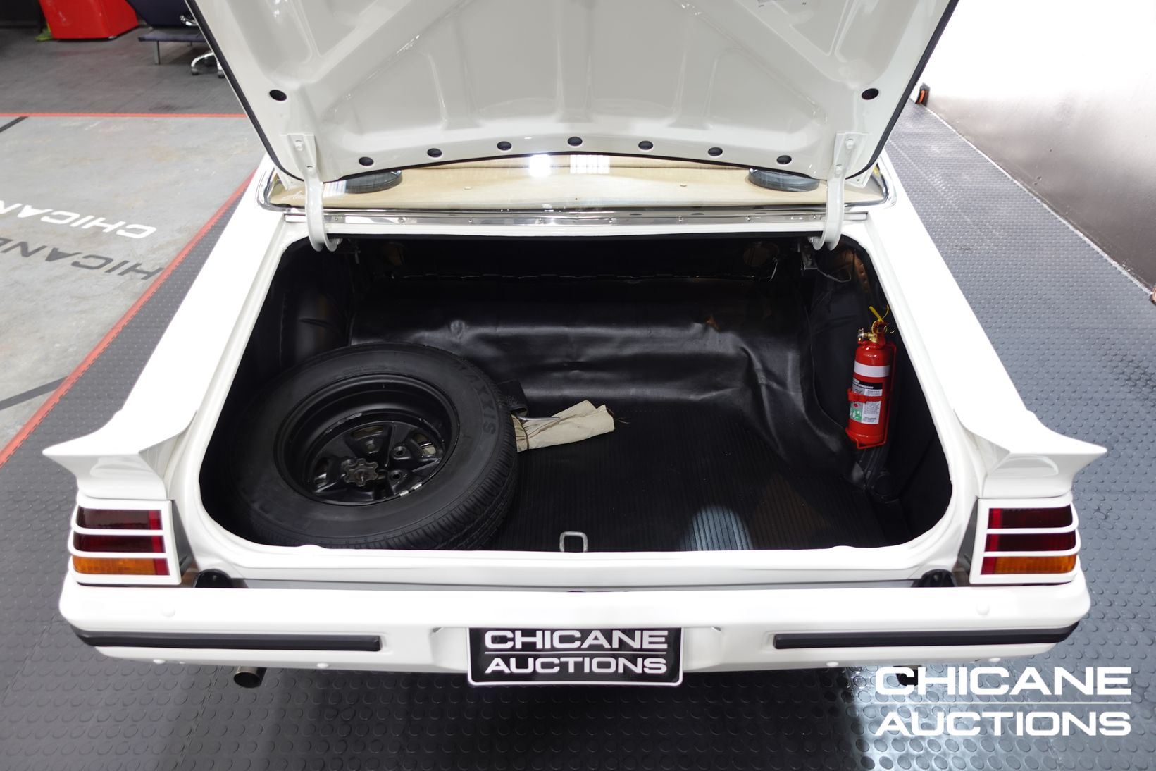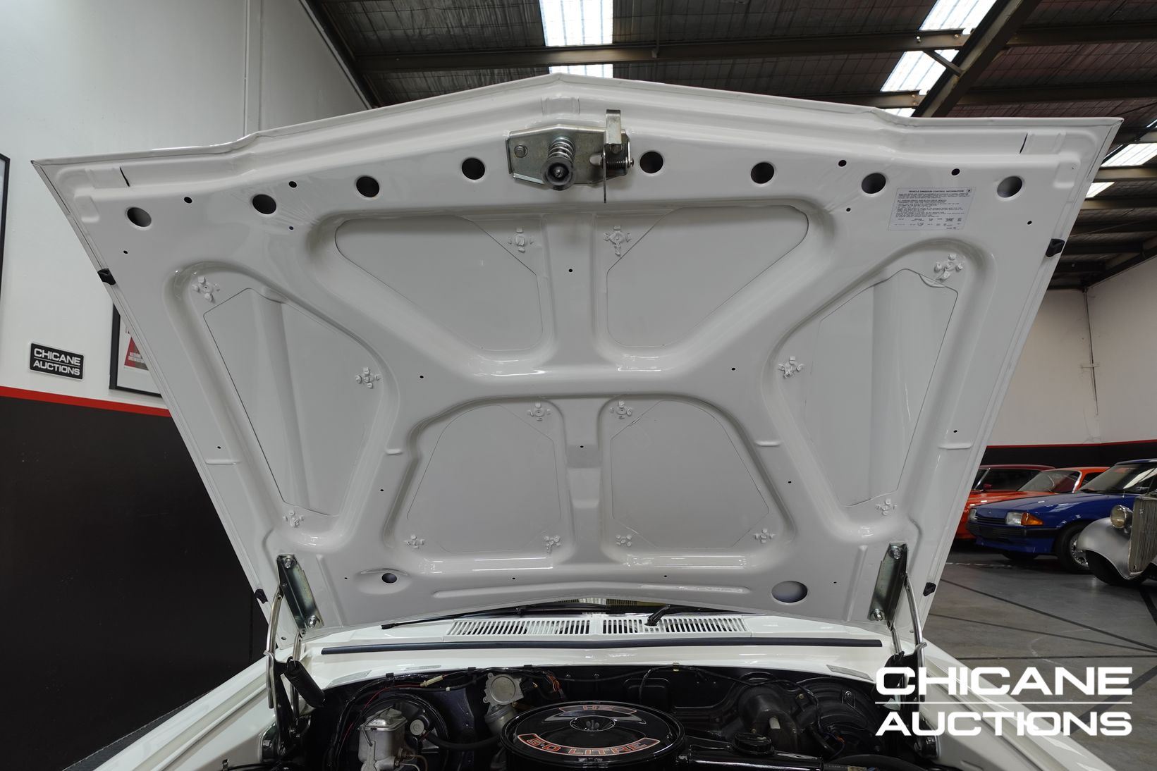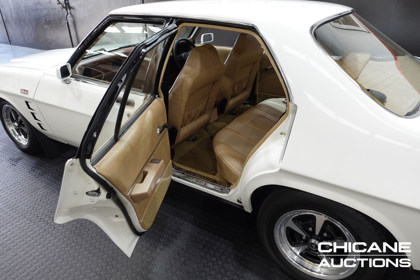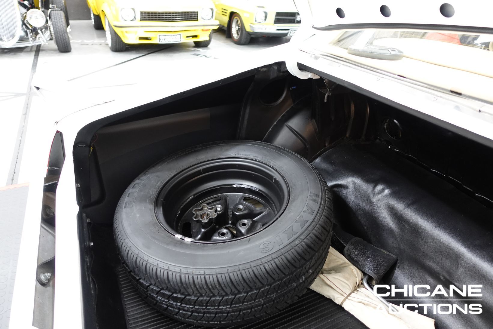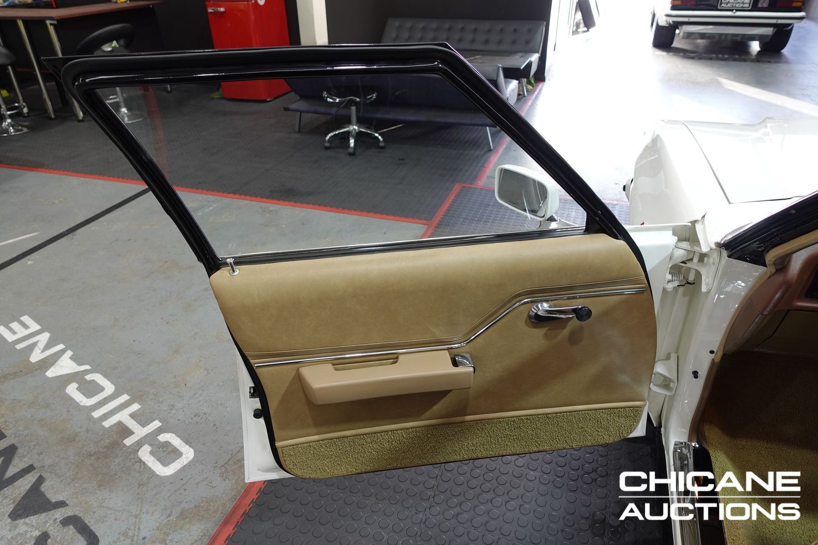 Presented in its correct Palais White (code 30521), the body has been restored to an exceptionally high standard, with straight panels, precise alignment, and deep, high-gloss paintwork. All GTS-specific features are present, including the colour-coded sports grille, body side flutes, quad headlamp front, and appropriate badging. The exterior detailing extends to correctly refinished brightwork, restored bumpers, and new weather seals. Currently 15″ GTS style wheels are fitted, with the full set of GMH factory original Factory 14″ GTS wheels with matching Maxxis tyres in mint condition are supplied with the car for authenticity. The overall finish and attention to detail place this example among the very best of its kind, with presentation that would satisfy the most discerning collector.