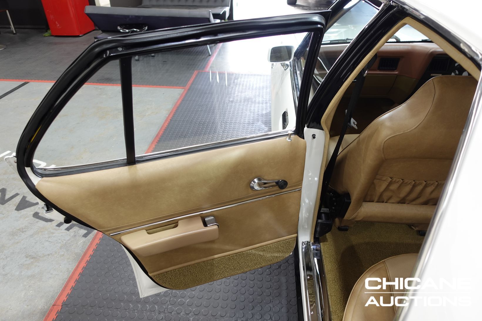 This genuine 1978 Holden HZ GTS is a high quality example of Holden’s final full-sized GTS performance sedan. Factory optioned with the 5.0-litre L31 V8 engine, M21 close-ratio 4-speed manual transmission, GU4 Salisbury LSD with 3.08:1 gearing and four wheel disc brakes. Finished in its correct FACTORY Palais White paint with Buckskin vinyl trim and matching “golfball” seat inserts (trim code 63V), the car has undergone a complete, high-quality restoration to exacting standards. Every aspect — from mechanicals to paintwork and trim — presents in exceptional order, making it one of the finest examples we have encountered.