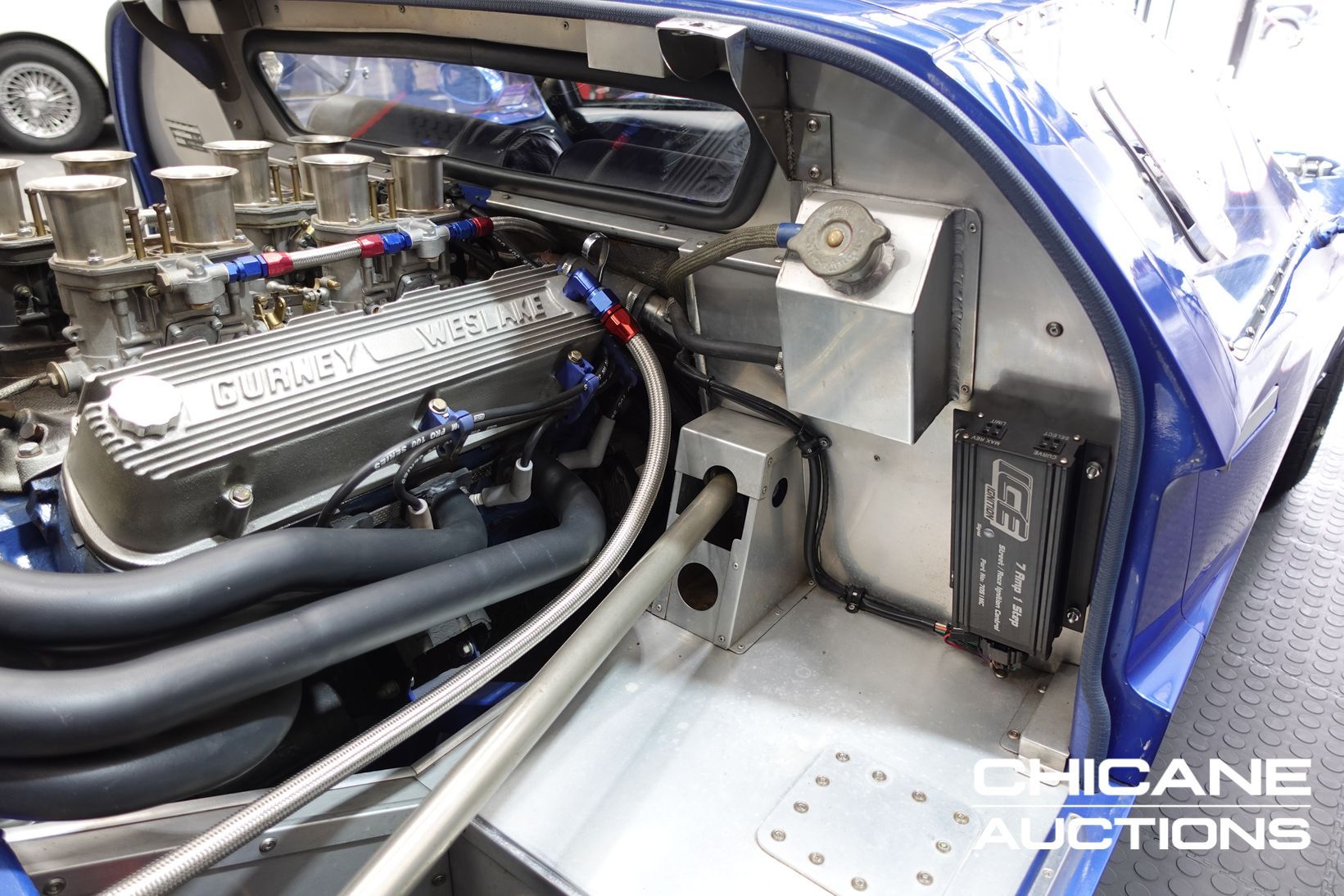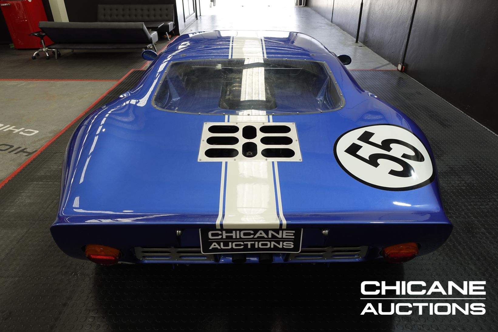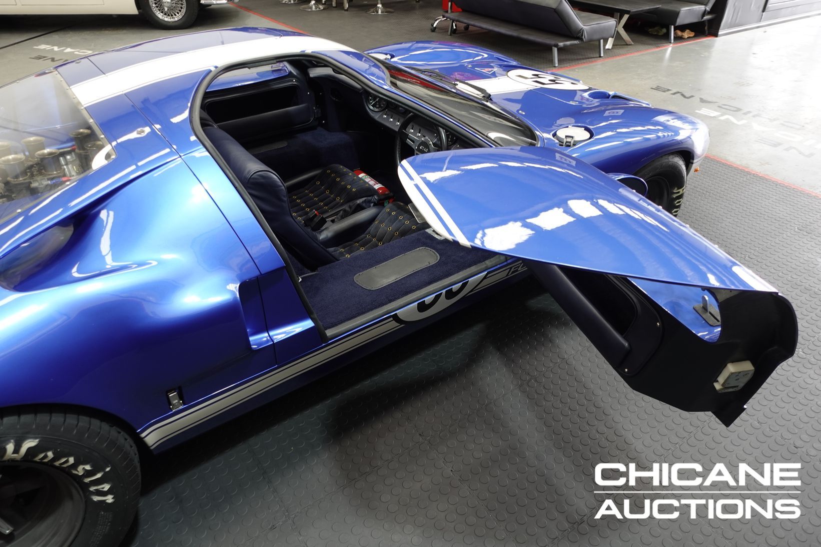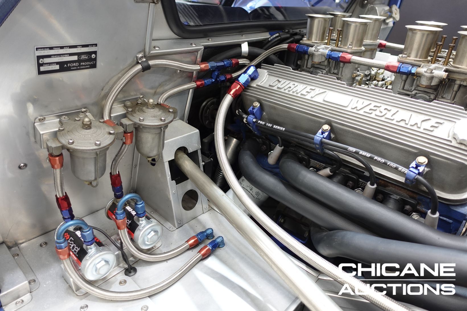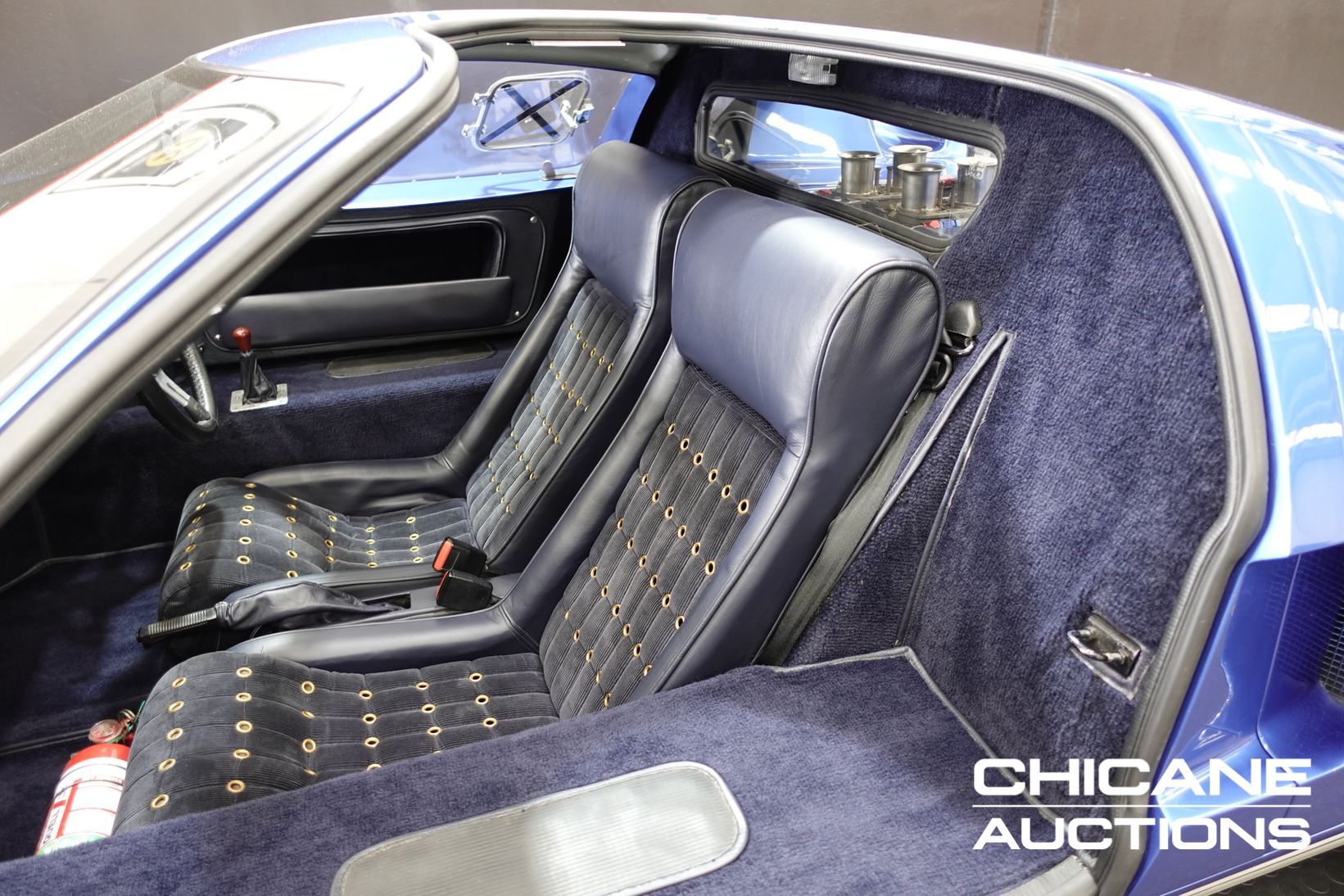 This cars bodywork is the star of the show painted in period Azure Blue and is dimensionally correct to the Mk I GT40, with its iconic low-slung silhouette, wide stance and aggressive proportions that captivated Le Mans spectators in the mid-1960s. The GT Developments body is widely regarded as a very high quality reproduction. Finished with period-correct detailing, from the scoops and vents to the competition-style fuel fillers, every element of the exterior pays tribute to the original design. Presented in great condition, and presented with racer style decals, this GT40 recreation captures the true presence of the legendary Ford racer.