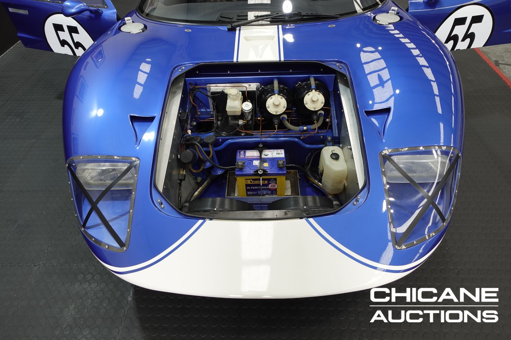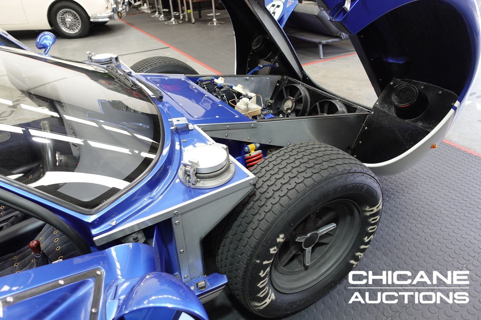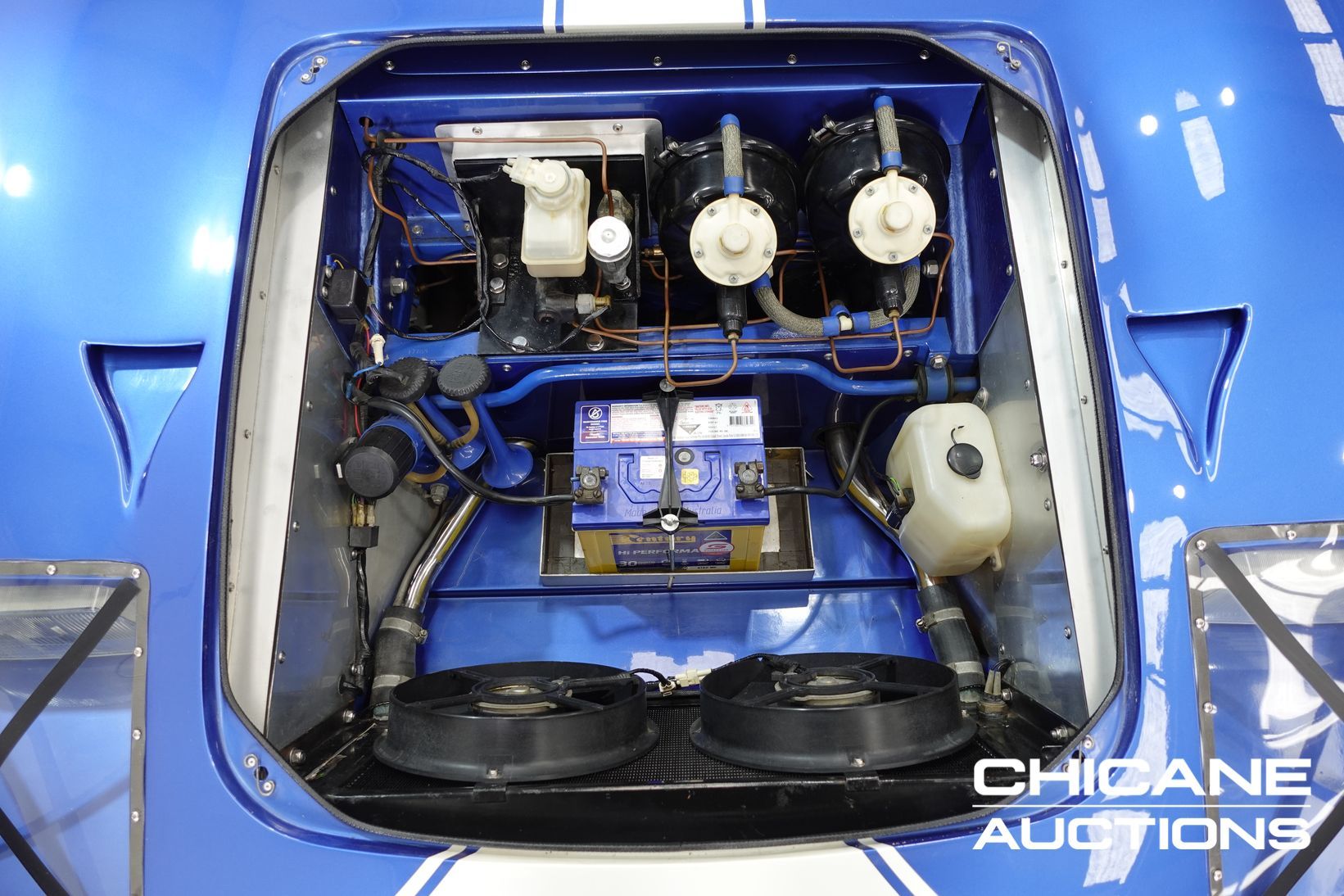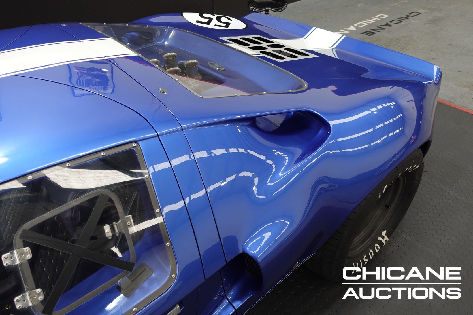 This cars bodywork is the star of the show painted in period Azure Blue and is dimensionally correct to the Mk I GT40, with its iconic low-slung silhouette, wide stance and aggressive proportions that captivated Le Mans spectators in the mid-1960s. The GT Developments body is widely regarded as a very high quality reproduction. Finished with period-correct detailing, from the scoops and vents to the competition-style fuel fillers, every element of the exterior pays tribute to the original design. Presented in great condition, and presented with racer style decals, this GT40 recreation captures the true presence of the legendary Ford racer.