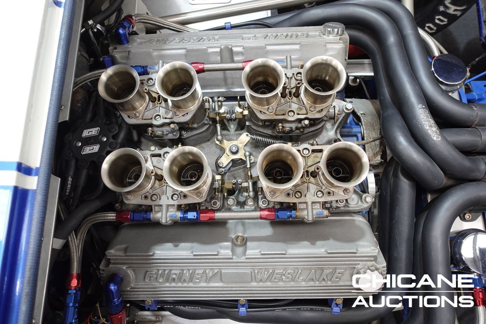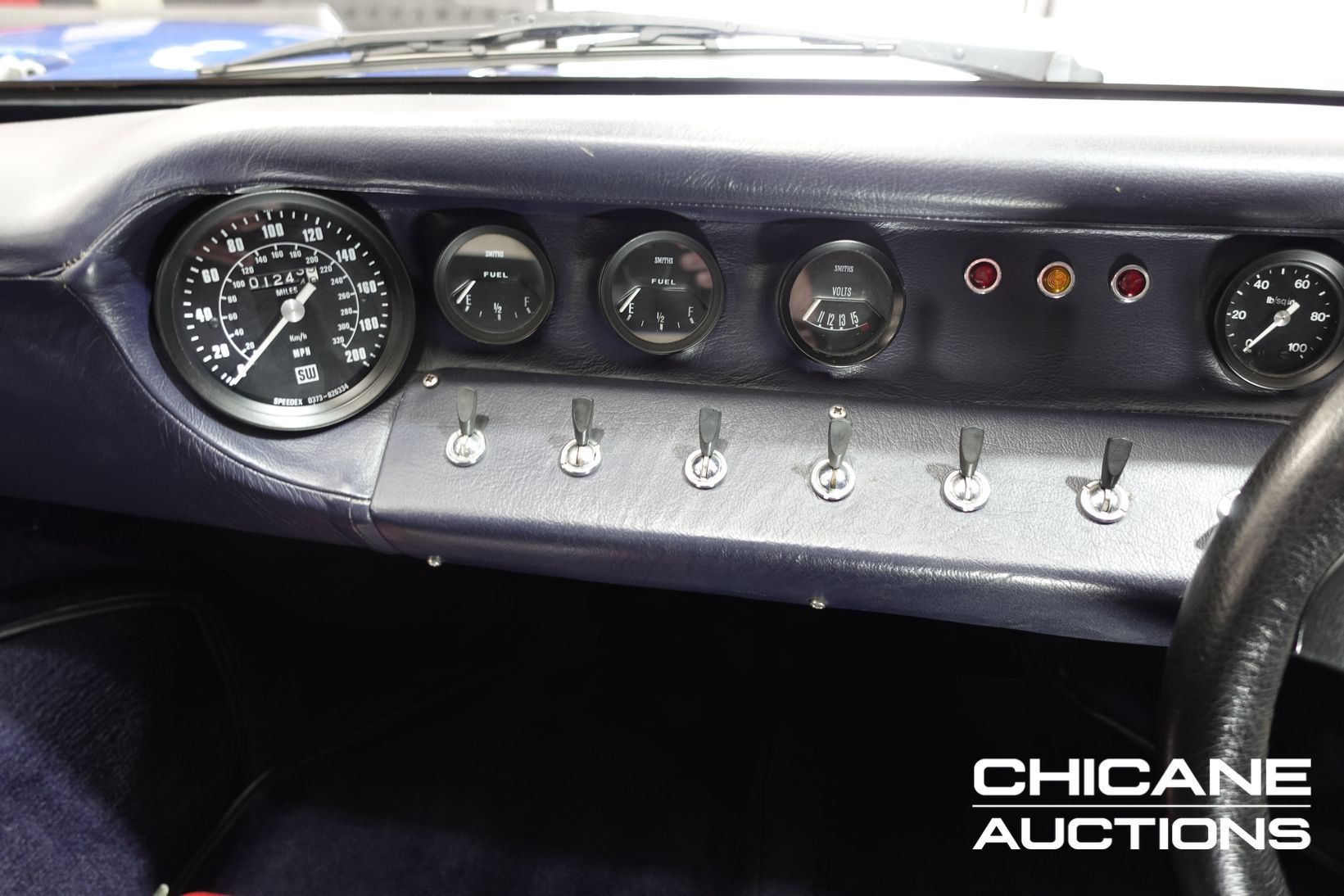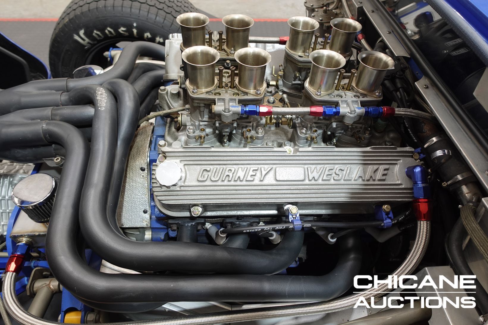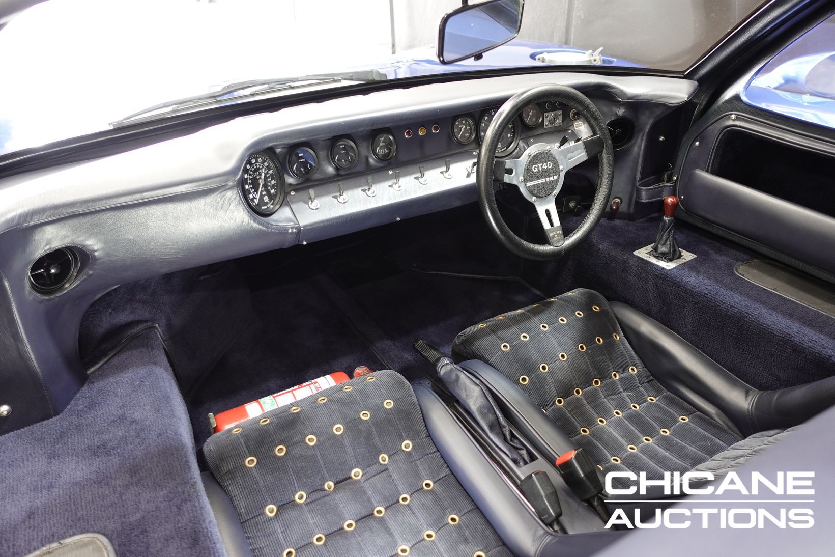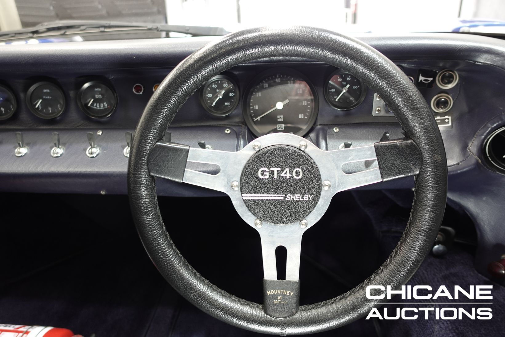 This cars bodywork is the star of the show painted in period Azure Blue and is dimensionally correct to the Mk I GT40, with its iconic low-slung silhouette, wide stance and aggressive proportions that captivated Le Mans spectators in the mid-1960s. The GT Developments body is widely regarded as a very high quality reproduction. Finished with period-correct detailing, from the scoops and vents to the competition-style fuel fillers, every element of the exterior pays tribute to the original design. Presented in great condition, and presented with racer style decals, this GT40 recreation captures the true presence of the legendary Ford racer.