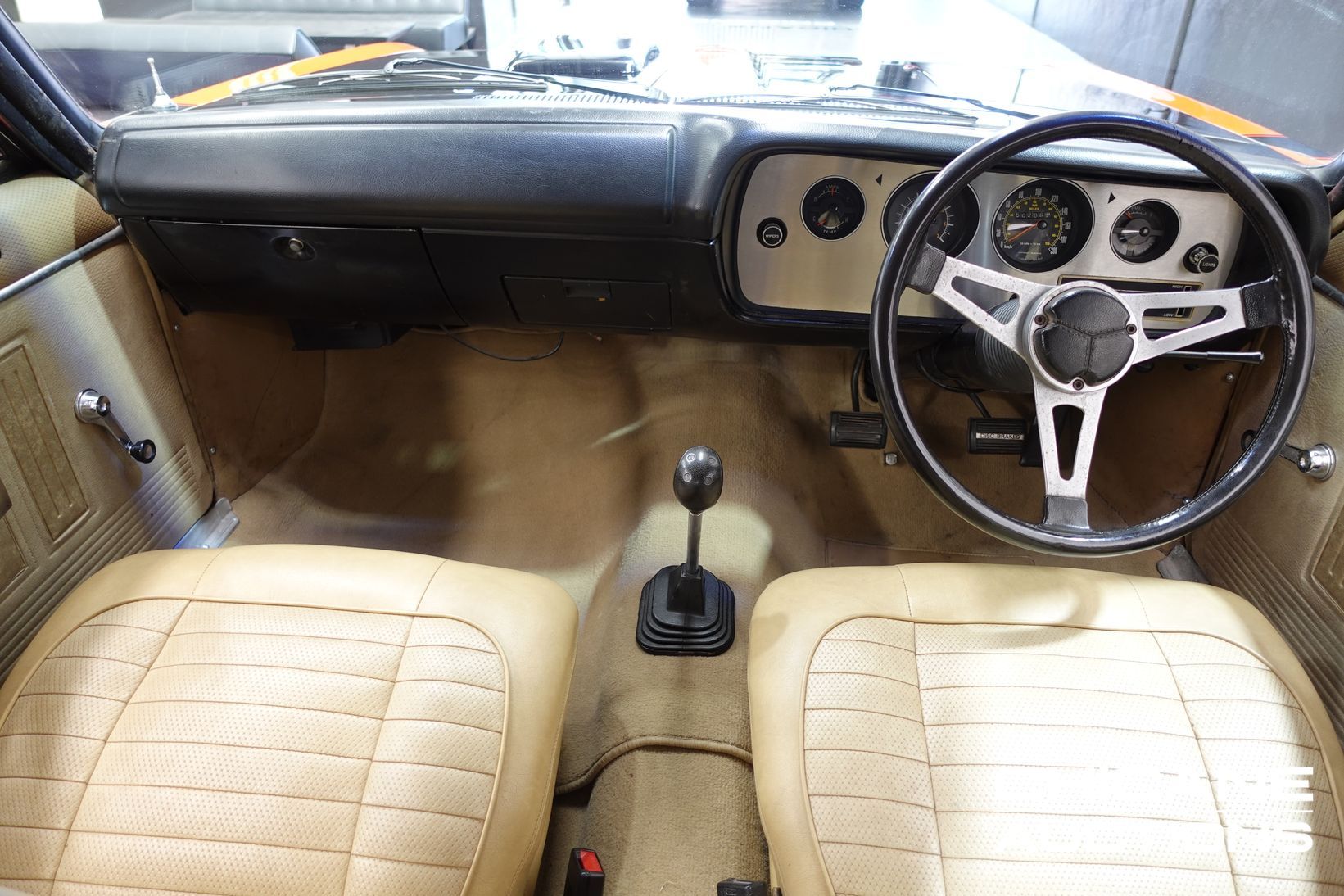 Power is delivered through a three-speed manual gearbox fitted with a twin-plate clutch, featuring ‘Bathurst’ markings that are noted but unverified. Drive is sent to a reconditioned 3.24:1 limited-slip differential. Suspension and braking are stated to remain largely true to E37 specification, incorporating E37 torsion bars and sway bar, reconditioned Girlock front disc brakes, and a reconditioned master cylinder. A twin exhaust system with extractors is fitted, consistent with E37 specification and sound.