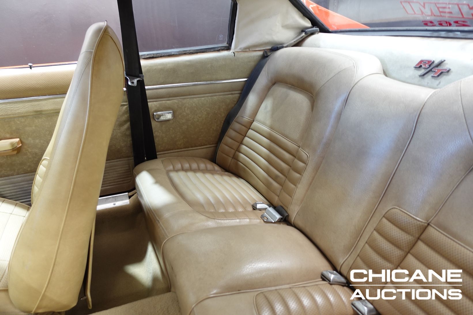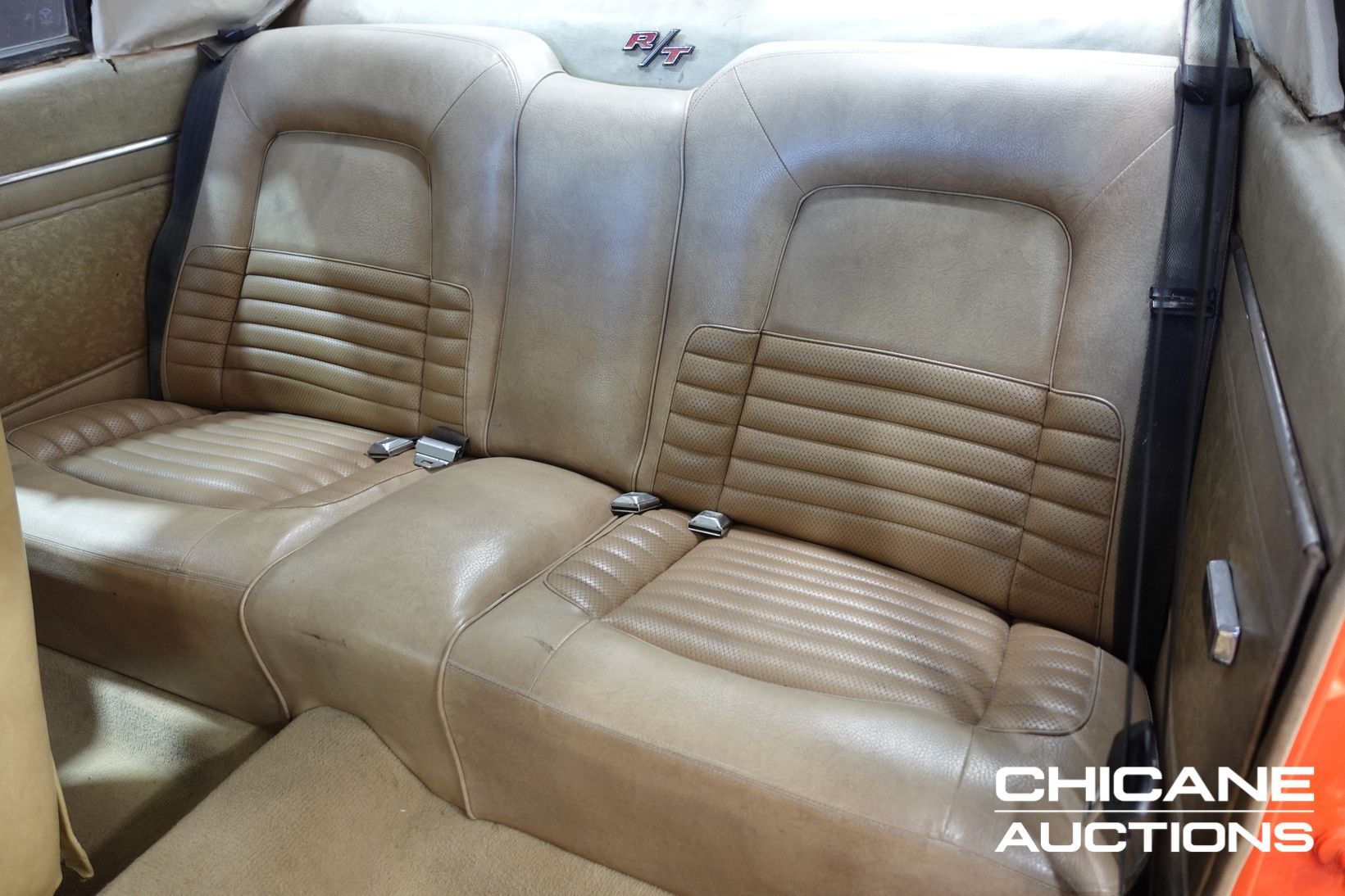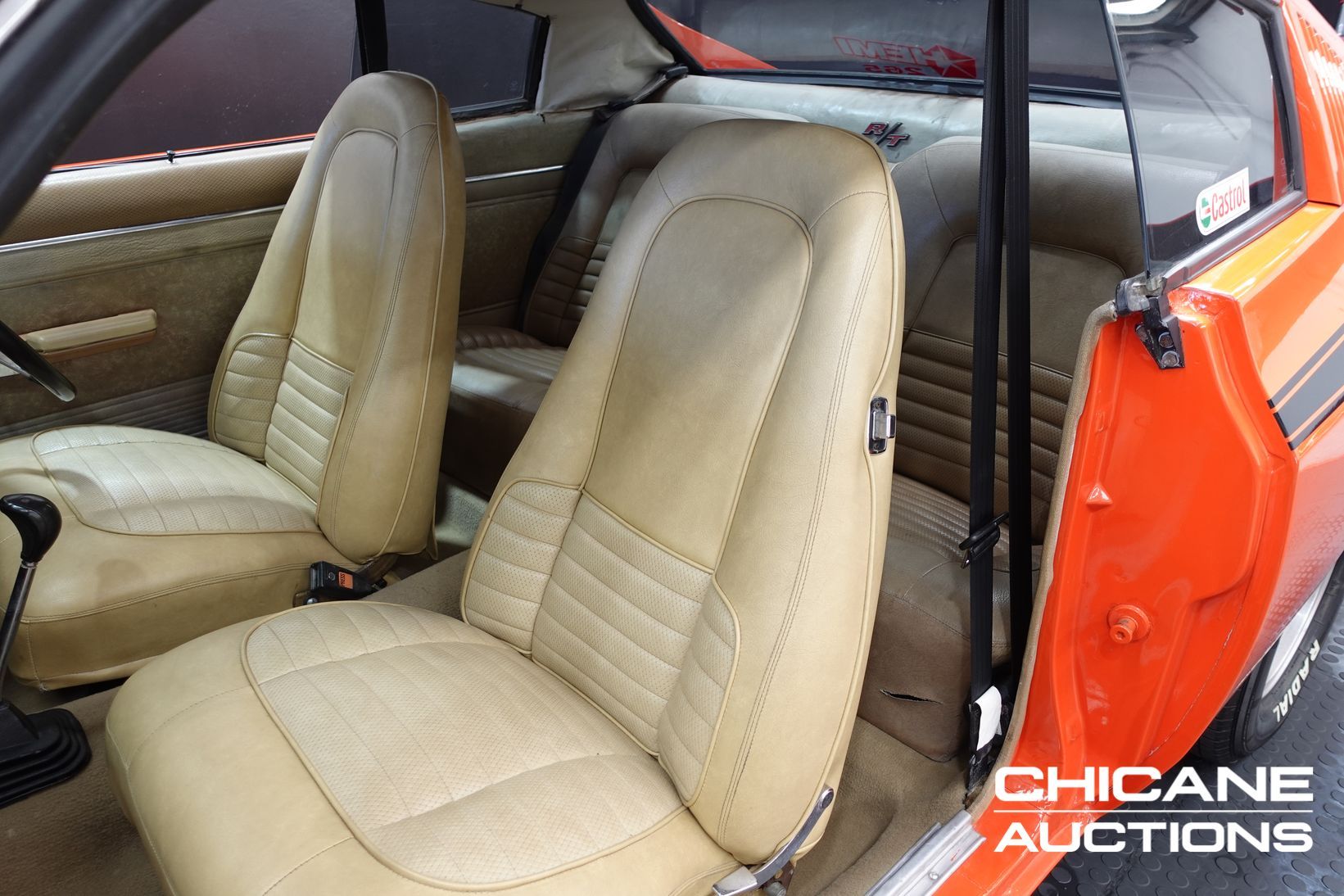 The body presents exceptionally well, described as straight and rust-free, and has recently undergone a glass-out respray in Hemi Orange. Finished with the correct R/T scoop and full R/T visual treatment, the Charger delivers a striking, high-impact presentation that perfectly suits its aggressive lines. The engine bay retains older, previous paintwork. The car sits on W35 wheels and retains period-correct details including sealed-beam headlights and auxiliary driving lights.